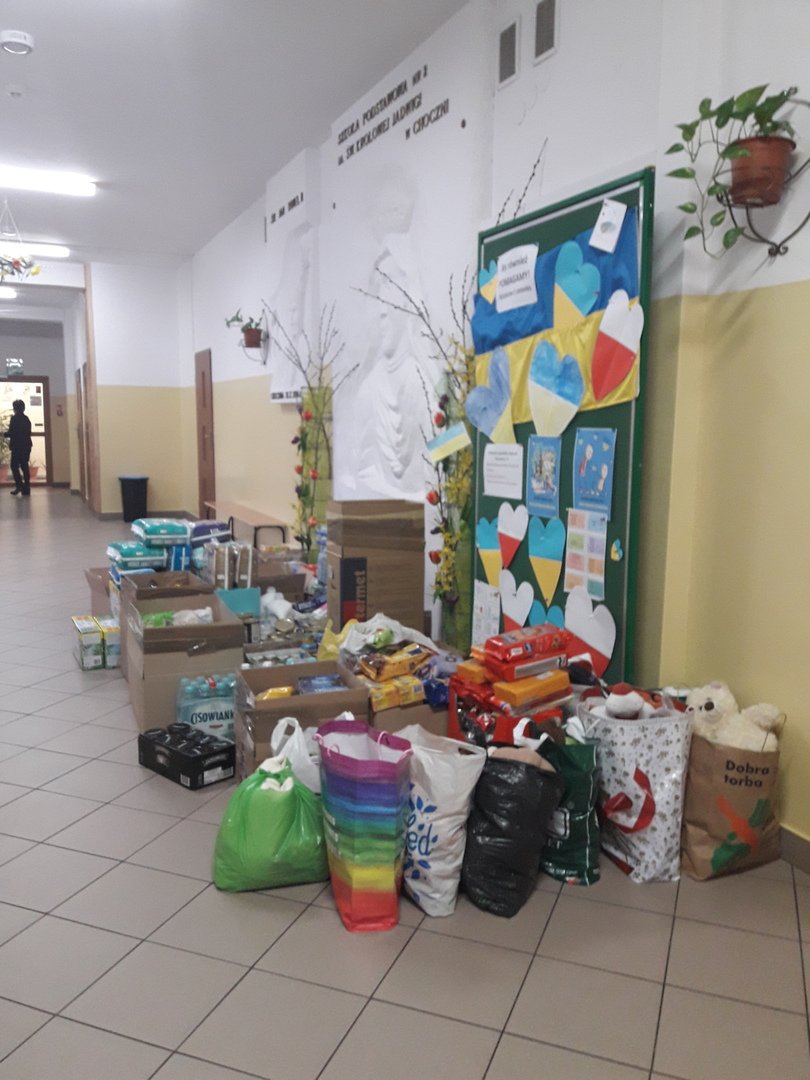 Dziękujemy serdecznie wszystkim, którzy wzięli udział w akcji wsparcia dla Ukrainy, poprzez zbierania różnych produktów potrzebnych do życia.Nasza społeczność wykazała się wielką empatią Wszystkie dary odebrała ze szkoły Ochotnicza Straż Pożarna w Choczni celem dalszej dystrybucji.