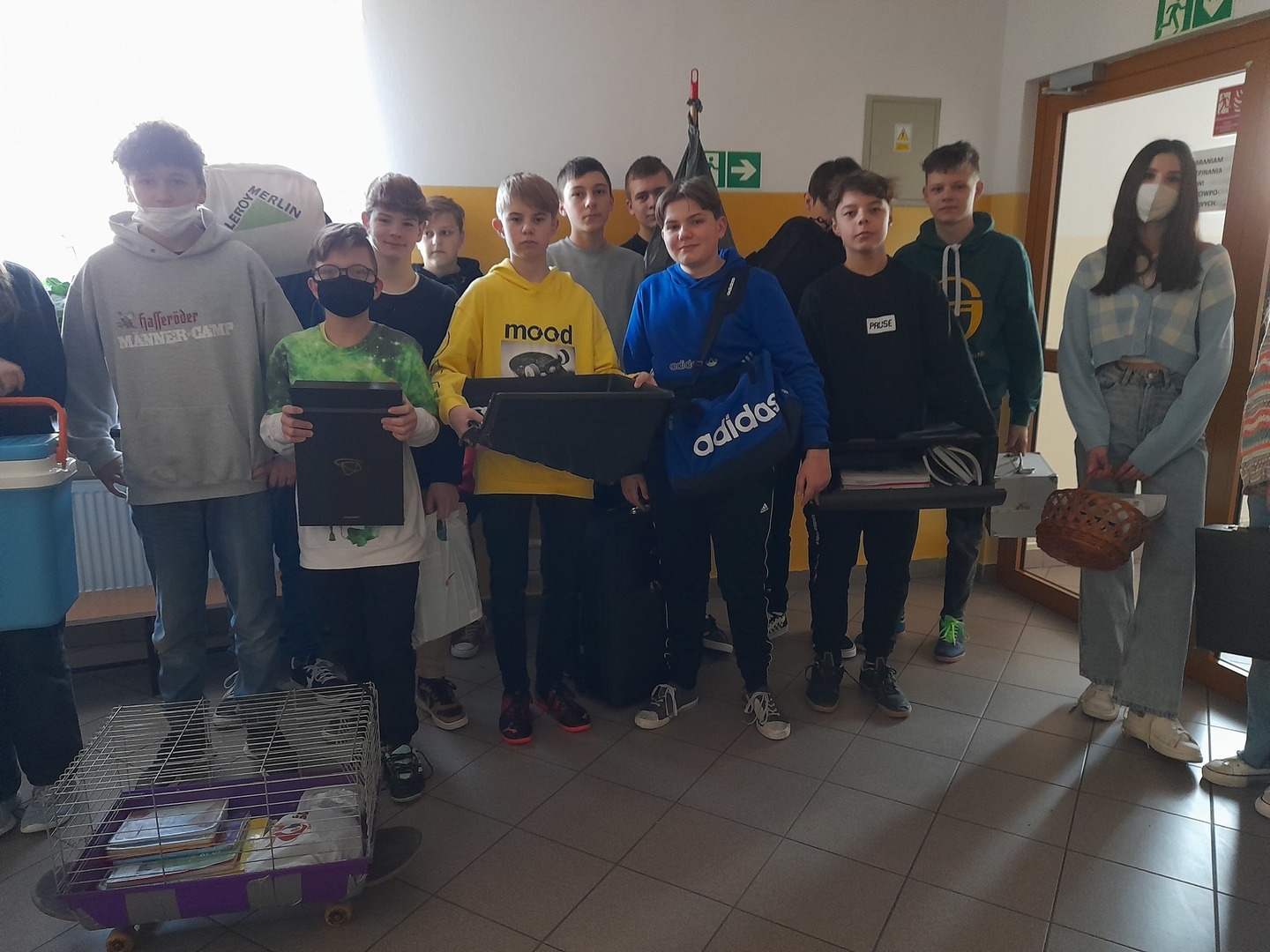 Pierwszy dzień kalendarzowej wiosny tzw. "Dzień wagarowicza" obchodzony był przez naszych uczniow w nietypowy sposób. Uczniowie zamiast swoich tornistrów i plecaków przyniesli do szkoły różne przedmioty: wiadra, skrzynki, pudełka, walizki na kółkach a nawet jeżdżącą klatkę dla królika. Do nich mieli powkładane książki i zeszyty. Kreatywności było dużo a przy tym, ile radości i zabawy!