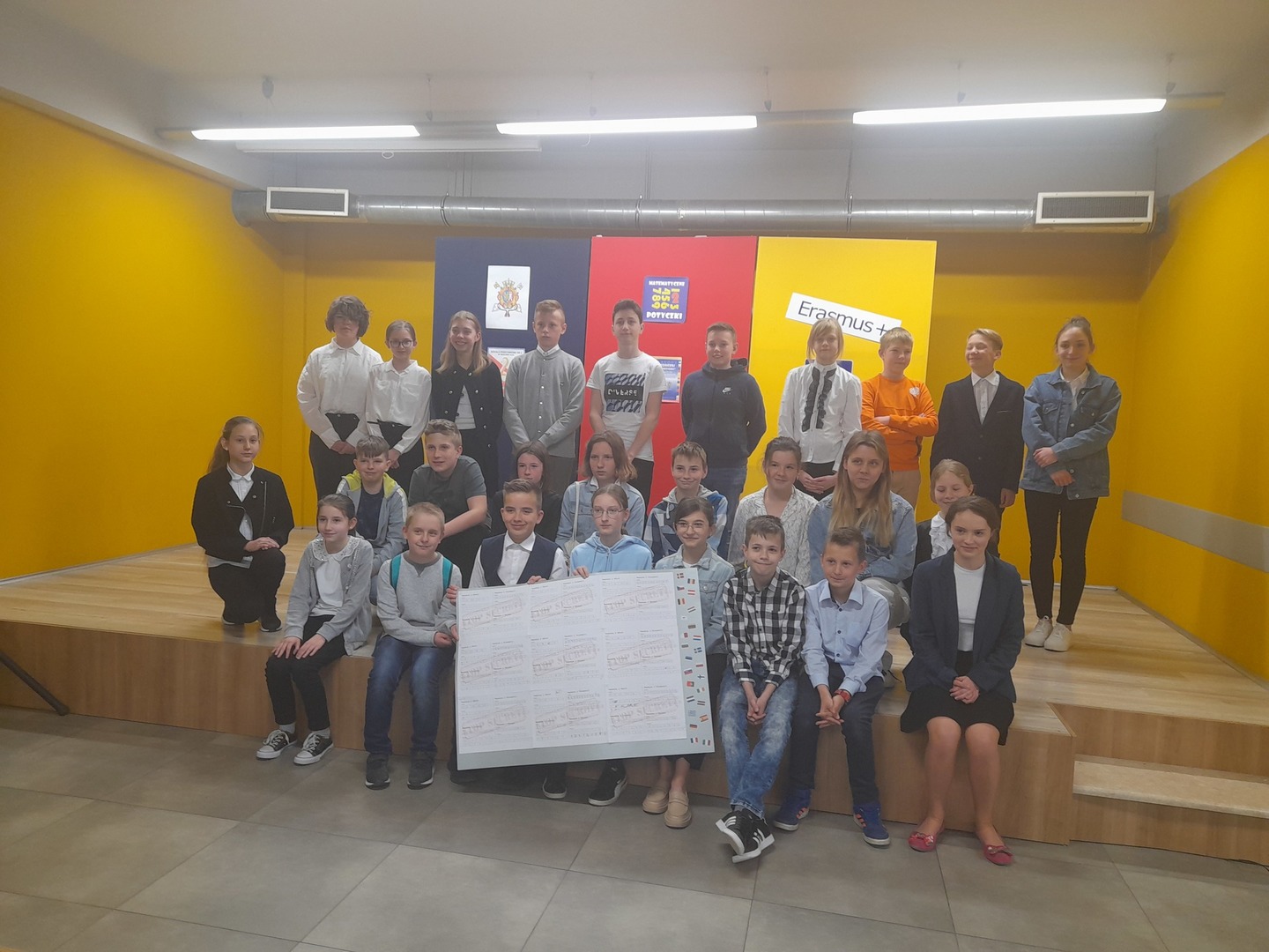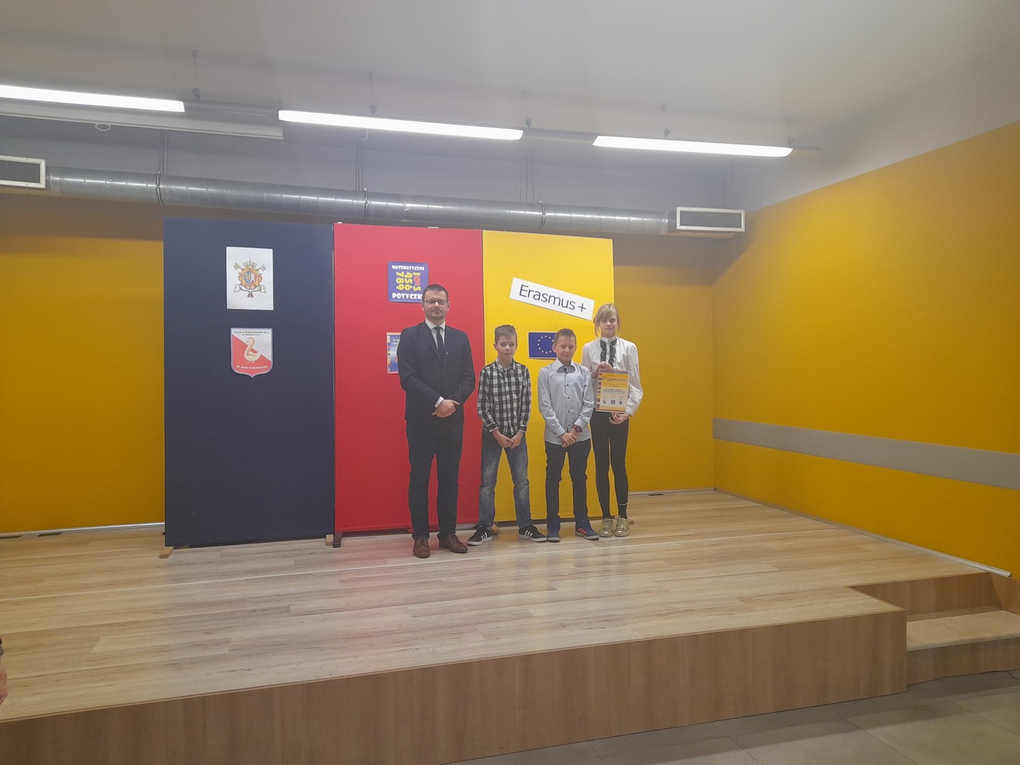 W dniu dzisiejszym tj. 5 maja uczniowie z klasy piatej: Weronika Guzdek, Bartłomiej Lachendrowicz oraz Filip Kruczek spróbowali swoich sił w Gminnym Konkursie Matematycznym " Matematyczne Potyczki". Konkurs odbył się w Szkole Podstawowej nr 2 w Wadowicach. W pierwszym etapie konkursu nasza trójka przez 60 minut rozwiązywała zadania zamknięte i otwarte. A etap drugi polegał na rozszyfrowaniu czterech depeszy: Z Hiszpanii, Estonii, Włoch oraz Polski. Jak na klasę piątą spisali się znakomicie - zajęli miejsce 5 a przy tym bardzo dobrze się bawili. W przyszłym roku mają możliwość się wykazać jako klasa 6. Życzymy dalszego zapału.