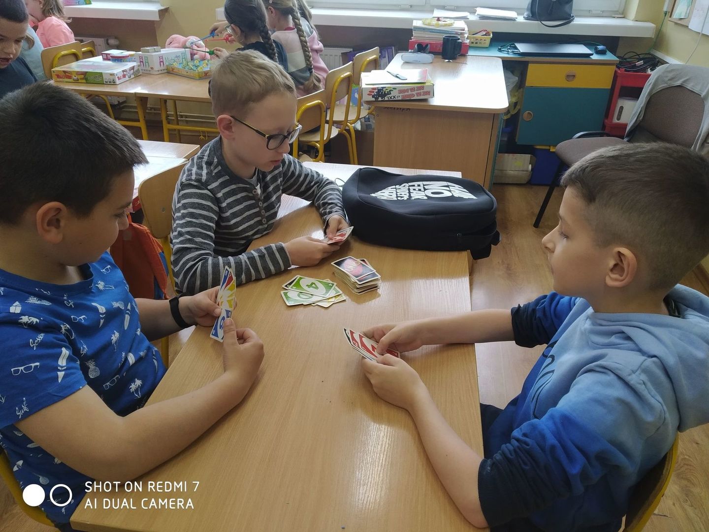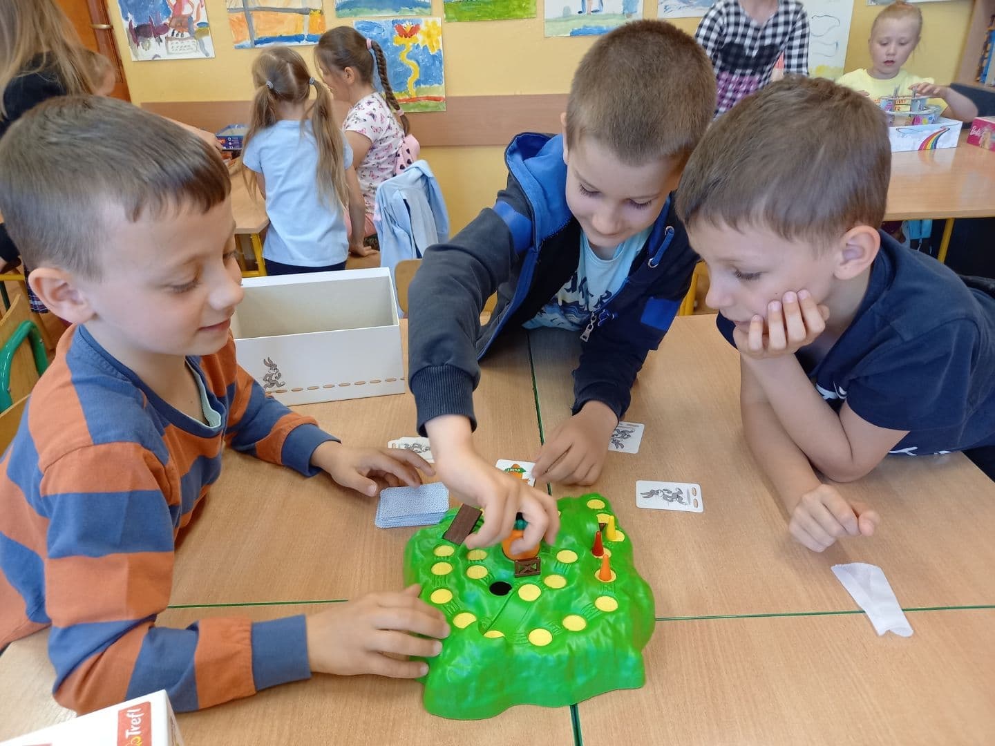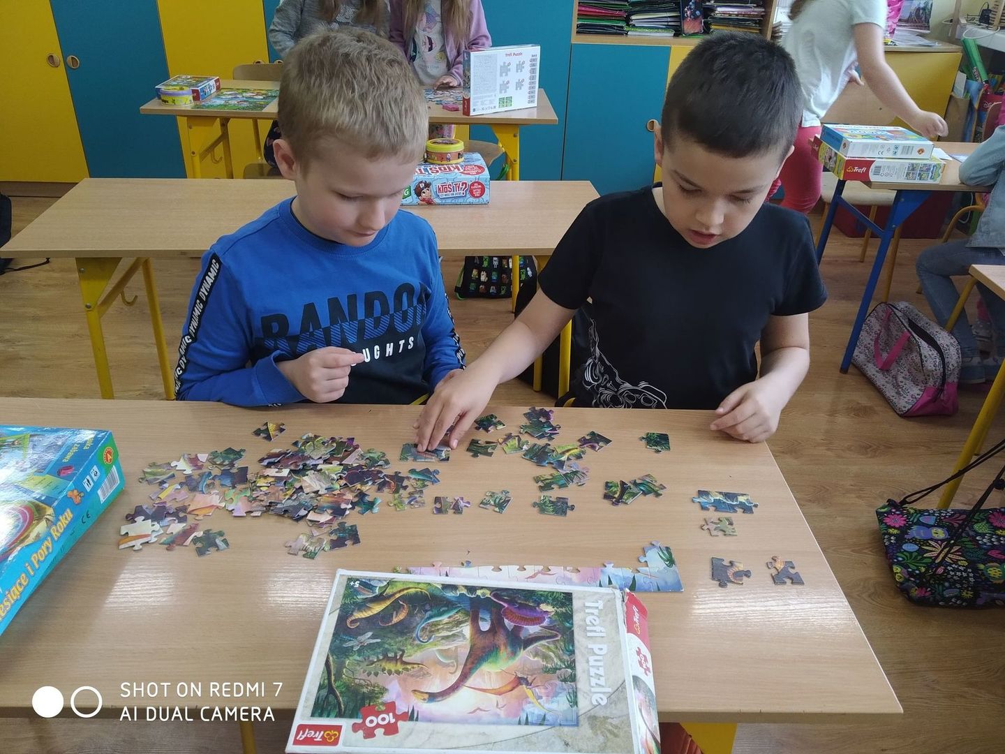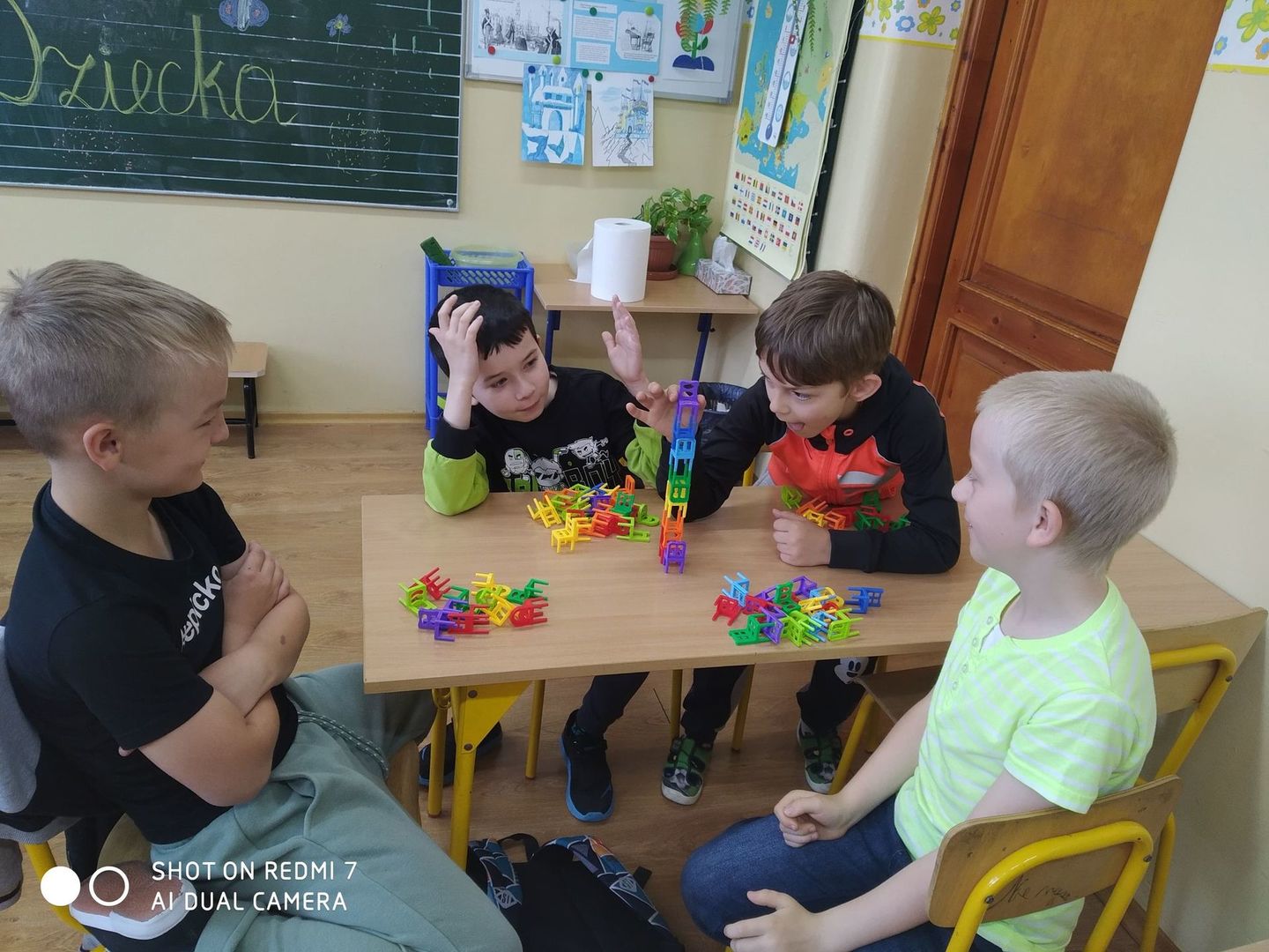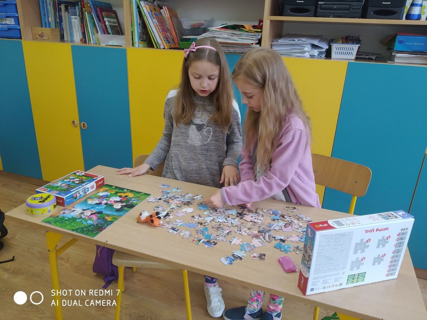 Dzisiaj w Dniu Dziecka uczniowie z klasy pierwszej i drugiej grali w swoje ulubione gry, układali klocki konstrukcyjne i puzzle. Wszyscy świetnie się bawili i w prezencie za wesołą rywalizację otrzymali soczki, ciastka i kolorowe balony.
