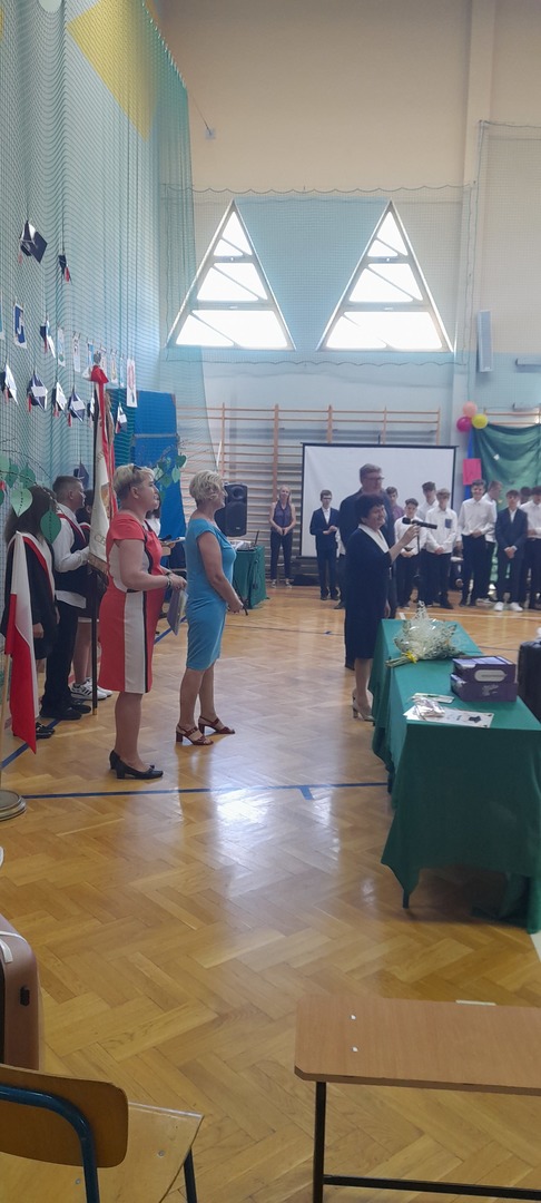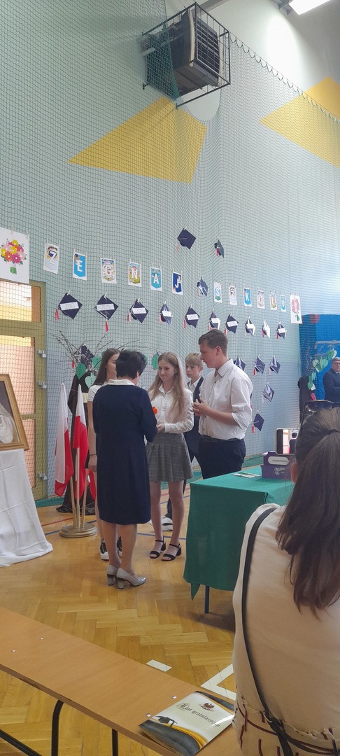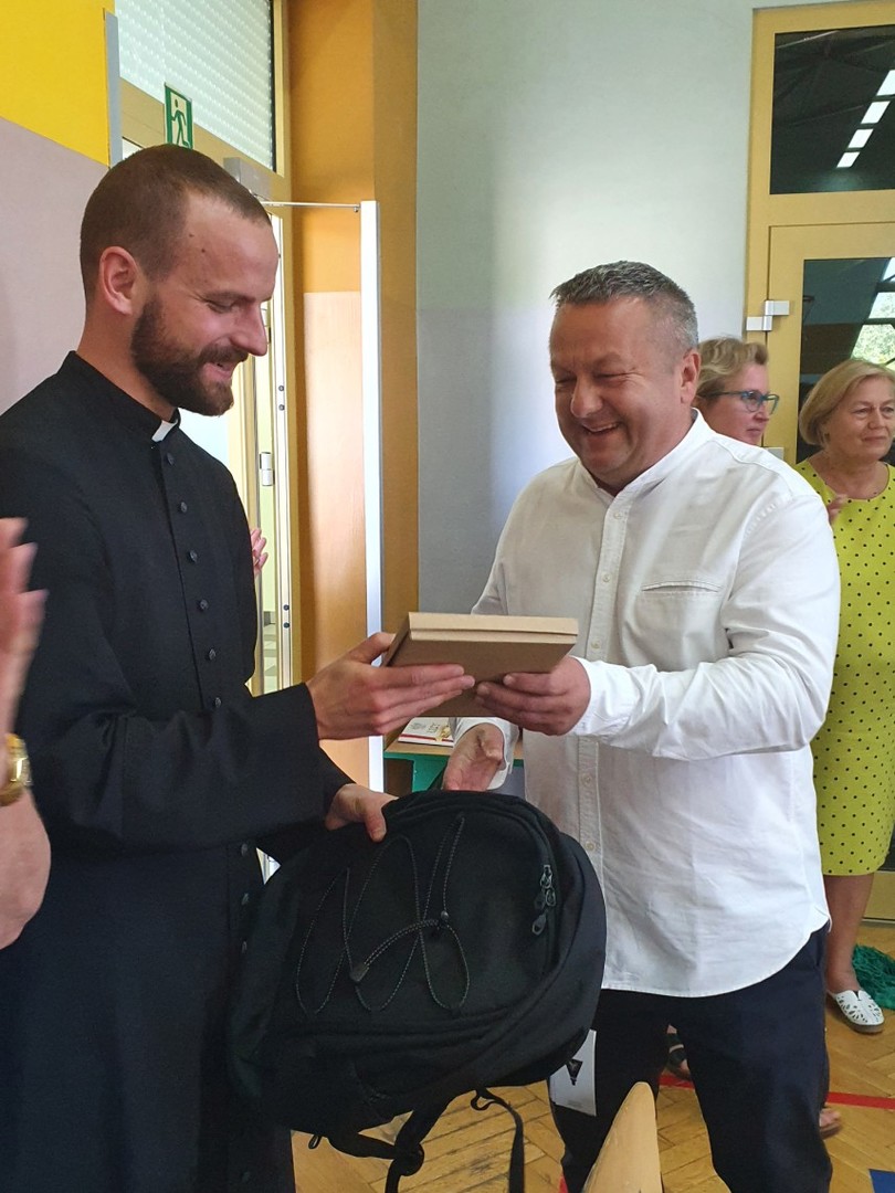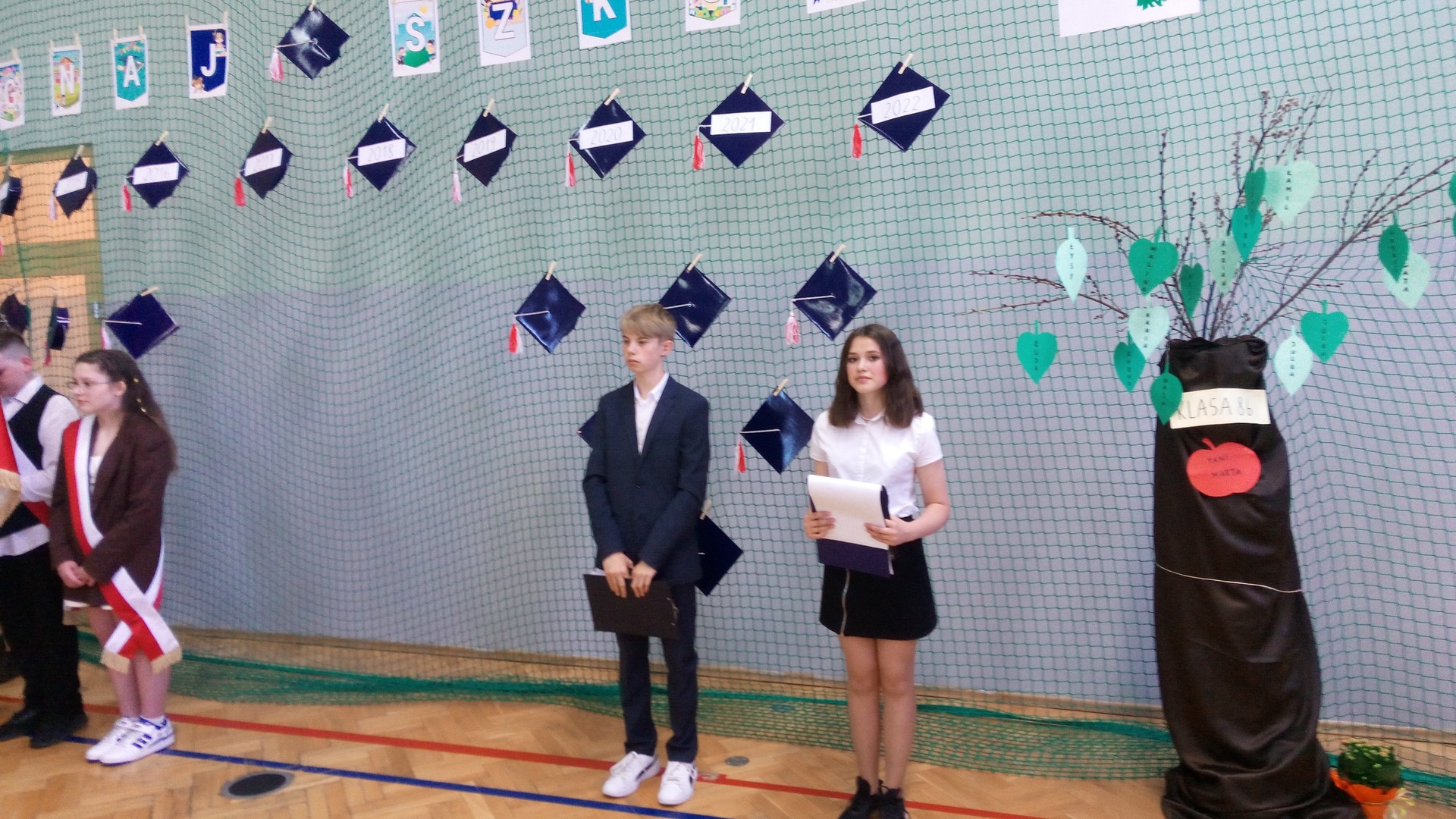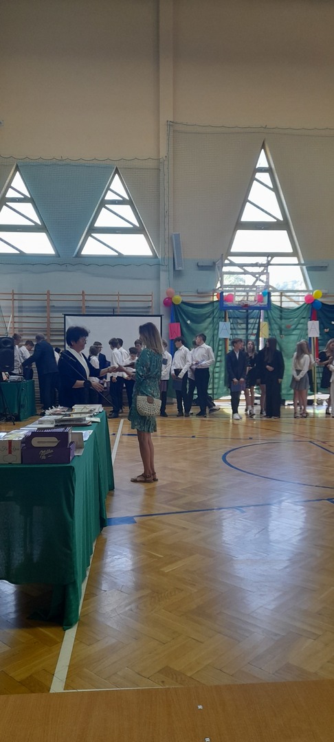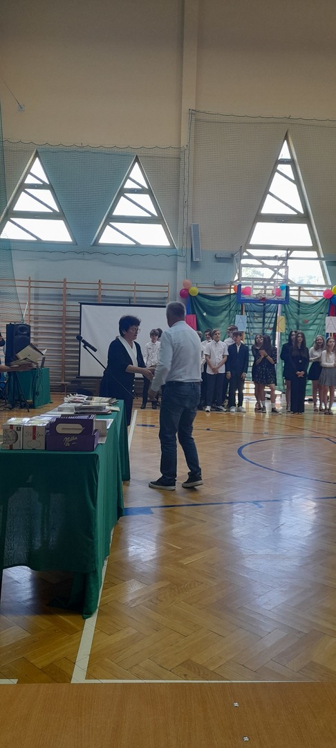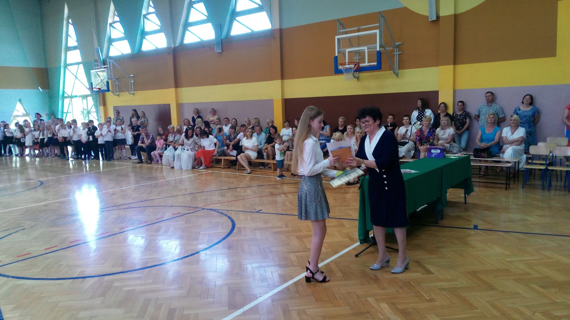 W piatek tj. 24 czerwca 2022r zakończyliśmy rok szkolny 2021/2022. Najpierw uczestniczyliśmy we mszy świętej a nastepnie odbyła się uroczystośc na sali gimnastycznej w szkole z udziałem uczniów, rodziców i pracowników szkoły. Na początek Pani dyrektor Małgorzata Bryndza podsumowała rok szkolny, rozdała świadectwa z wyróżnieniem, świadectwa ukończenia szkoły klasom ósmym a następnie odbyło się rozdanie nagród dla wyróżnionych uczniów. Pani Dyrektor wręczyła również listy gratulacyjne rodzicom uczniów, którzy otrzymali świadectwa z wyróżnieniem. W czasie uroczystości wystąpili przedstawiciele Rady Rodziców, którzy pożegnali czterech z grona nauczycieli. Pani Bogusia Gregorczyk, pani Bogusia Kowalczyk oraz pan Zbigniew Kolber odchodzą na zasłużoną emeryturę. Natomiast ksiądz Michał został przeniesiony do innej parafii. Po tej oficjalnej części klasy ósme przygotowały wraz z wychowawcami krótką pożegnalną część artystyczną. Klasa siódma również pamiętała o absolwentach podarowując im małe pamiątki. Uroczystość zakończyła się pokazem prezentacji zdjęć klas ósmych.