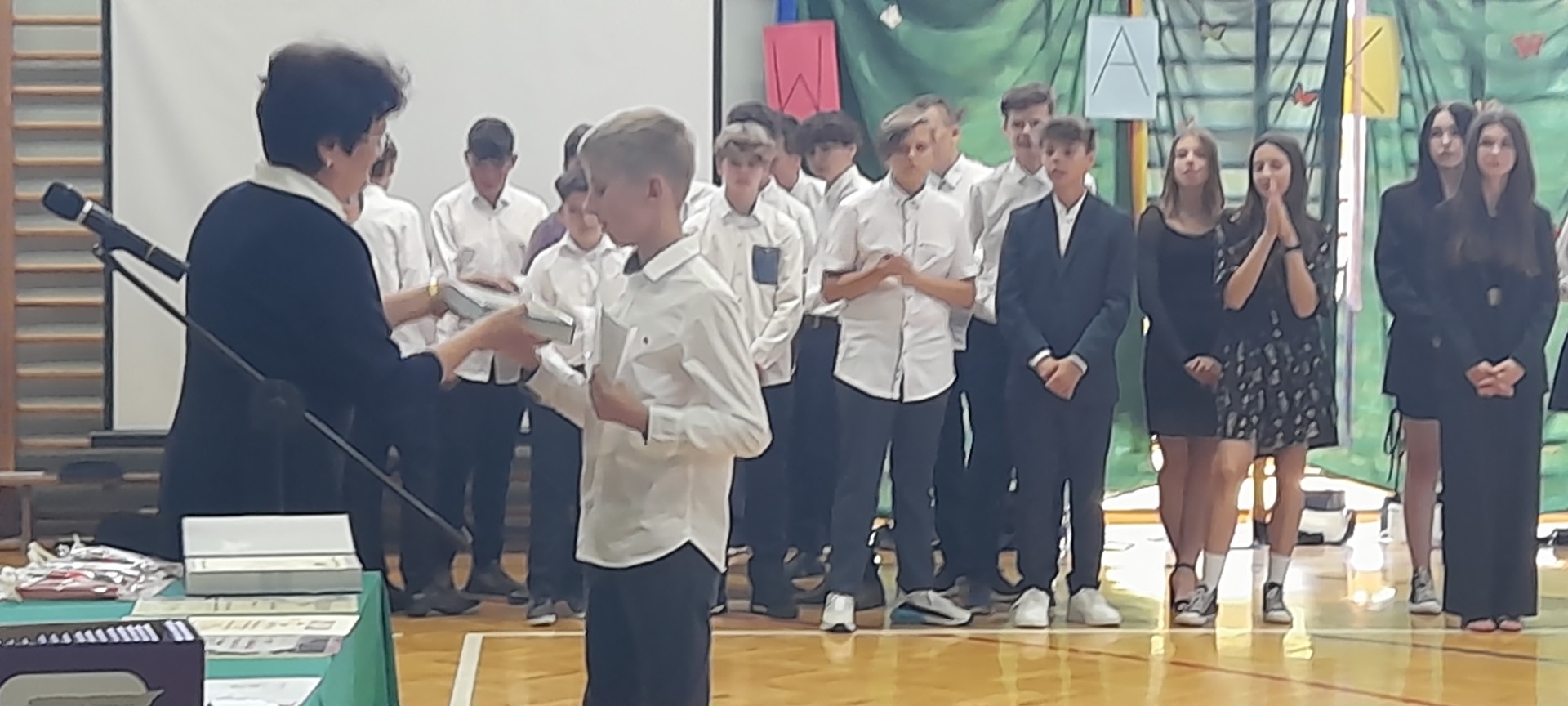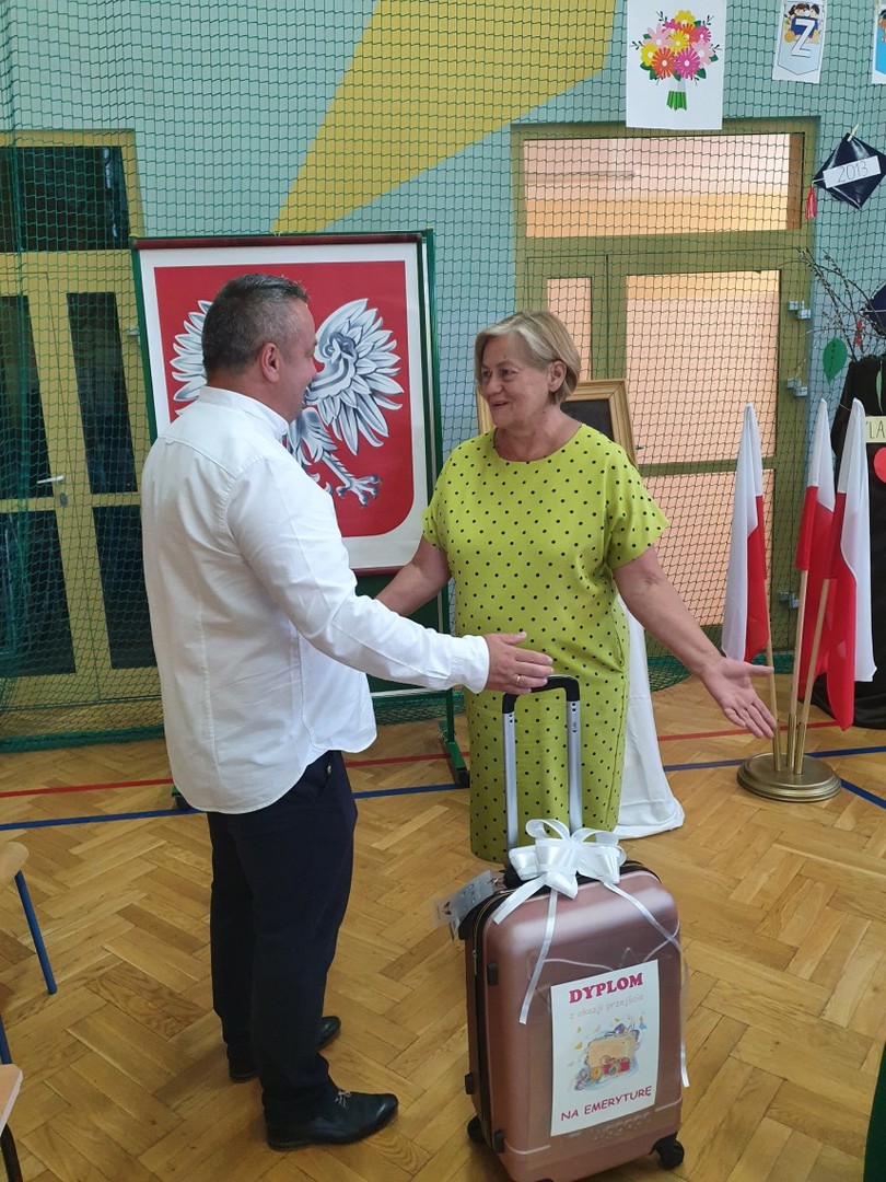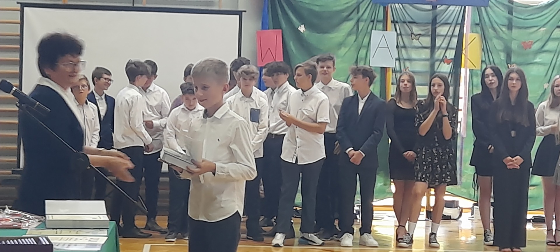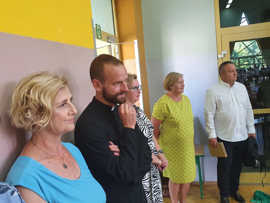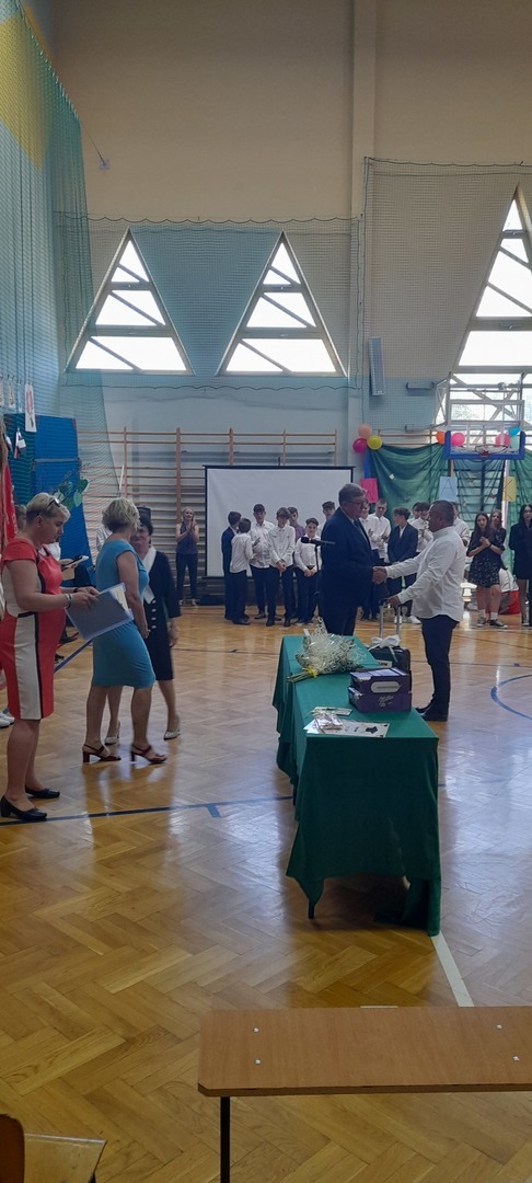 W piatek tj. 24 czerwca 2022r zakończyliśmy rok szkolny 2021/2022. Najpierw uczestniczyliśmy we mszy świętej a nastepnie odbyła się uroczystośc na sali gimnastycznej w szkole z udziałem uczniów, rodziców i pracowników szkoły. Na początek Pani dyrektor Małgorzata Bryndza podsumowała rok szkolny, rozdała świadectwa z wyróżnieniem, świadectwa ukończenia szkoły klasom ósmym a następnie odbyło się rozdanie nagród dla wyróżnionych uczniów. Pani Dyrektor wręczyła również listy gratulacyjne rodzicom uczniów, którzy otrzymali świadectwa z wyróżnieniem. W czasie uroczystości wystąpili przedstawiciele Rady Rodziców, którzy pożegnali czterech z grona nauczycieli. Pani Bogusia Gregorczyk, pani Bogusia Kowalczyk oraz pan Zbigniew Kolber odchodzą na zasłużoną emeryturę. Natomiast ksiądz Michał został przeniesiony do innej parafii. Po tej oficjalnej części klasy ósme przygotowały wraz z wychowawcami krótką pożegnalną część artystyczną. Klasa siódma również pamiętała o absolwentach podarowując im małe pamiątki. Uroczystość zakończyła się pokazem prezentacji zdjęć klas ósmych.