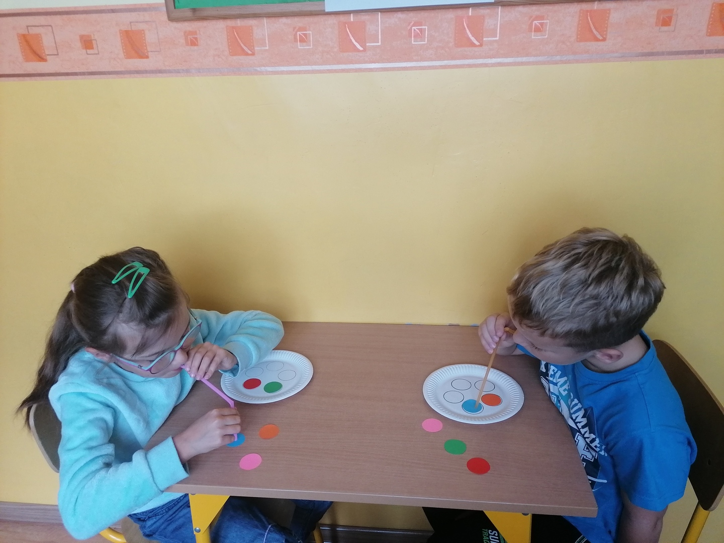 Tego dnia uczniowie zostali zaproszeni do udziału w kreatywnych zadaniach logopedycznych. Odbyła się kropkowa gimnastyka buzi i języka. Nie zabrakło również ćwiczeń oddechowych, podczas których dzieci dmuchały malutkie, kolorowe pomponiki czy przenosiły kolorowe kółeczka na talerzyki za pomocą rurki. Ponadto dzieci utrwalały prawidłową wymowę głosek.