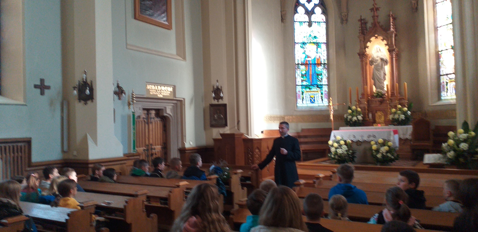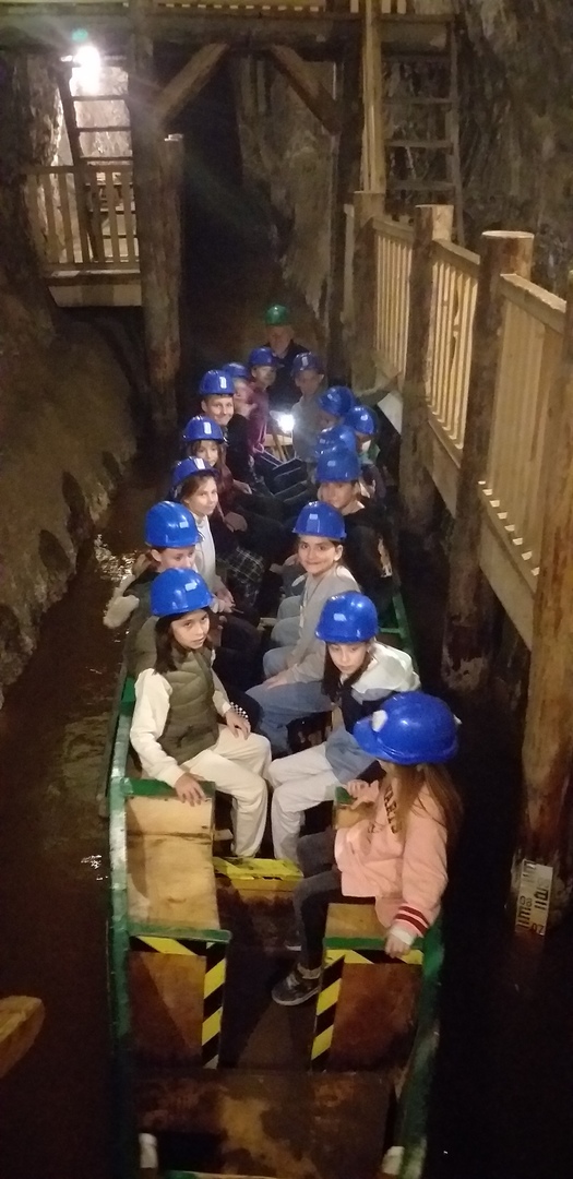 W dniach 18 – 19 października uczniowie klasy V i VI uczestniczyli w dwudniowej wycieczce. Zaczęliśmy od przyjazdu do Krakowa. Na wzgórzu wawelskim odwiedziliśmy katedrę św. Stanisława i św. Wacława, gdzie złożyliśmy kwiaty przy grobie naszej Patronki – Świętej Królowej Jadwigi. Ze sporym zainteresowaniem zwiedziliśmy skarbiec wawelski oraz apartamenty prywatne polskich władców. Miło nam również było spotkać się w seminarium z księdzem Robertem Młynarczykiem, który serdecznie pozdrawia całą społeczność szkolną. Po krótkim spacerze po Krakowie i podziwianiu zabytków tego miasta – Sukiennic, Ratusza, Kościoła Mariackiego oraz Kościoła Matki Bożej na Piasku ze słynną „stópką Królowej Jadwigi”, udaliśmy się do kopalni soli w Bochni, gdzie spędziliśmy noc ponad 200 metrów pod ziemią. Cisza nocna w kopalni zaczyna się o północy, więc zdążyliśmy jeszcze pospacerować po kopalni z przewodnikiem, płynąć łódką, pograć w piłkę na boisku i zatańczyć na dyskotece. Noc w kopalni to wspaniała przygoda. Drugiego dnia zwiedziliśmy zamek w Nowym Wiśniczu – podziwialiśmy bogato wyposażone wnętrza oraz odbyliśmy wirtualny lot nad zamkiem jako nietoperze. Bastion VR to bardzo ciekawy sposób poznania zamkowego życia. Następnie po krótkim spacerze dotarliśmy do Koryznówki – małego muzeum pamiątek po Janie Matejce, gdzie posłuchaliśmy o życiu i twórczości tego znakomitego polskiego malarza. Ostatnim przystankiem była słynna z konkursu palem wielkanocnych Lipnica Murowana, w której obejrzeliśmy zabytkowy kościół p.w. św. Leonarda.