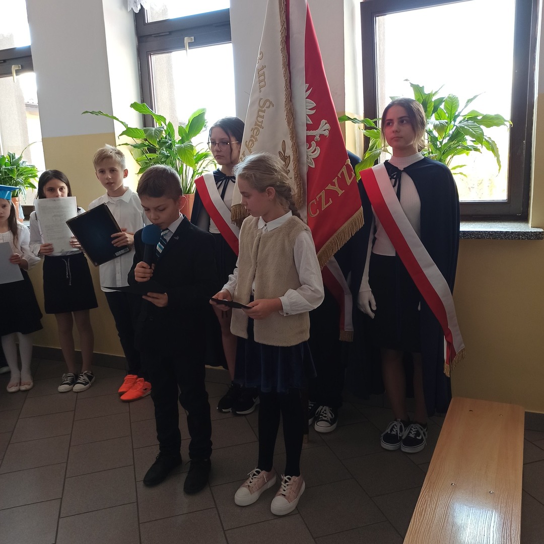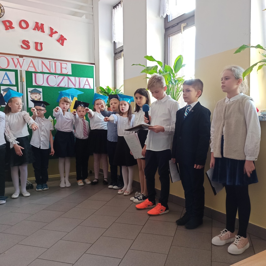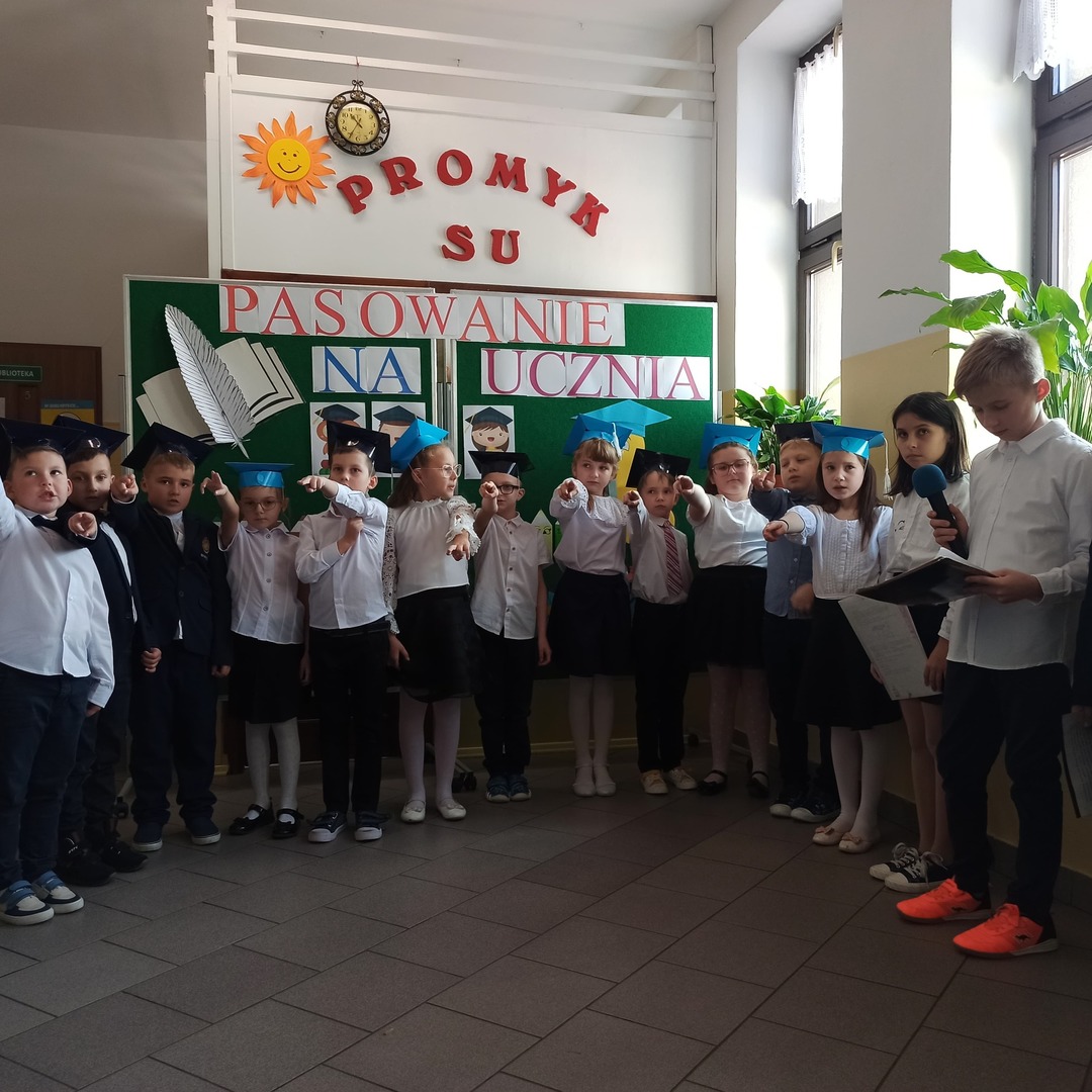 W dniu 25 października przyjęliśmy pierwszoklasistów w poczet uczniów naszej szkoły. Dzieci zaprezentowały krótki program artystyczny, podczas którego pięknie śpiewały i recytowały wiersze. Po występie dzieci uroczyście ślubowały oraz zostały pasowane na uczniów przez panią dyrektor. Otrzymały również dyplomy i stały się pełnoprawnymi czytelnikami biblioteki szkolnej. Następnie przedstawiciele trzeciej klasy powitali ich w społeczności szkolnej i wręczyli upominki. Po zakończeniu części oficjalnej uczestnicy uroczystości udali się na słodki poczęstunek.