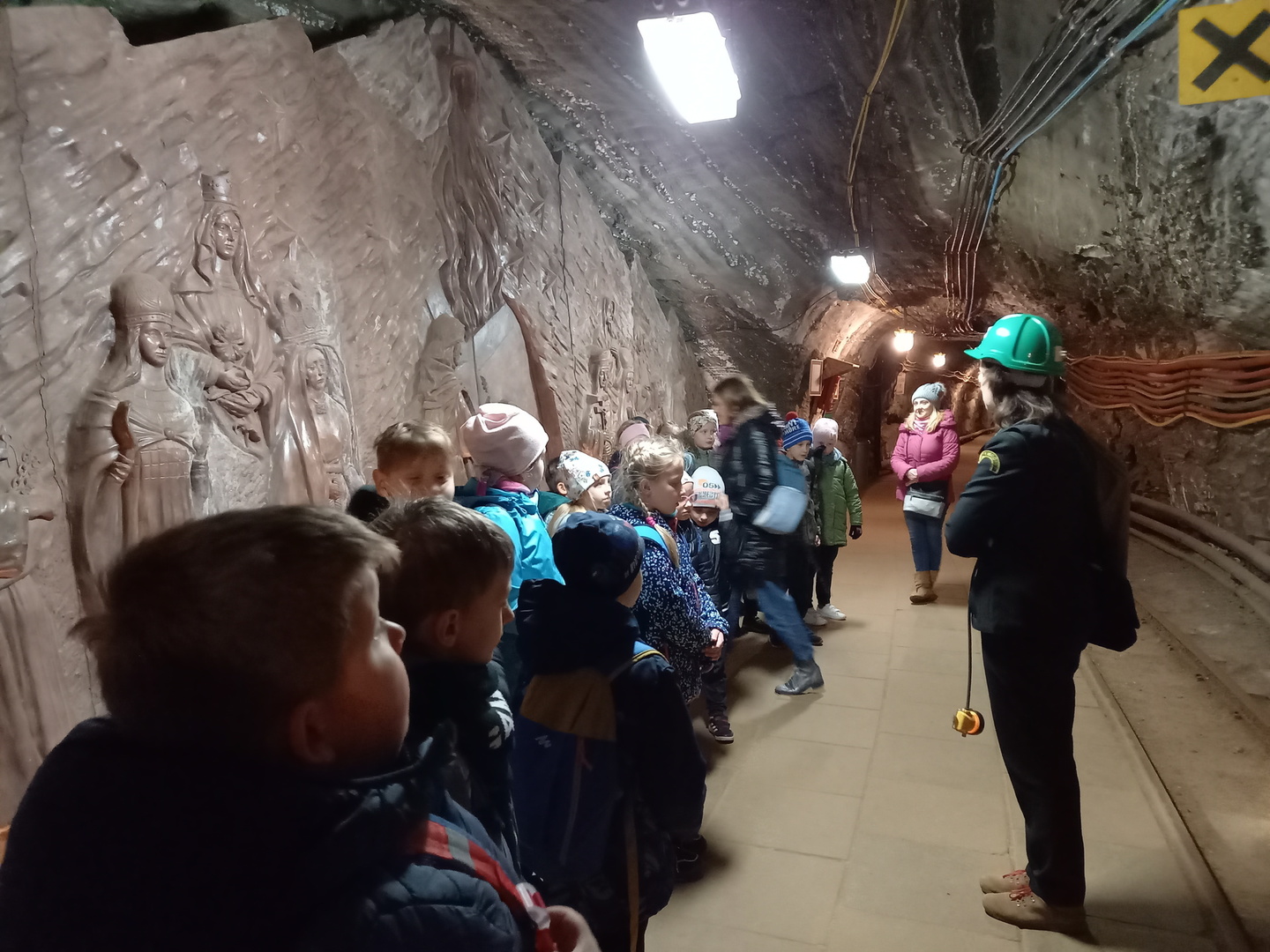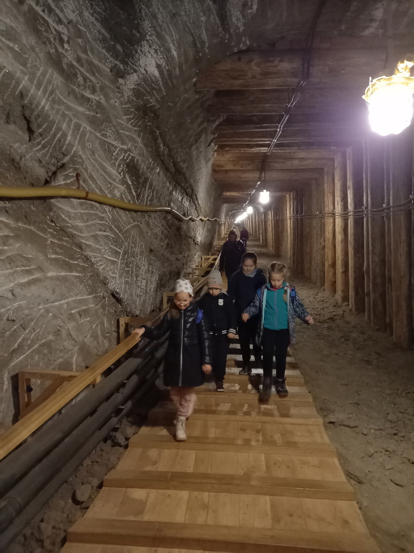 Przemierzając kopalniane korytarze uczniowie klasy II poznali historię wydobycia soli, odgadywali wskazówki, które pozwoliły im na spotkanie z kimś wyjątkowym – górnikiem średniowiecznym. Opowiedział on o trudach górniczego fachu. Uczestnicy wycieczki poznali dawne narzędzia i urządzenia, które służyły do urobku soli. Zobaczyli stajnie, w których odpoczywały konie pomagające górnikom w ich ciężkiej pracy. Przejechali się kolejką o nazwie „Kuba” na cześć ostatniego konia pracującego w bocheńskiej kopalni. Brali też udział w zajęciach plastycznych, podczas których wykonali „czako” – nakrycie głowy górnika. Tego dowiedzieli się od górnika współczesnego, ubranego w strój galowy. Widzieli piękną kaplicę, bałwany solne, rzeźby z soli. Z chęcią i zaciekawieniem słuchali pani przewodnik. Na koniec z radością oddali się zabawie w części rekreacyjnej kopalni. Pobyt w kopalni zakończył wyjazd na powierzchnię, który tak jak i zjazd dostarczył dzieciom niezapomnianych wrażeń.Po zakupie pamiątek z uśmiechem i pełni emocji uczniowie bezpiecznie wrócili do domu.