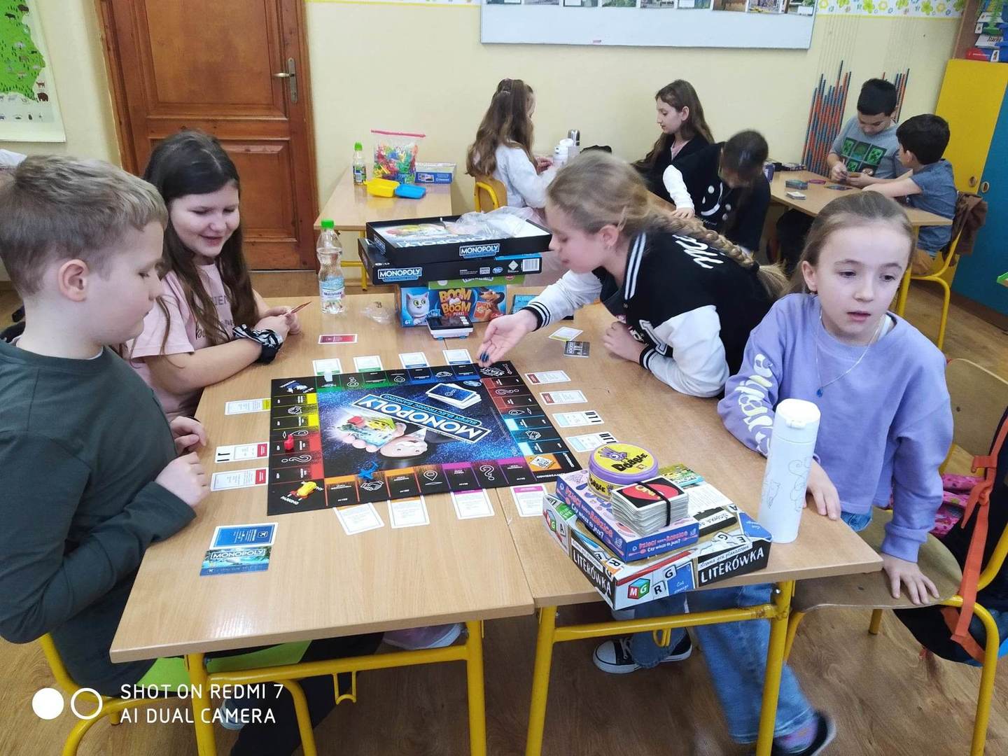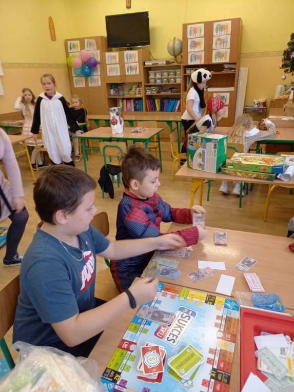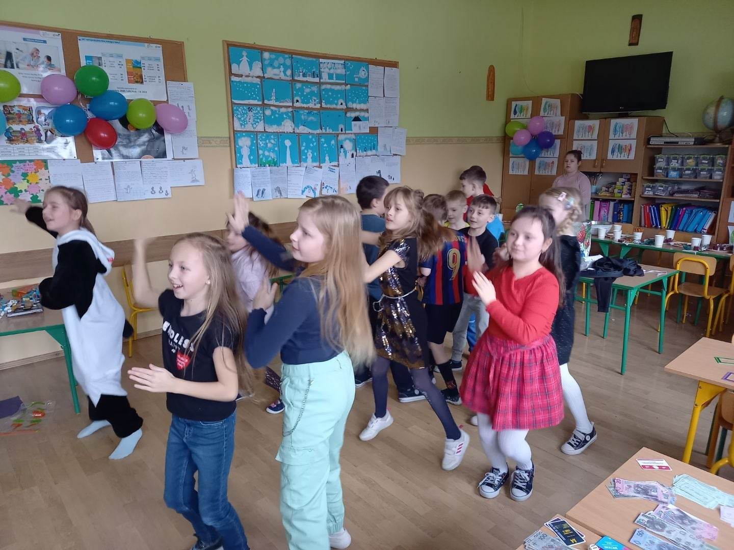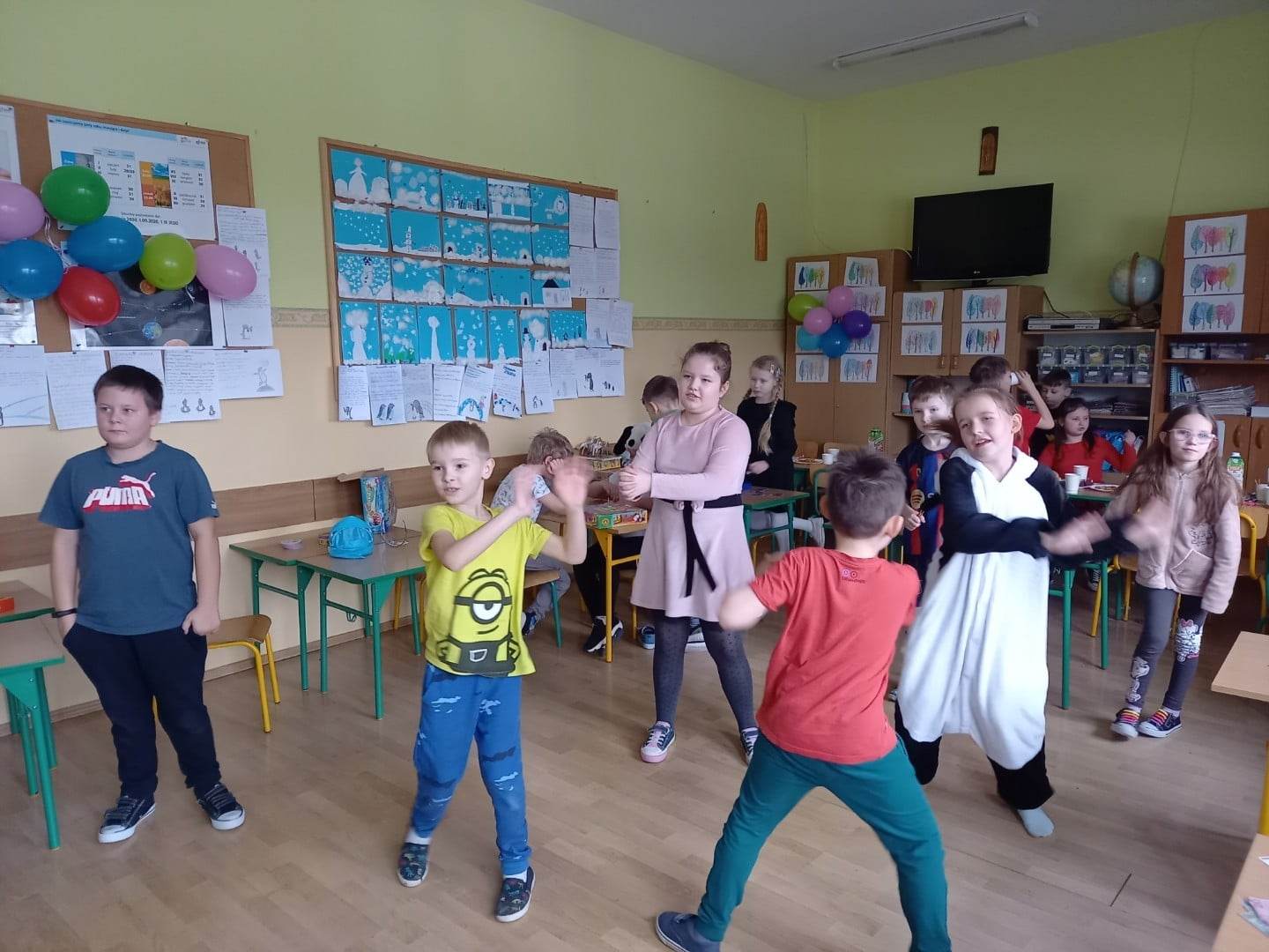 W tym tygodniu w klasach I-III miało miejsce wesołe wydarzenie. Uczniowie przebrali się w kolorowe, zabawne i ciekawe stroje. Każda z klas w swojej sali urządziła dzień zabaw i gier. Dzieci przyniosły gry planszowe, zręcznościowe, klocki lego, układanki, puzzle. Były też tańce i muzyka, kolorowe balony oraz słodki poczęstunek. Radosne twarze, wesołe miny świadczyły o tym, że uczniowie byli zadowoleni i pełni wrażeń wyszli ze szkoły.