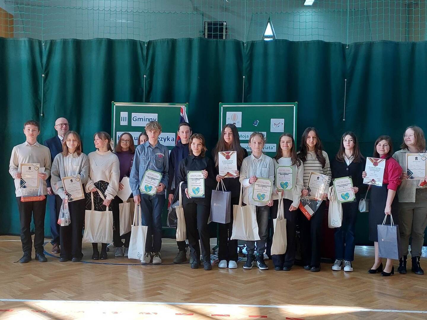 2 marca w naszej szkole odbył się drugi etap III Gminnego Konkursu Języka Angielskiego dla uczniów klas VII i VIII szkoły podstawowej. W tegorocznej edycji wzięło udział prawie 80 uczniów z ośmiu podstawówek z gminy Wadowice. W finale 15 uczniów, którzy najlepiej napisali test sprawdzający znajomość słownictwa i gramatyki, przedstawiło i omówiło prezentację pt. „Moja podróż dookoła świata.” Komisja konkursowa, w której skład weszli wszyscy przybyli z uczniami nauczyciele języka angielskiego podkreślała wysoki poziom konkursu oraz solidne przygotowanie wszystkich