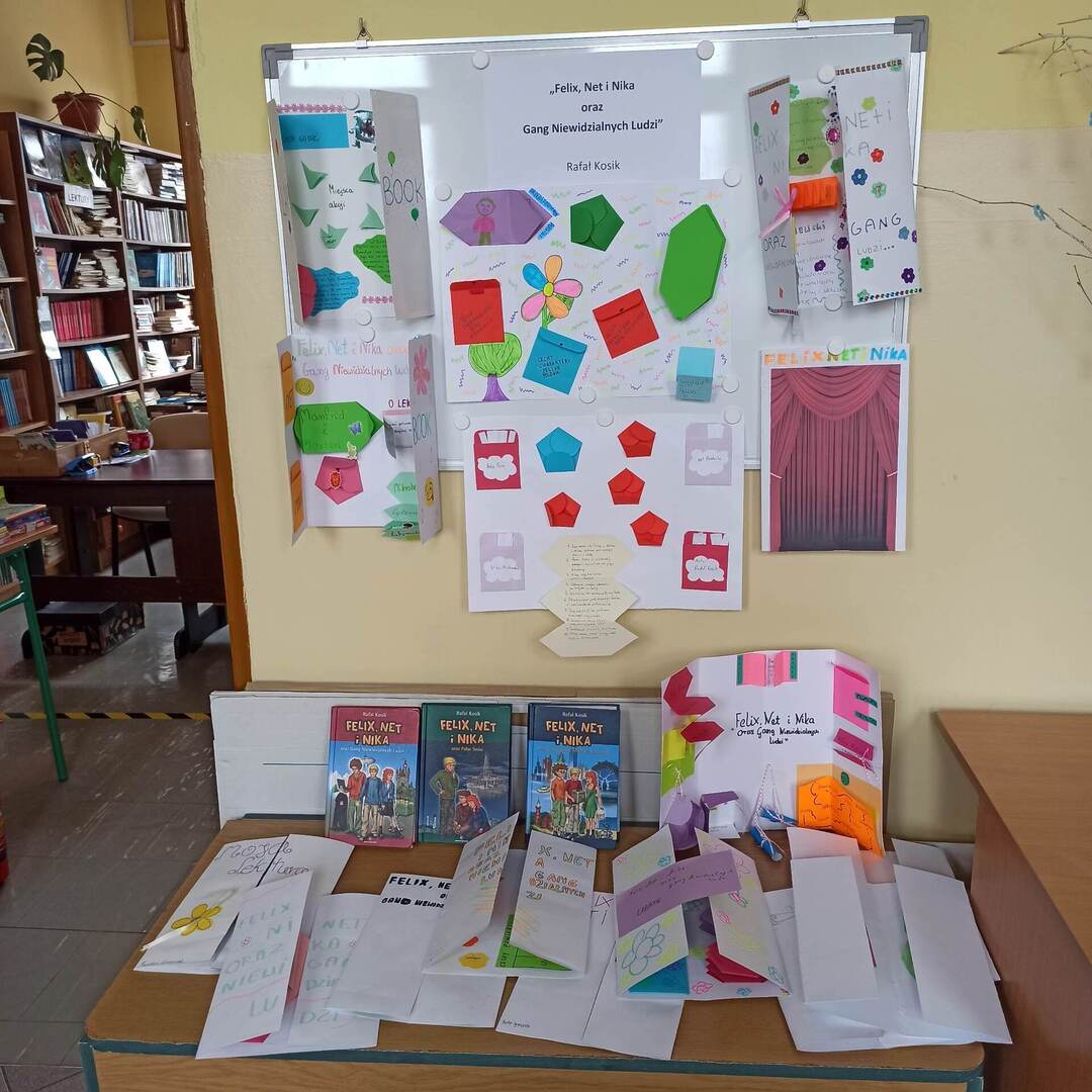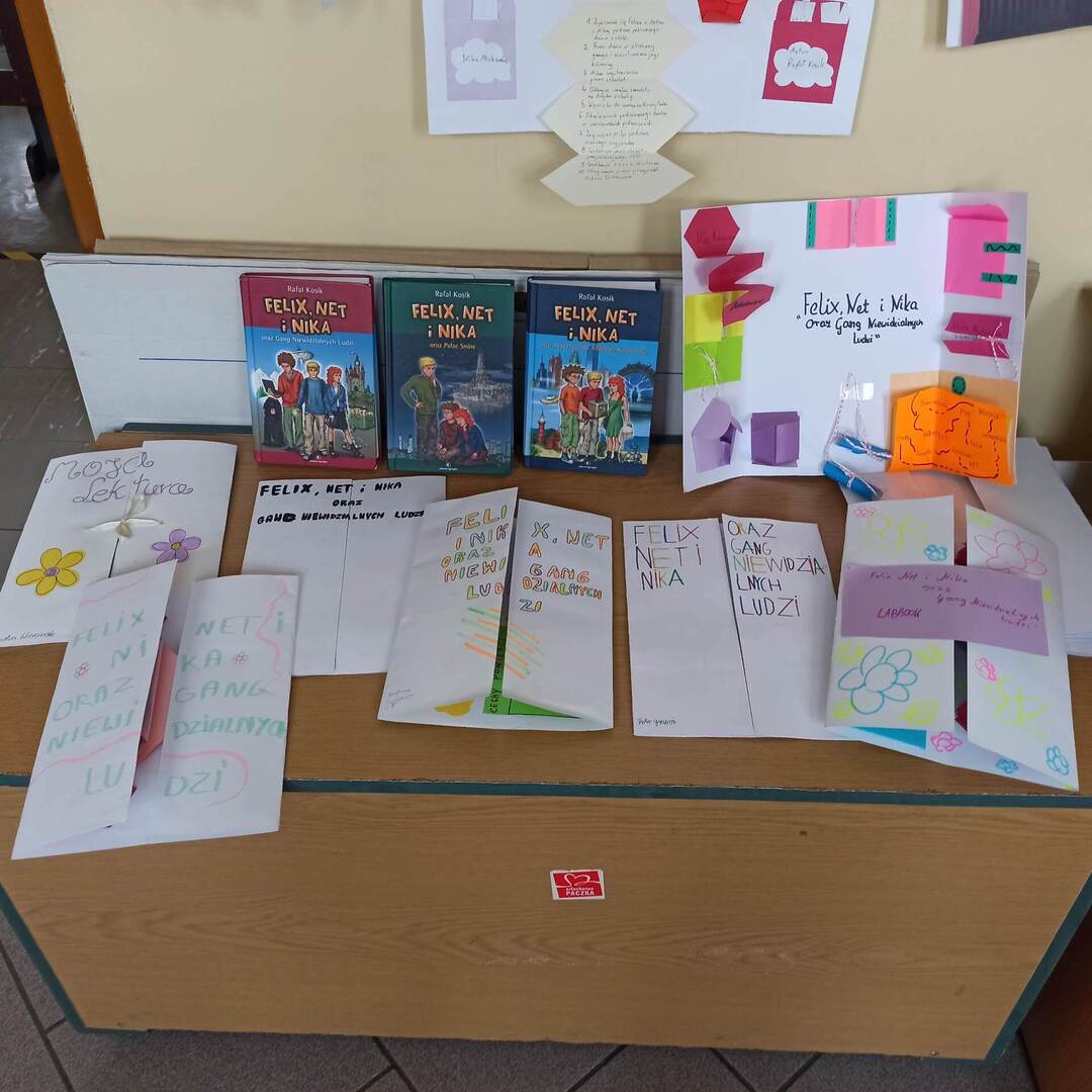 Klasa VI w celu utrwalenia wiadomości o lekturze pt. „Felix, Net i Nika oraz Gang Niewidzialnych Ludzi” na lekcjach języka polskiego wykonała kolorowe lapbooki z ciekawostkami o książce.