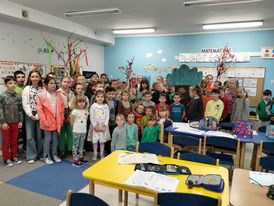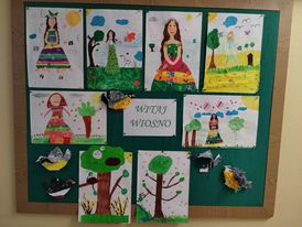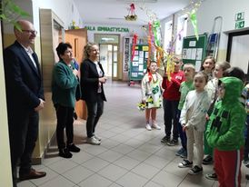 Dzisiaj tj.21 marca dzieci z klas I-III przywitały wiosnę. Najpierw wykonywały piękne prace plastyczne, które prezentują się na gazetkach ściennych. Z kolorowymi gaikami odwiedziliśmy Dyrekcję i młodszych kolegów, koleżanki z przedszkola oraz spacerowaliśmy wokół szkoły prezentując wiosenne stroje.