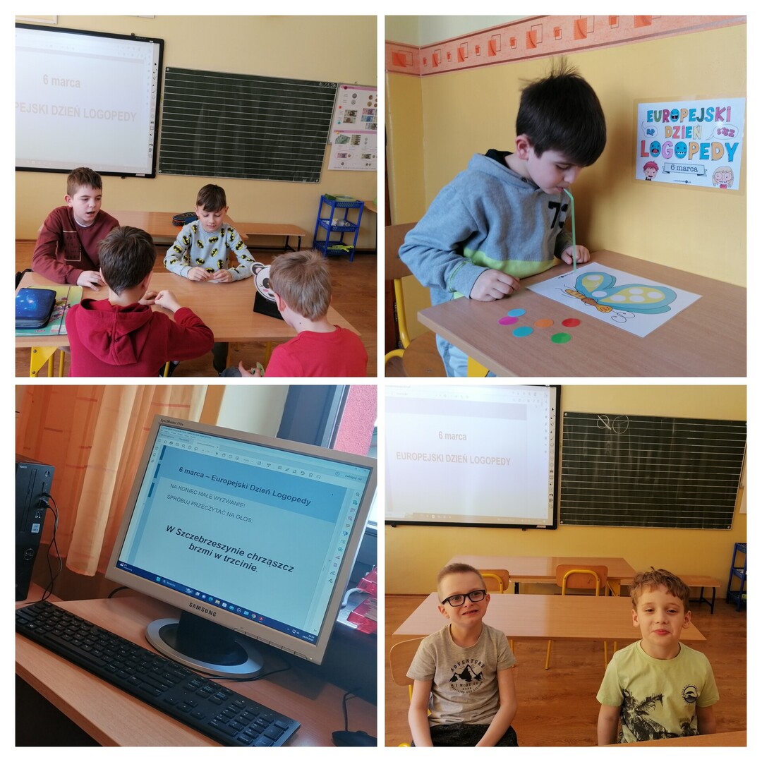 Starsze dzieci w szkole, oprócz ćwiczeń oddechowych oraz usprawniających narządy artykulacyjne, miały okazję obejrzeć krótką prezentację na temat logopedii oraz zawodu logopedy. Ponadto uczniowie podejmowali wyzwanie jakim było czytanie na głos śmiesznych, krótkich łamańców językowych.