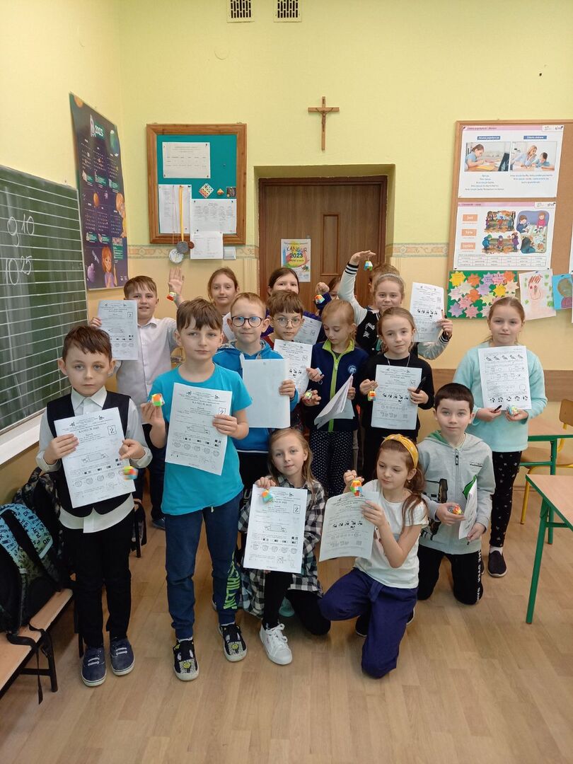 16 marca uczniowie naszej szkoły klas II-VIII przystąpili do Międzynarodowego Konkursu Matematycznego – Kangur 2023. Do konkursu zgłosiło się aż 40 uczestników, którzy przez 75 minut dzielnie rozwiązywali problemy matematyczne i poszukiwali prawidłowych odpowiedzi. Uczniowie pracowali w 4 kategoriach wiekowych: Żaczek, Maluch, Beniamin oraz Kadet. Już na początku konkursu każdy uczestnik otrzymał układankę przestrzenną w postaci ostrosłupa ściętego aby ćwiczyć wyobraźnię przestrzenną. Teraz z niecierpliwością oczekujemy na wyniki!