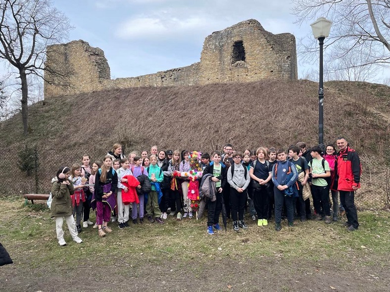 25 marca, w piątek cała społeczność klas 4-8 brała udział w Rajdzie zorganizowanym przez PTTK. W ten sposów wspólnie z innymi szkołami chcieliśmy powitać wiosnę a zarazem powrócić do trochę zapomnianej tradycji wspólnego wędrowania, poznawania okolicy, podziwiania najbliższych nam krajobrazów. Wędrówkę rozpoczęliśmy w Brodach przy Kościele Wniebowzięcia NMP. Tylko kilku uczniów wiedziało o istnieniu tego miejsca, a przecież to tak blisko nas. Pan przewodnik - Tomasz Skowron, zapoznał nas z historią tego miejsca, opowiedział o kościele i nauczył rozpoznawać 3 z 12 apostołów, którzy zdobią ogrodzenie kościoła. Zwiedziliśmy oba poziomy koscioła a następnie wyruszyliśmy na szlak, by ostatecznie dotrzeć na Górę Lanckorońską i ruiny zamku. Po drodze pan przewodnik opowiadał wiele ciekawych historii związanych z mijanymi kaplicami, szlakiem św. Jakuba, pierwszymi pensjonatami, czy hotelami, które zapoczątkowaLy historię hotelarstwa w naszej okolicy. Jak się okazało, dla niektórych wyjście na niewielkie wzniesienia było sporym wyzwaniem :) Dobrze, że na szczycie góry czekała na wszystkich ciepła kiełbaska. Przy zamku był czas na odpoczynek, posilenie się, uroczyste spalenie marzanny, wręczenie odznak PTTK oraz pucharów. Po zejściu ze szczytu, spotkaliśmy się jeszcze na rynku lanckorońskim i zapoznaliśmy się z historią Lanckorony w Muzeum Regionalnym. Na zakończenie był jeszcze czas na zakup regionalnych pamiątek oraz pięknego rękodzieła. Wielu z nas wyjechało z Lanckorony z aniołem w plecaku... Niektórzy, zachwyceni wyjątkowym klimatem tego miejsca, postanowili szybko tu powrócić. My, jako szkoła, wrócimy na pewno za rok!