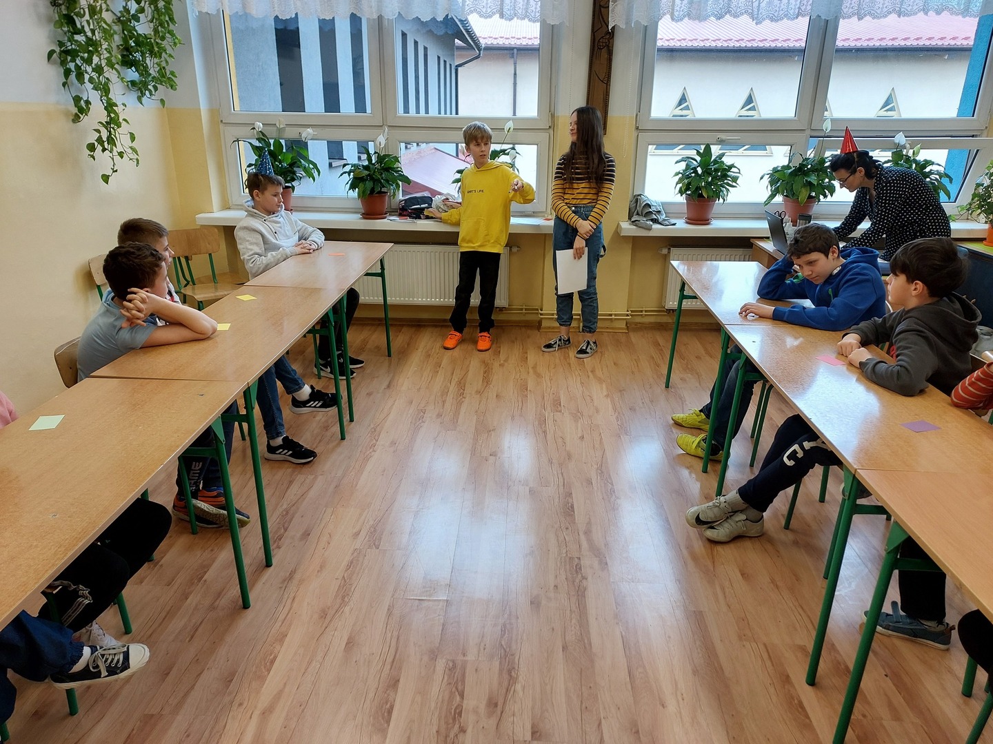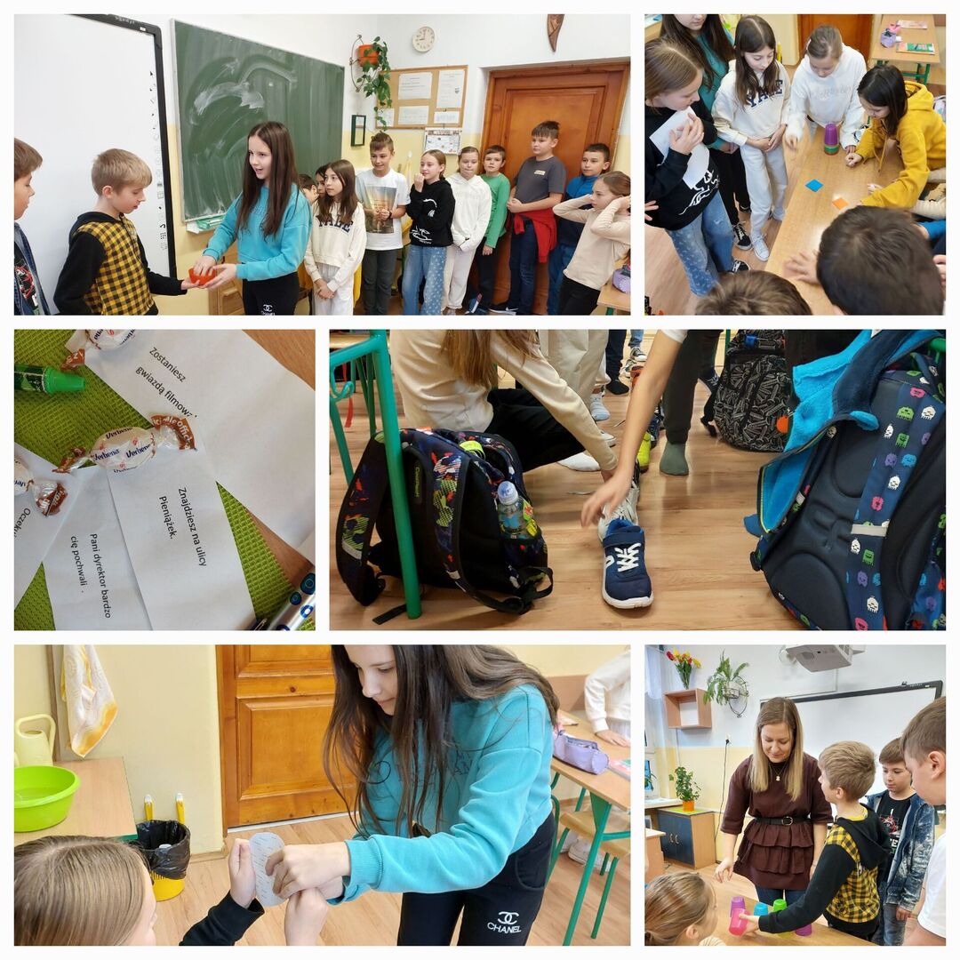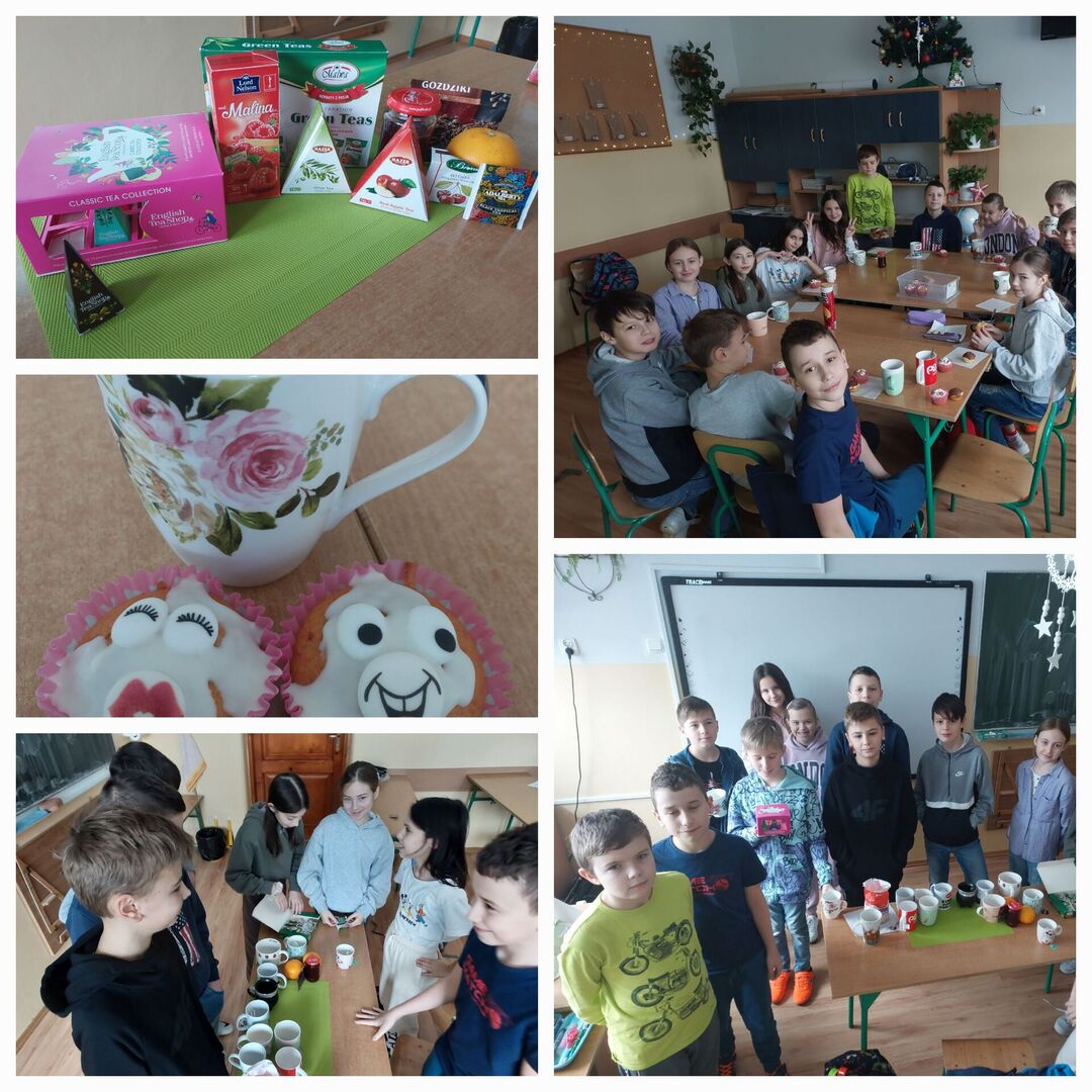 Uczniowie klasy piątej przygotowywali różne wydarzenia klasowe, od najwcześniejszych Andrzejek, poprzez inne dni, takie jak: Dzień Herbaty, Dzień Popcornu, Dzień Gier Planszowych, Setna lekcja matematyki. Poniżej fotorelacja.
