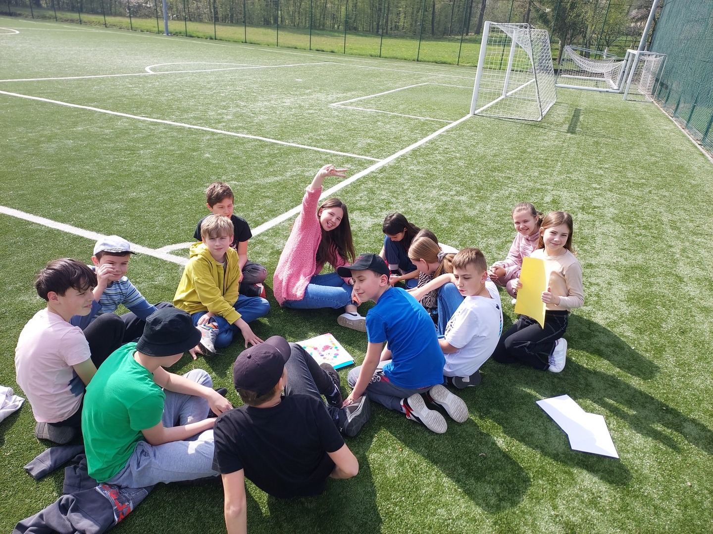 Korzystając, w końcu, z pięknej pogody, wybraliśmy się na zewnątrz aby wspólnie zagrać w grę planszową i trochę się poruszać. Na wcześniejszych godzinach wychowawczych klasa podzielona na drużynę chłopców i dziewcząt przygotowywała gry planszowe na temat naszej klasy i szkoły. Były pytania, zadania... i co się okazało? Że cały czas się poznajemy! Był śmiech, gwar i dobra zabawa. Niech tak będzie jak najczęściej!:)