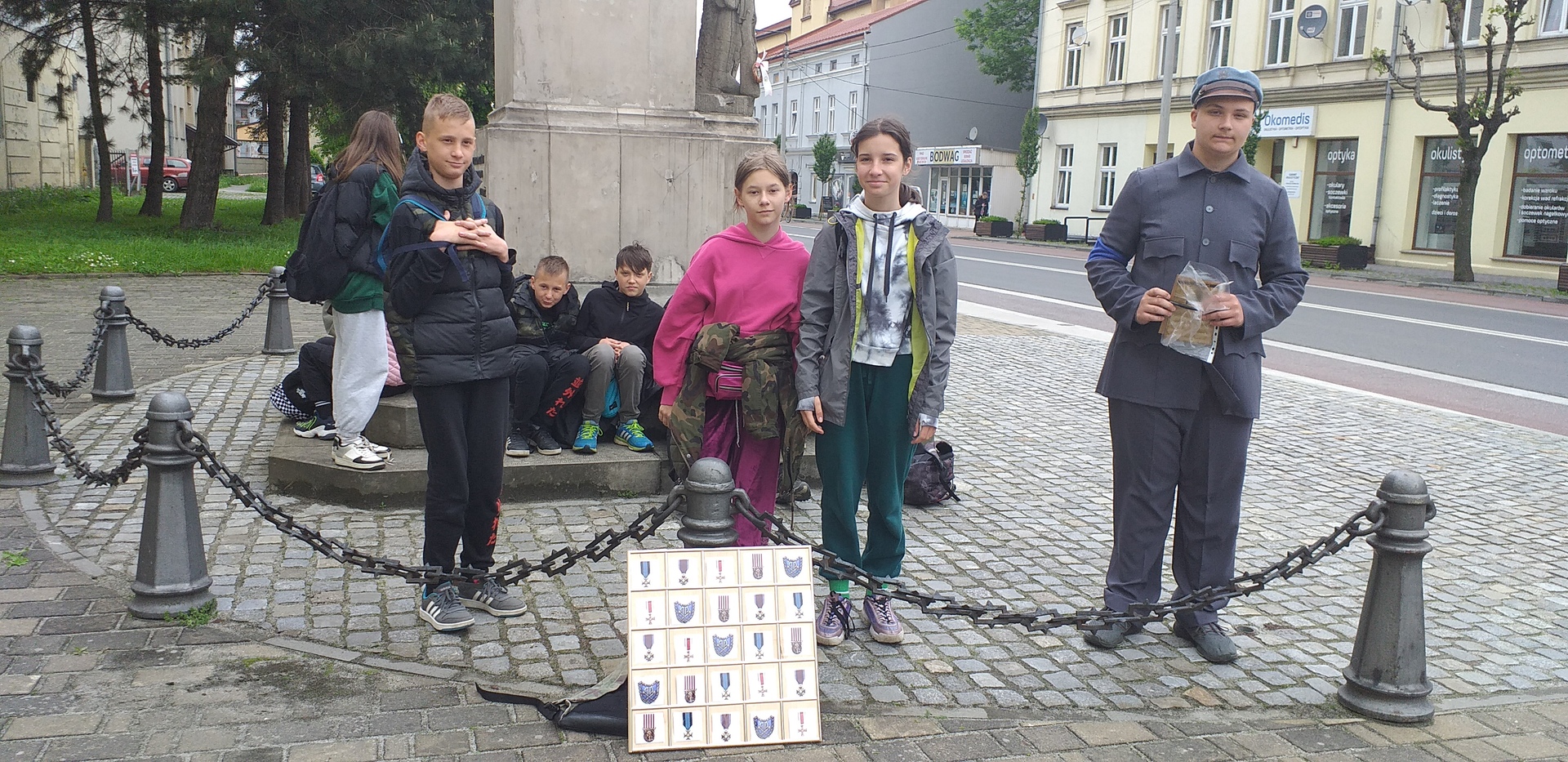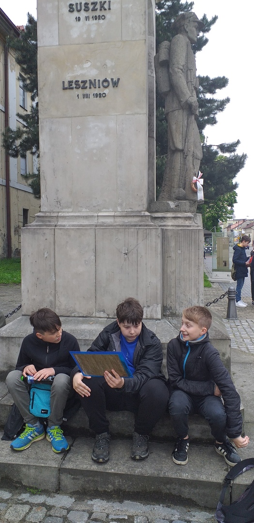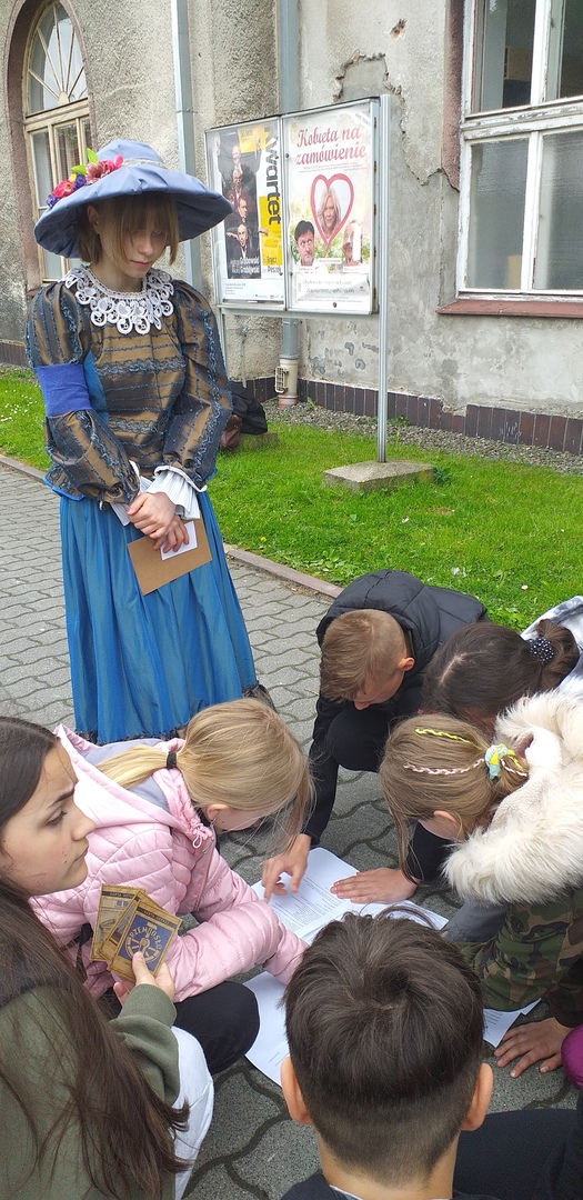 19 maja uczniowie klasy VI z wychowawczynią wzięli udział w grze terenowej poświęconej Karolowi Wojtyle oraz Wadowicom z czasów jego dzieciństwa. Drużyna przeniosła się w czasie i spotkała z koleżankami i kolegami Karola, którzy potrzebowali pomocy z zadaniami domowymi, przygotowaniem sztuki teatralnej, zorganizowaniem meczu oraz uporządkowaniem odznaczeń wojskowych. Zadaniem szóstoklasistów było również uważne obserwowanie wadowickich ulic w celu znalezienia charakterystycznych detali architektonicznych oraz uzupełnienie kart z pytaniami dotyczącymi Karola i miasta jego dzieciństwa. Uczniowie musi wykazać się znajomością historii, matematyki, języka polskiego oraz umiejętnością logicznego myślenia i pracy zespołowej. Nasi szóstoklasiści poradzili sobie bardzo dobrze i świetnie się przy tym bawili.
