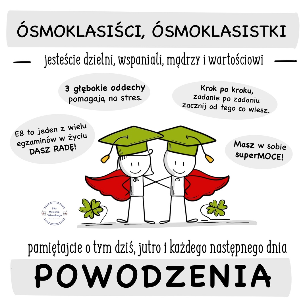 Mamy nadzieję, że wszyscy uczniowie napiszą egzamin na poziomie dla siebie zadowalającym i dzięki temu dostaną się do wybranej przez siebie szkoły!!!