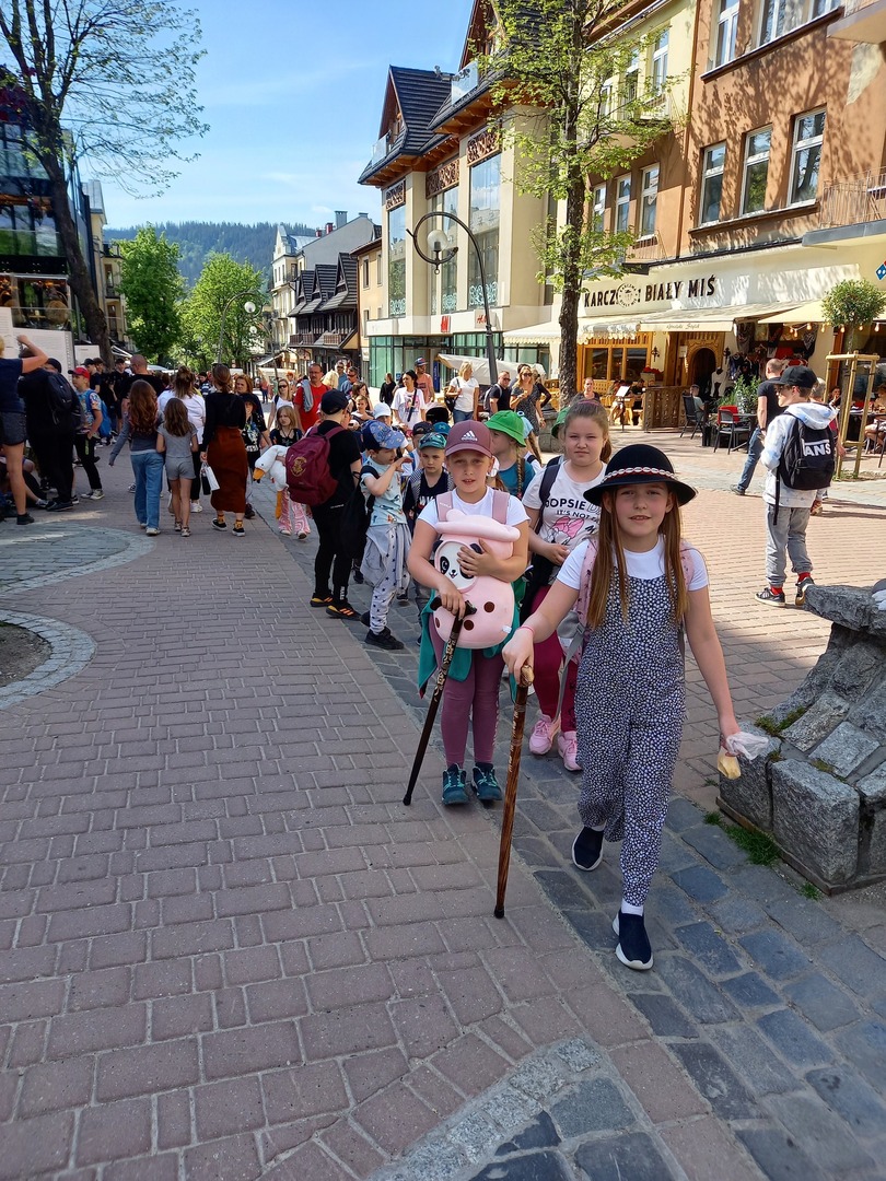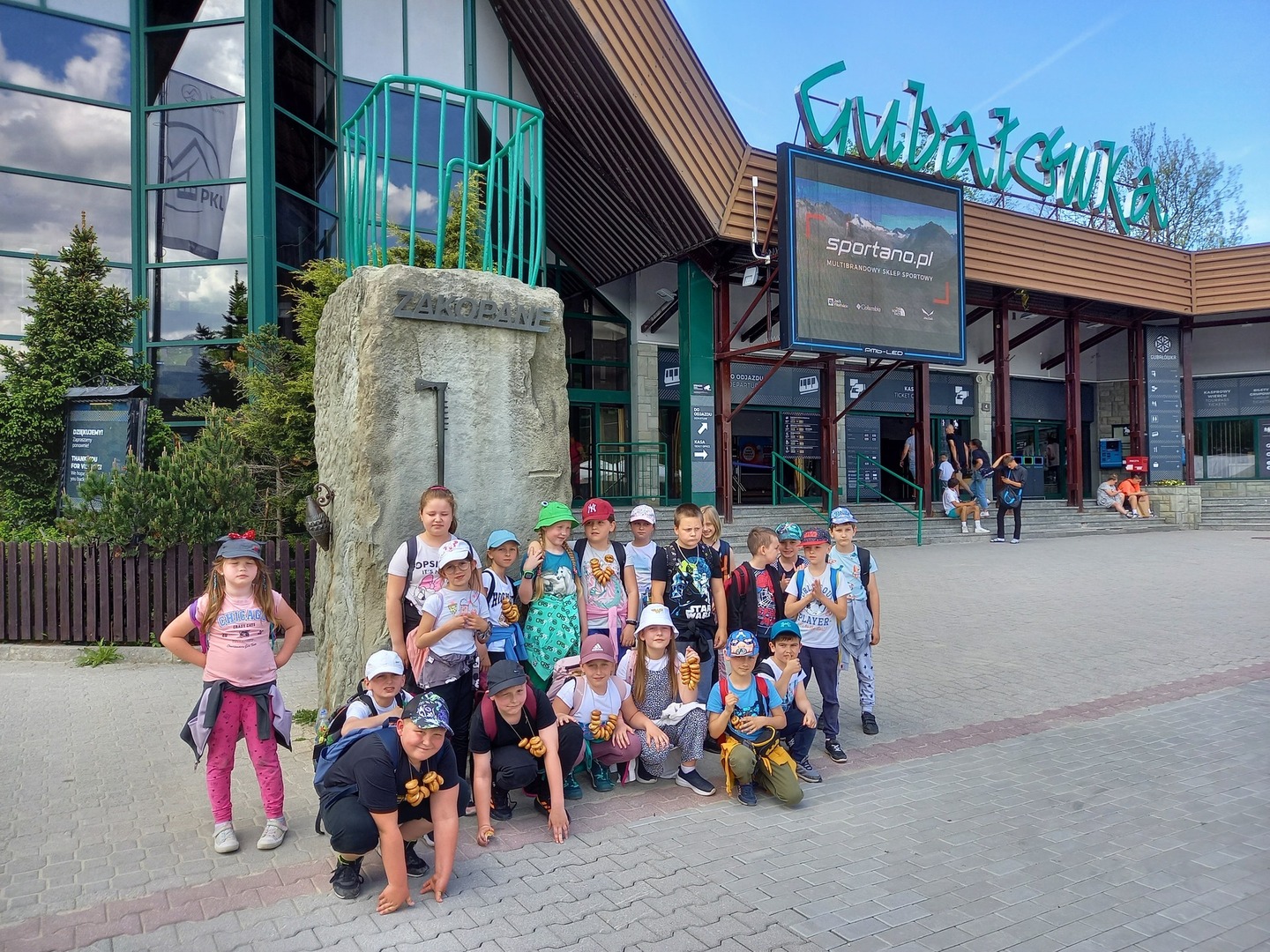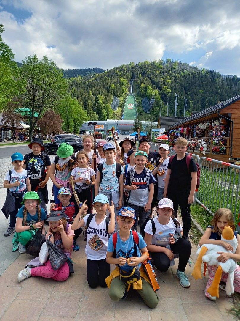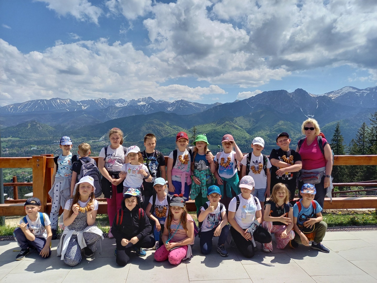 W tym roku klasa druga spędziła Dzień Dziecka w Zakopanem. Skoro świt wyjechaliśmy ze szkoły i pełni zapału i werwy spędziliśmy dzień w stolicy Tatr – Zakopanem. Na początek zaznajomiliśmy się z ornamentami podhalańskimi na warsztatach w Muzeum Tatrzańskim. Pomalowaliśmy tam piórniczki, które wzięliśmy ze sobą na pamiątkę. Wystawa w Muzeum bardzo nas zaciekawiła. Po wizycie w Muzeum zjedliśmy pyszny obiad w najstarszej karczmie w Zakopanem. Wszystko w mig znikało z talerzy – to chyba górskie powietrze tak nam służy! Kolejnym punktem programu był wyjazd kolejką na Gubałówkę, skąd roztacza się wspaniały widok na Tatry. Zachwytom nie było końca! Nie obyło się bez zakupów – pamiątki typowo góralskie i te mniej góralskie zabraliśmy ze sobą. Wśród nich nie zabrakło oscypków. Następnie udaliśmy się pod skocznie narciarskie, po drodze mijają siedzibę TOPR. Po krótkim odpoczynku udaliśmy się w drogę powrotną do domu. Wycieczka była pełna wrażeń i niezapomnianych przeżyć, wspaniałe widoki wynagrodziły trudy długiej podróży. Na pewno nie raz jeszcze wrócimy do Zakopanego!