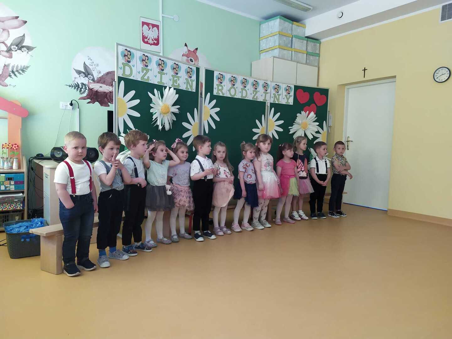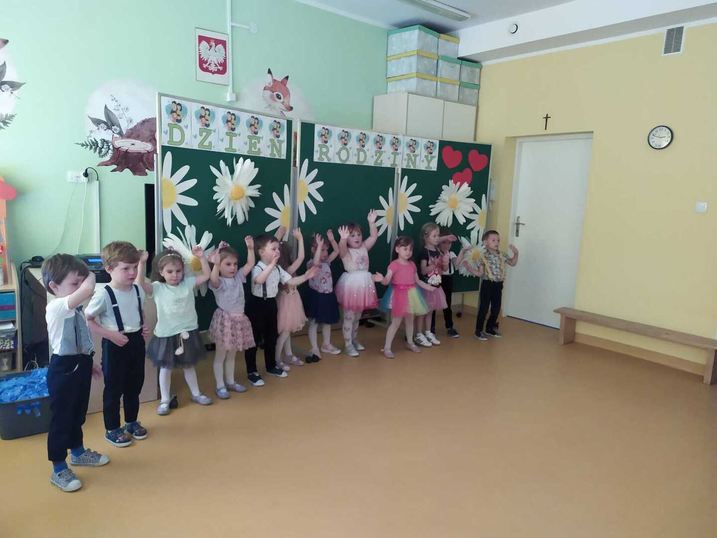 31maja najmłodsza grupa przedszkolaków „Jeżyki” zaprosiła swoich rodziców na występ przygotowany z okazji Święta Rodziny. Dzieci przedstawiły wiersze, zaśpiewały piosenki i zatańczyły tańce. Na koniec programu artystycznego, maluchy wręczyły rodzicom przygotowane prezenty.