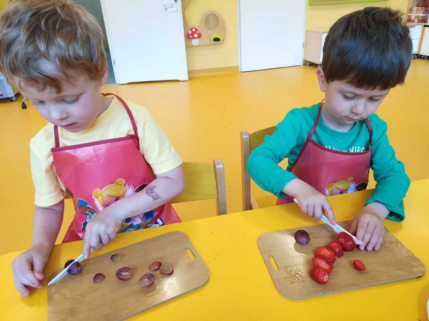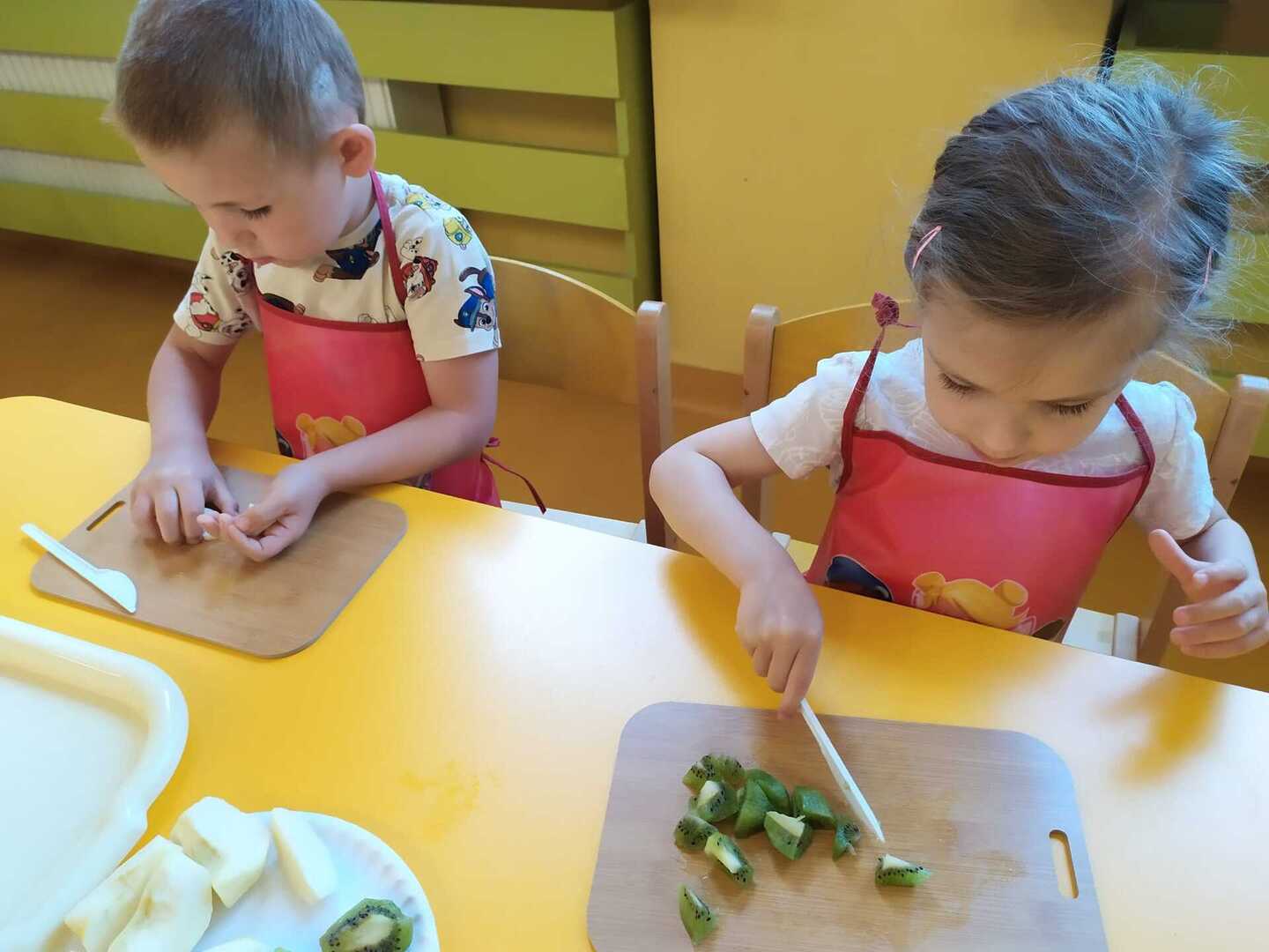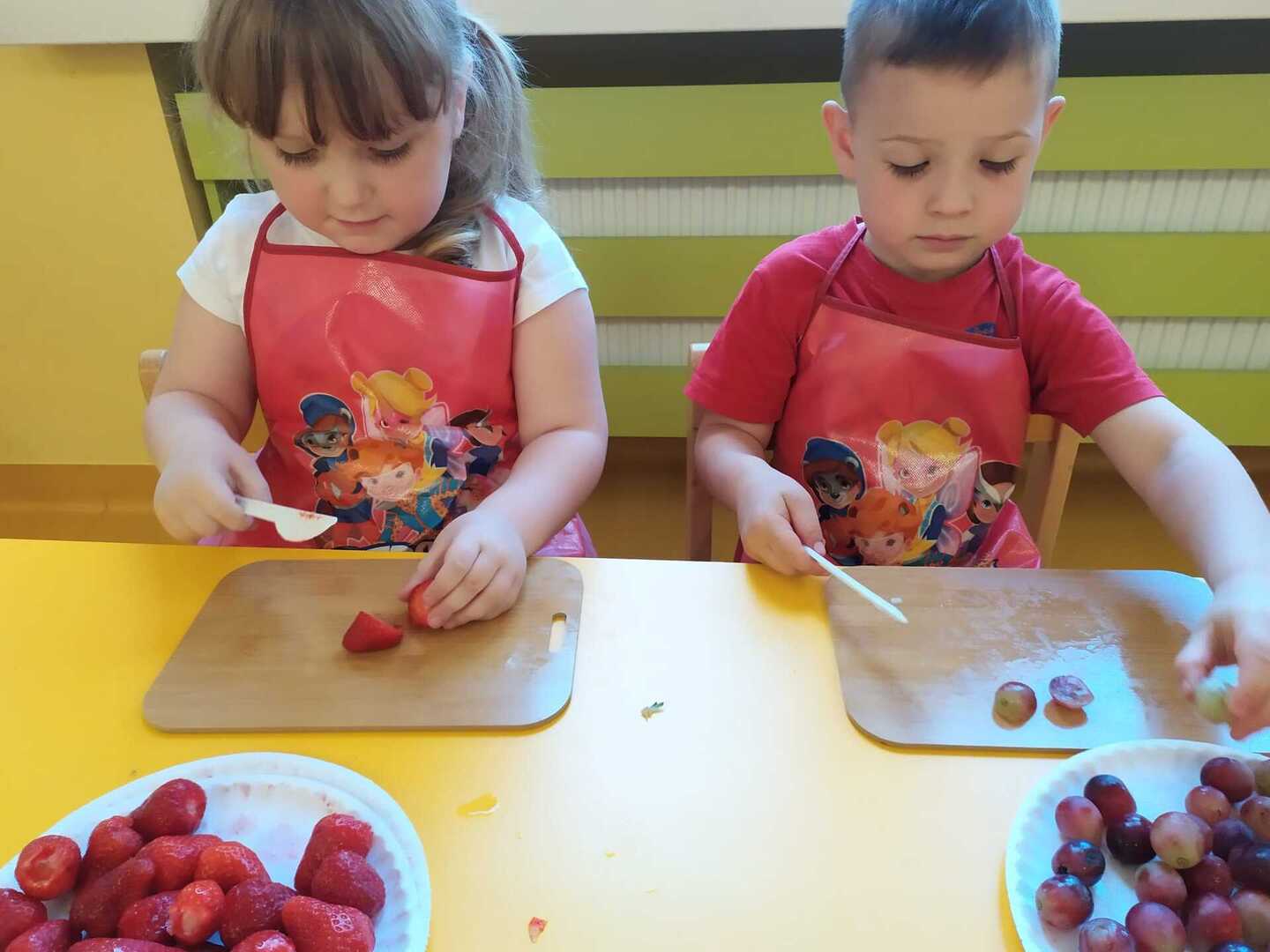 W Dniu Dziecka nasze pociechy samodzielnie wykonały sałatkę owocową.