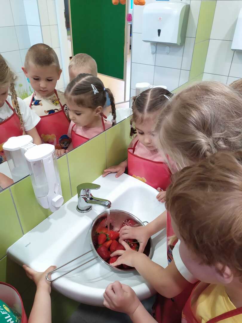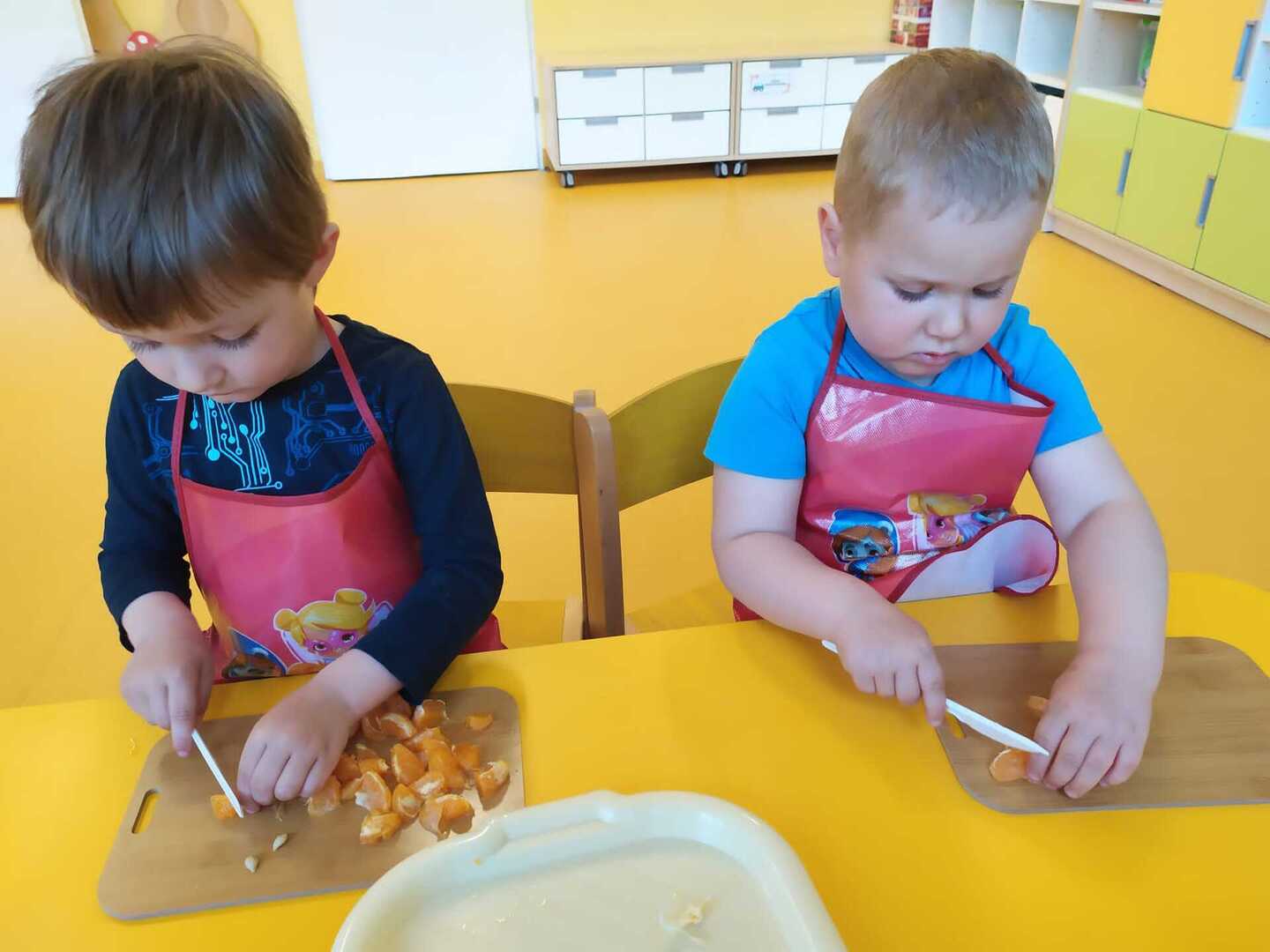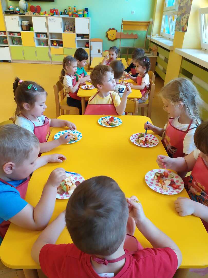 W Dniu Dziecka nasze pociechy samodzielnie wykonały sałatkę owocową.