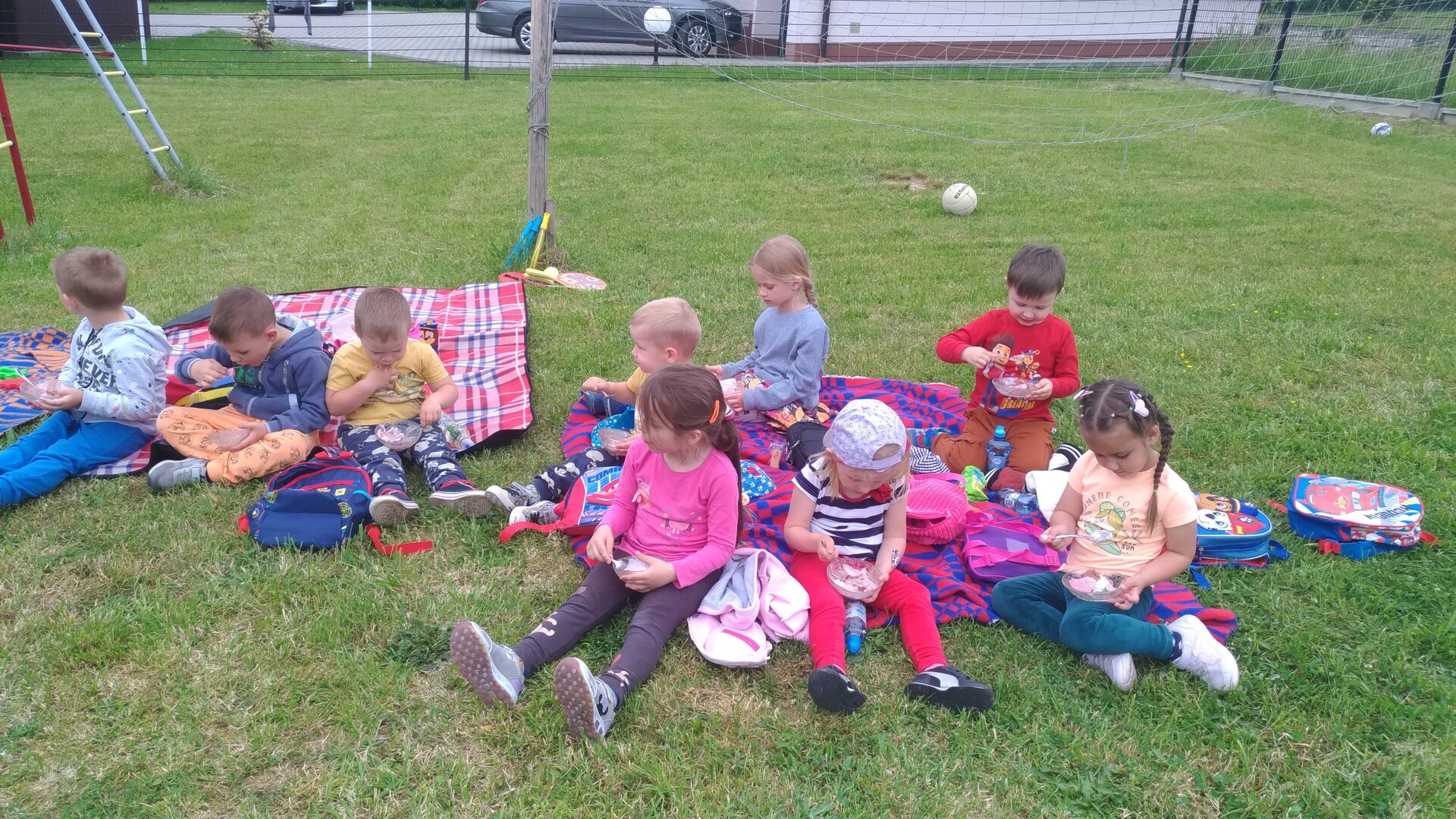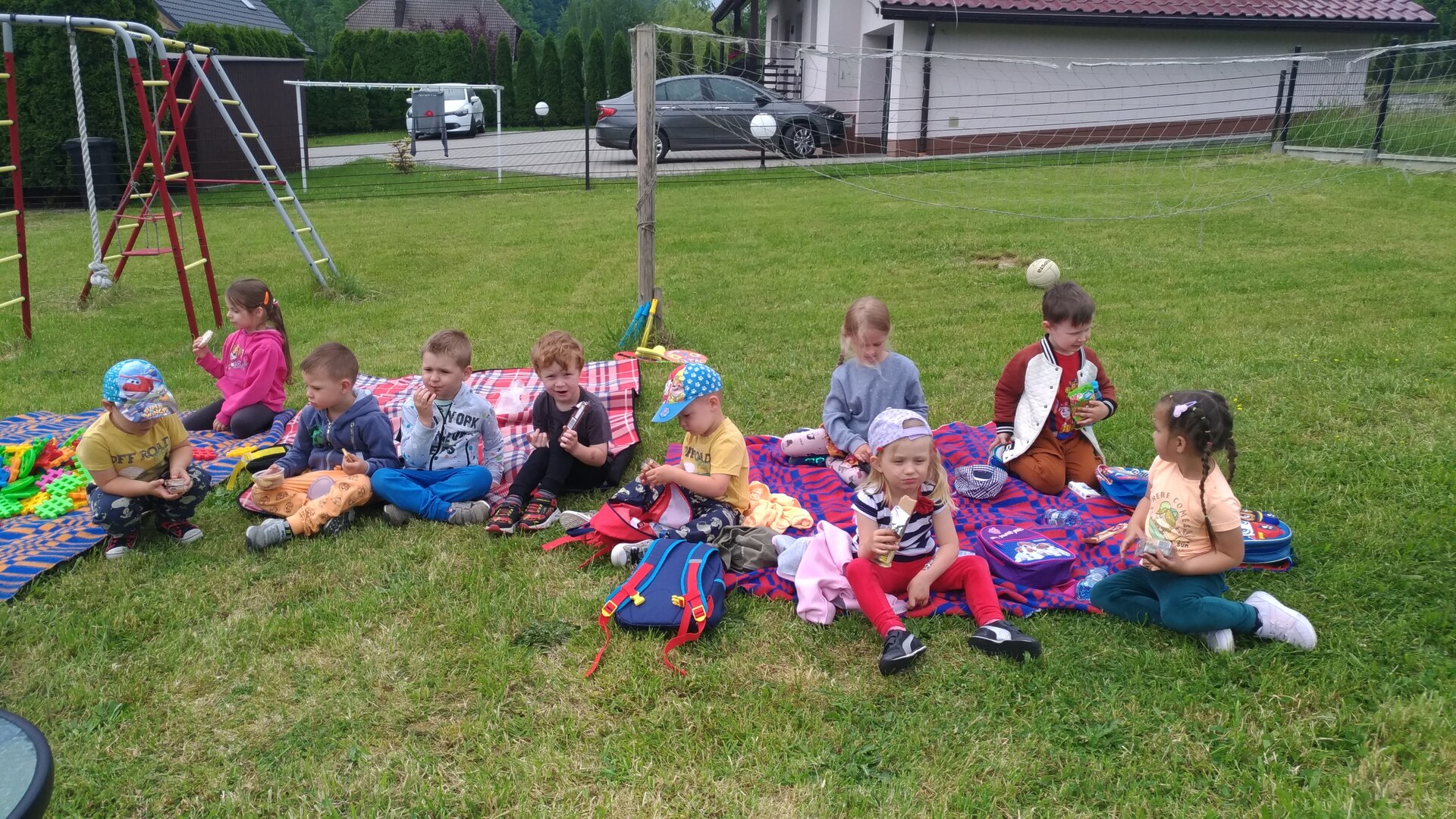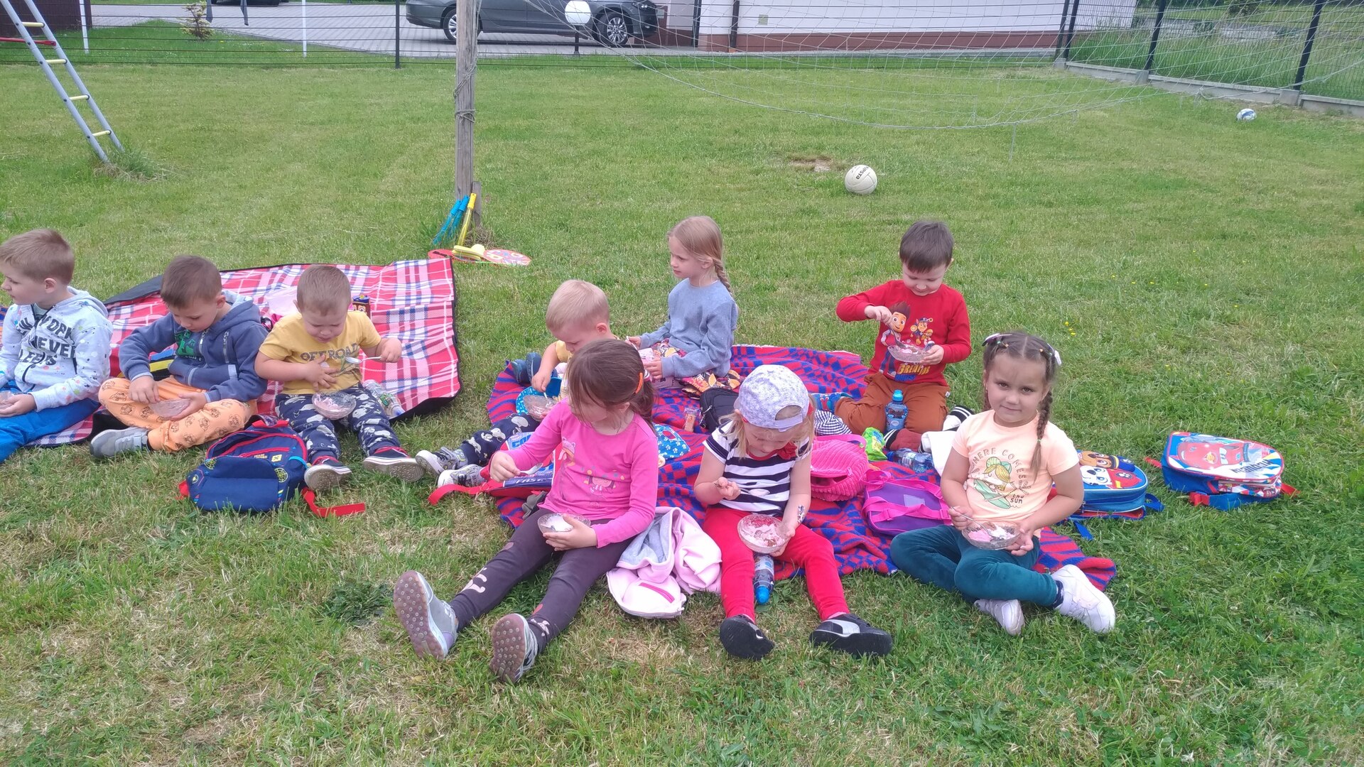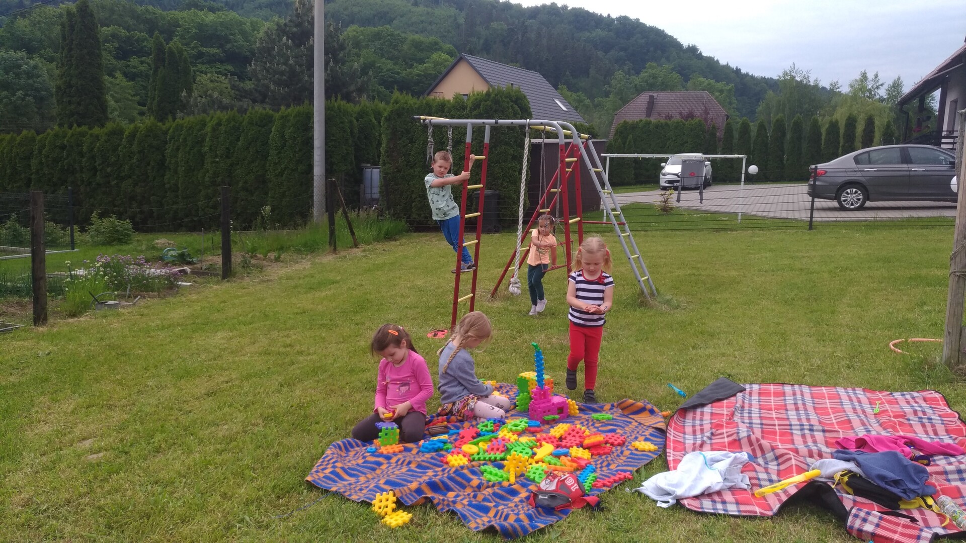 Z powodu dużej nieobecności przedszkolaków, nie odbyła się zaplanowana wycieczka do Mini Zoo. Dzięki uprzejmości i gościnności Pani Reni i jej rodziców, mogliśmy spędzić super czas w jej domowym ogrodzie.