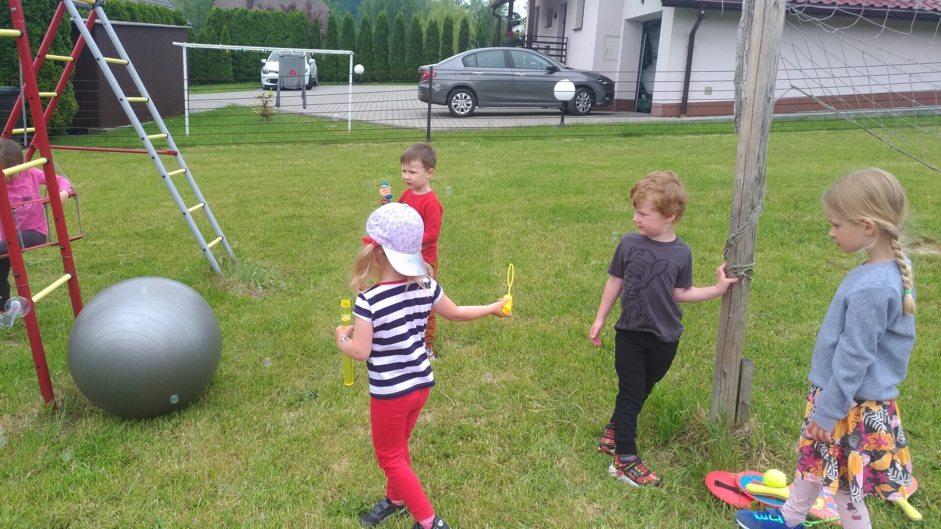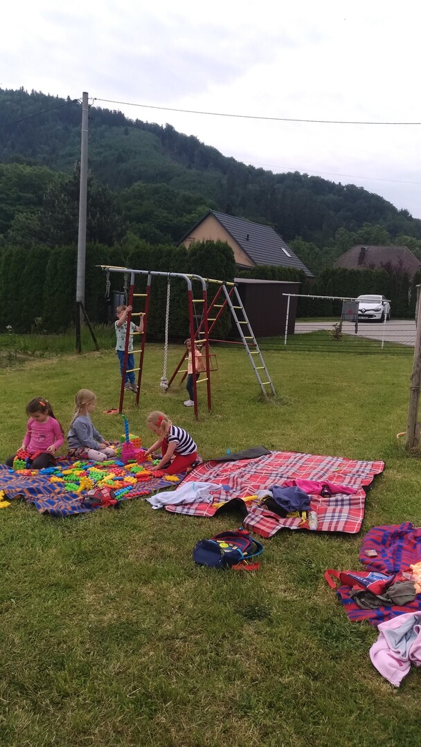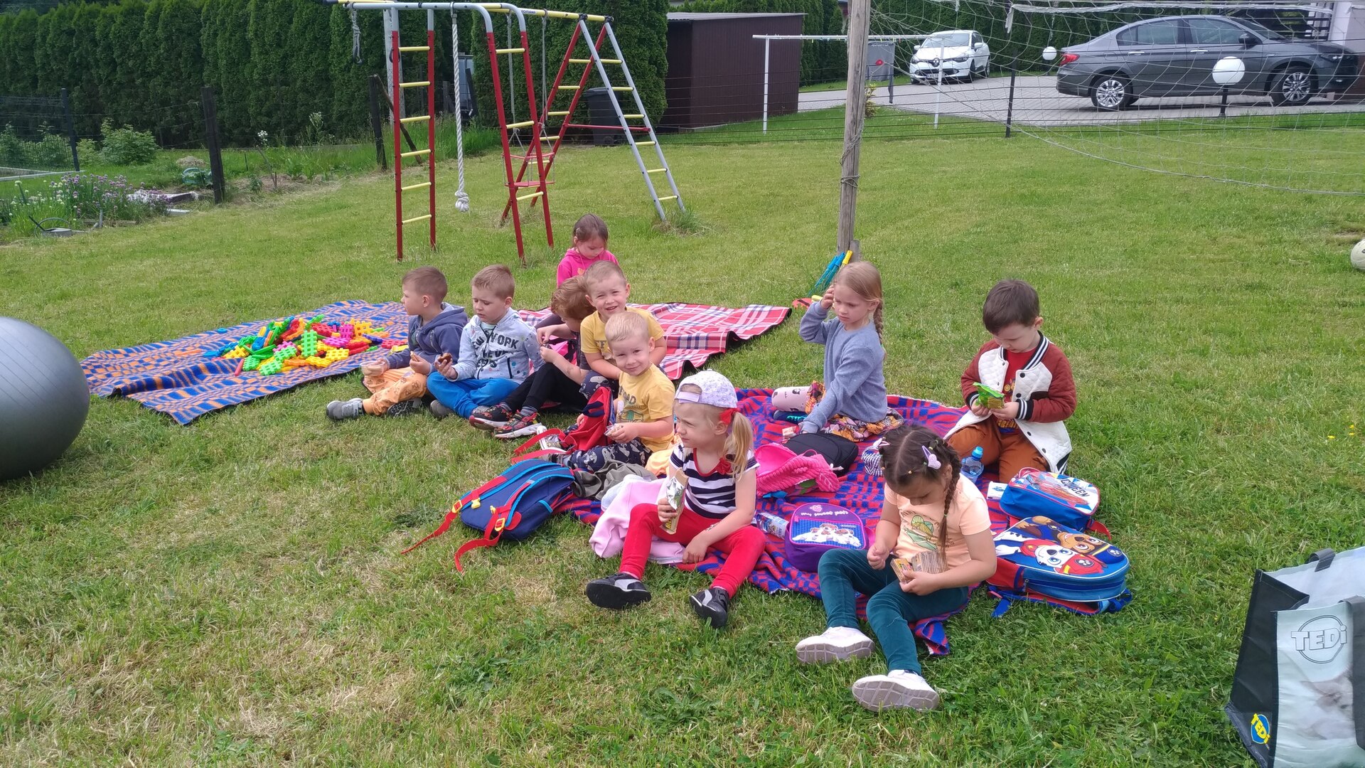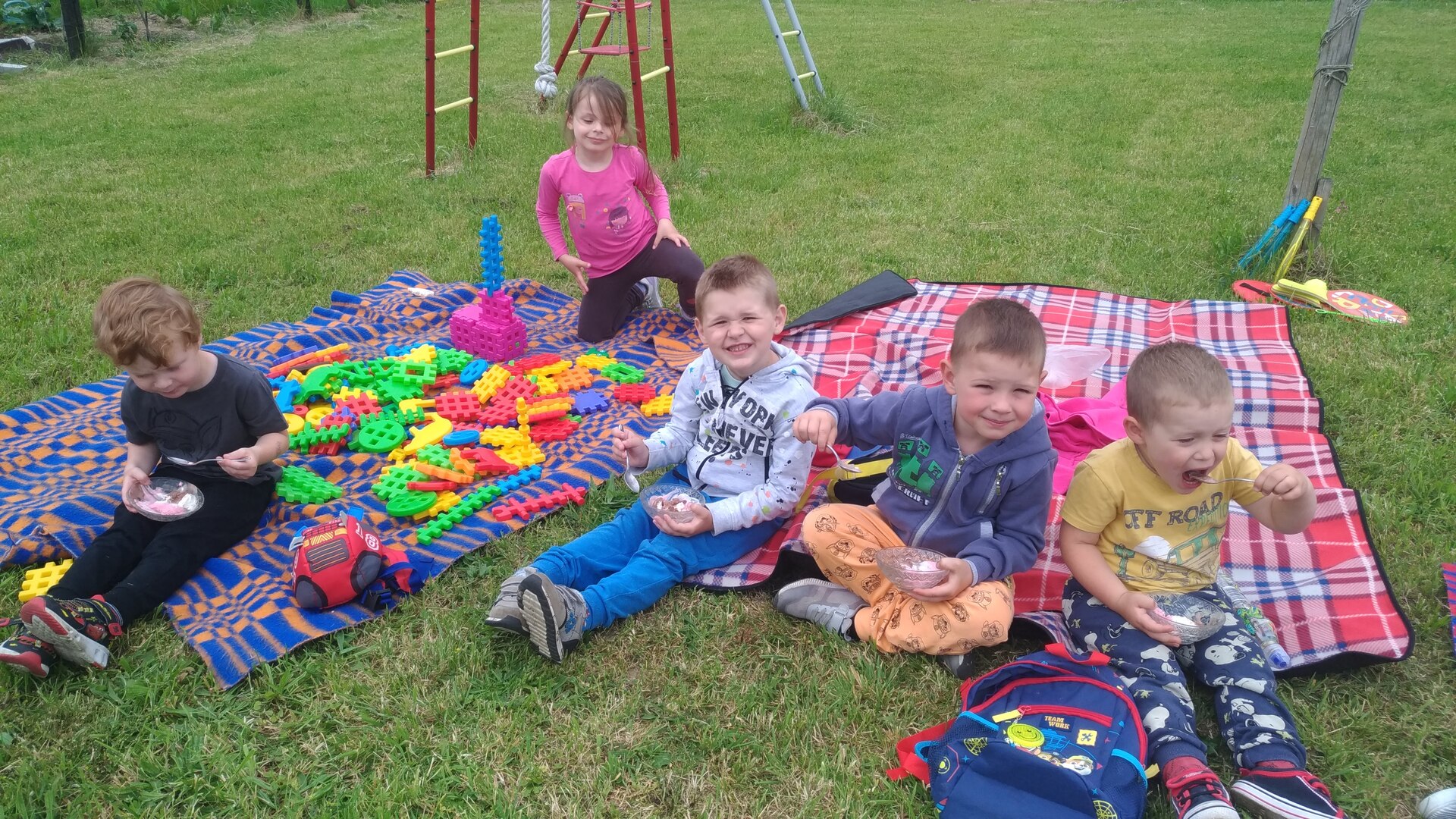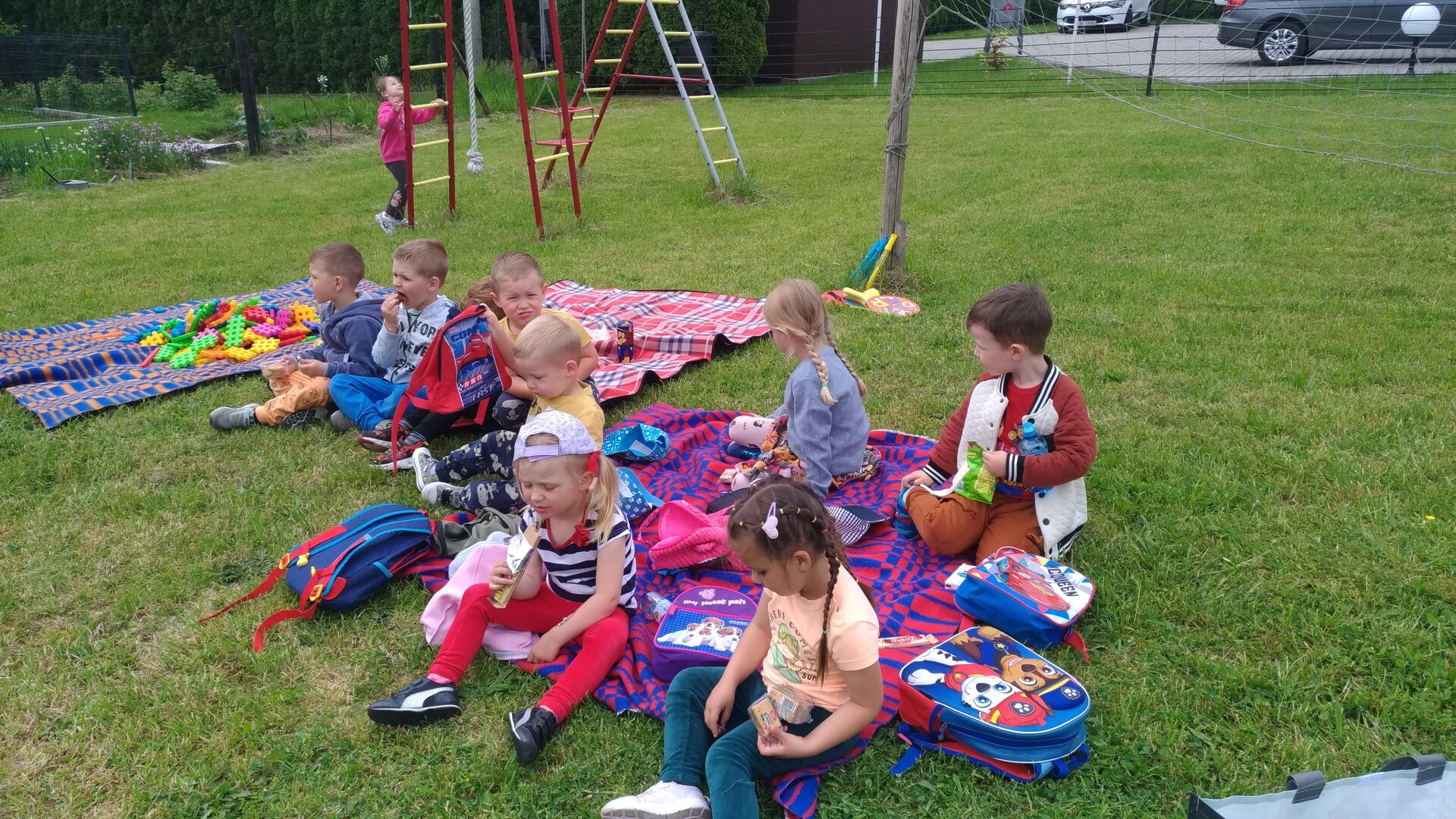 Z powodu dużej nieobecności przedszkolaków, nie odbyła się zaplanowana wycieczka do Mini Zoo. Dzięki uprzejmości i gościnności Pani Reni i jej rodziców, mogliśmy spędzić super czas w jej domowym ogrodzie.