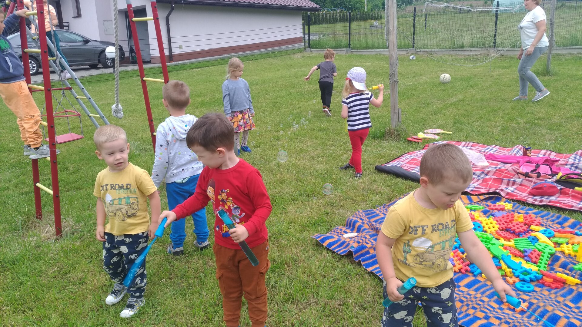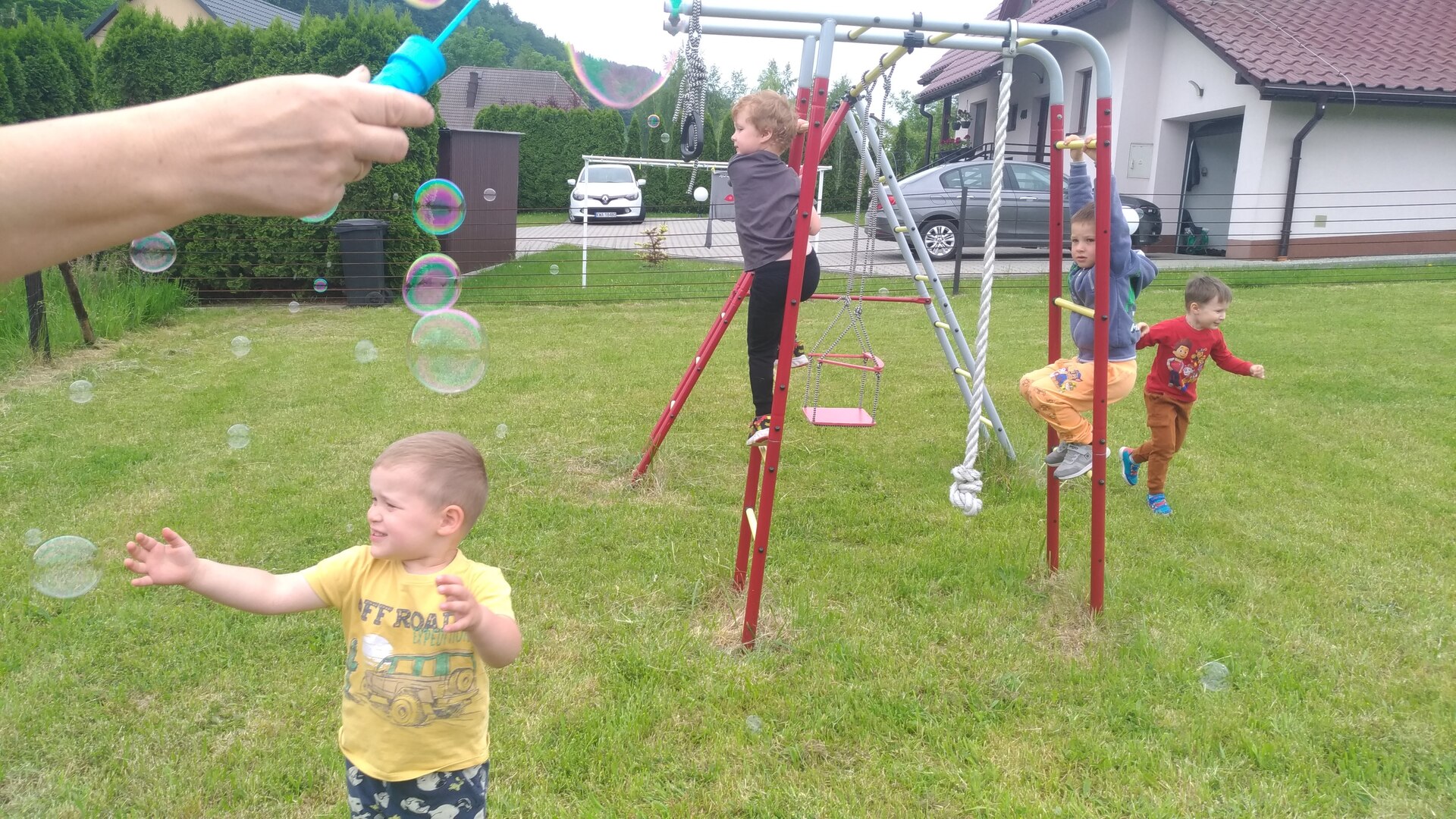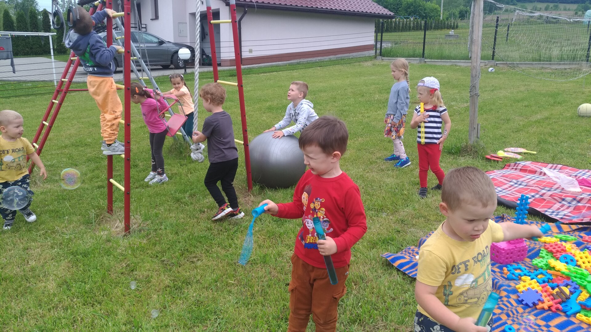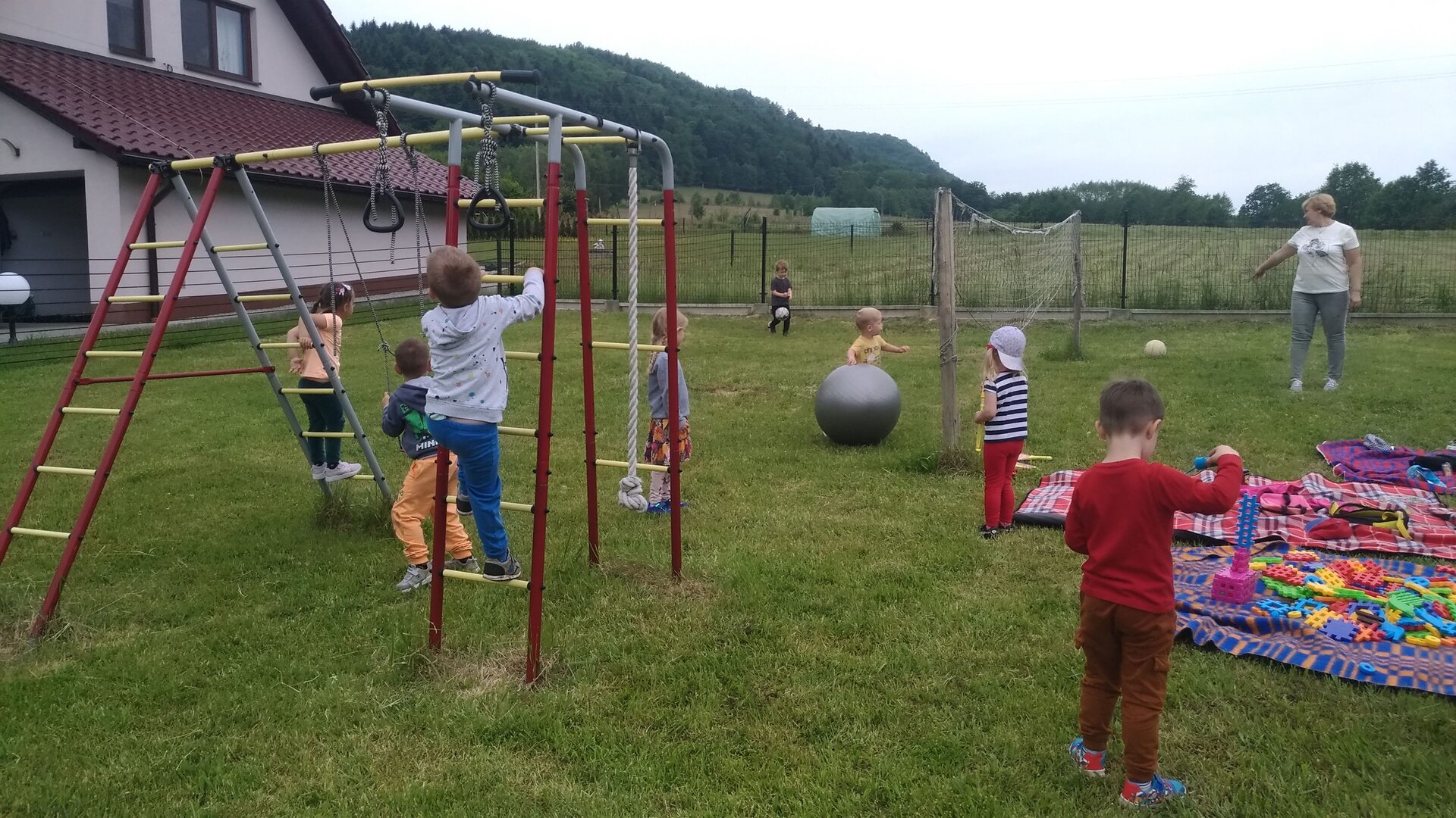Z powodu dużej nieobecności przedszkolaków, nie odbyła się zaplanowana wycieczka do Mini Zoo. Dzięki uprzejmości i gościnności Pani Reni i jej rodziców, mogliśmy spędzić super czas w jej domowym ogrodzie.