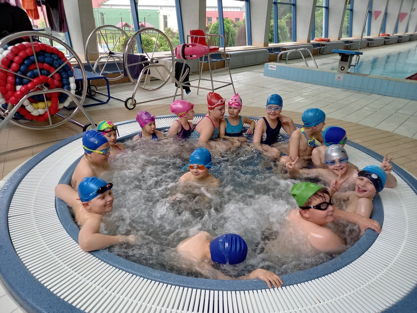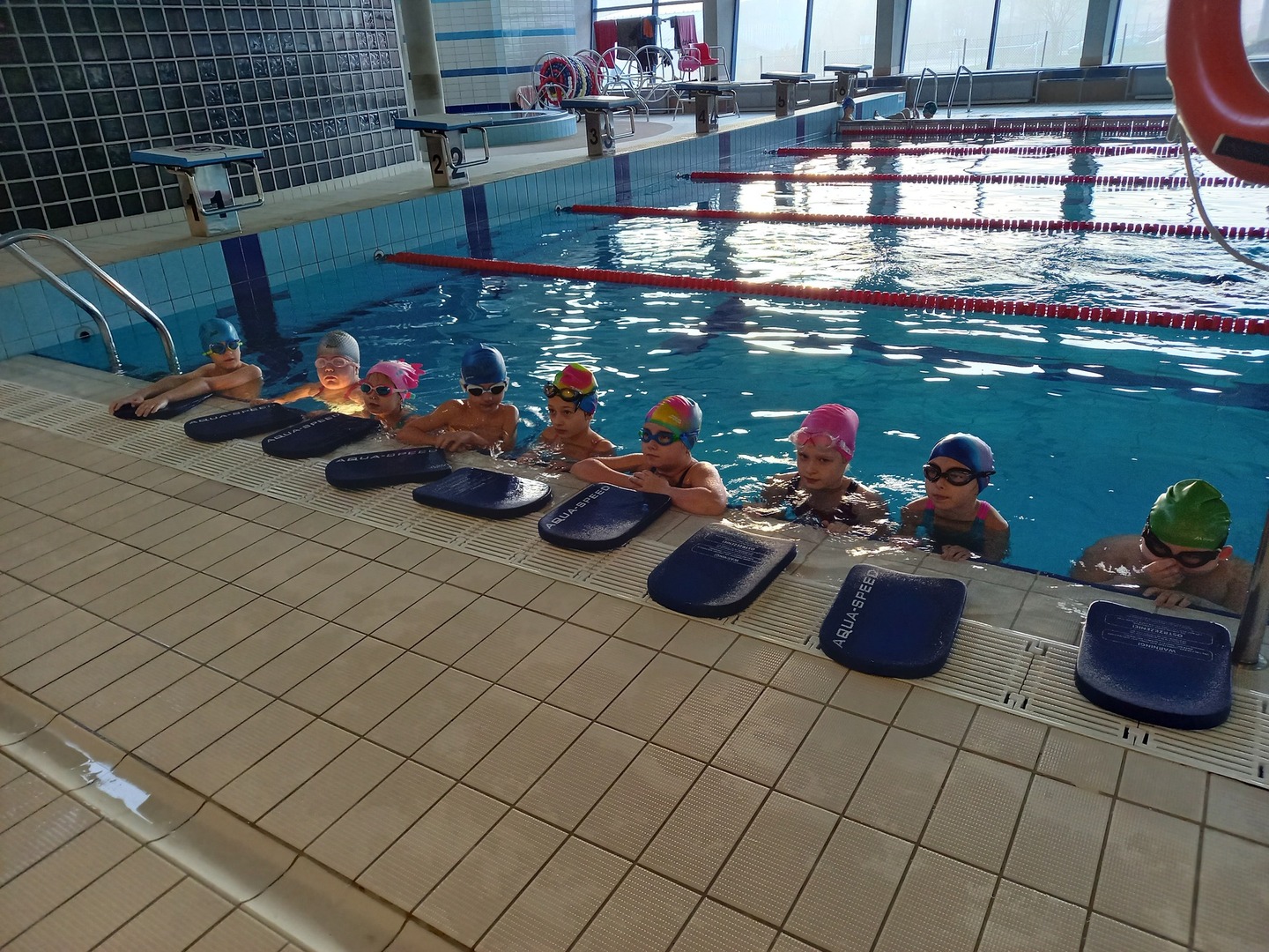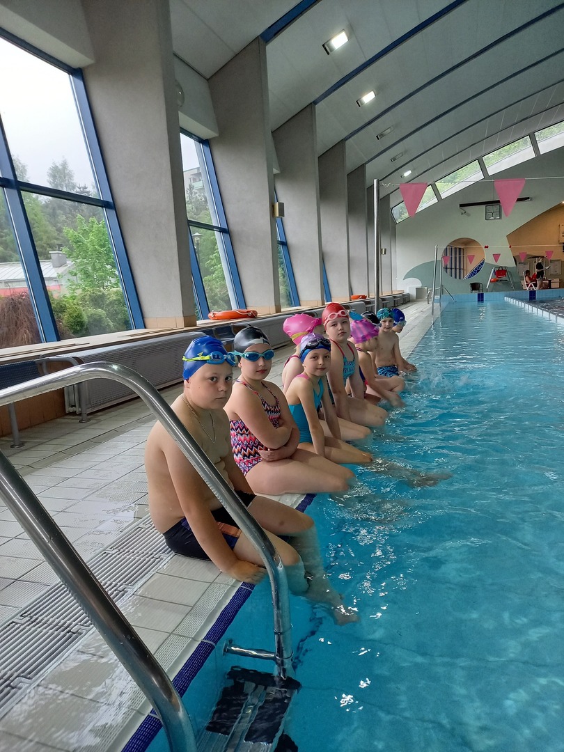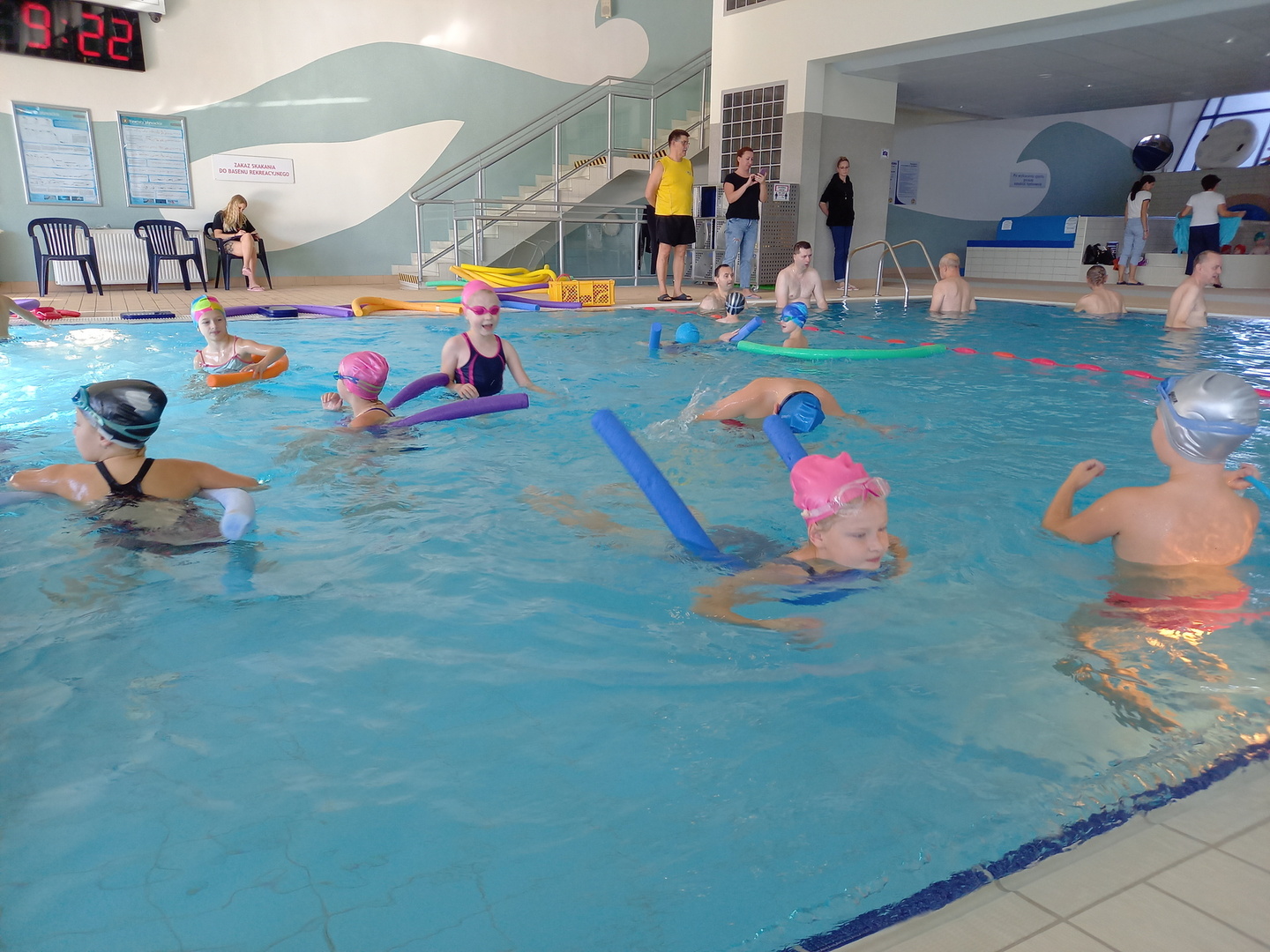 Klasa druga przez cały rok szkolny dwa razy w tygodniu jeździła do Wadowic na basen „Delfin” i brała udział w nauce pływania. Początki nie były proste. Woda dla niektórych okazała się dużym wyzwaniem. Instruktorzy, pani Monika i pan Krzysztof okazali się jednak wspaniałymi nauczycielami – strach okazał się niepotrzebny. Z czasem dzieciom szło coraz lepiej, z małego basenu wskoczyli na głęboką wodę i pływali jak ryby. Nauka zakończyła się egzaminem. Wszyscy którzy do niego podeszli zdali, aż 18 osób zdobyło kartę pływacką! Wszystkim uczniom gratulujemy!