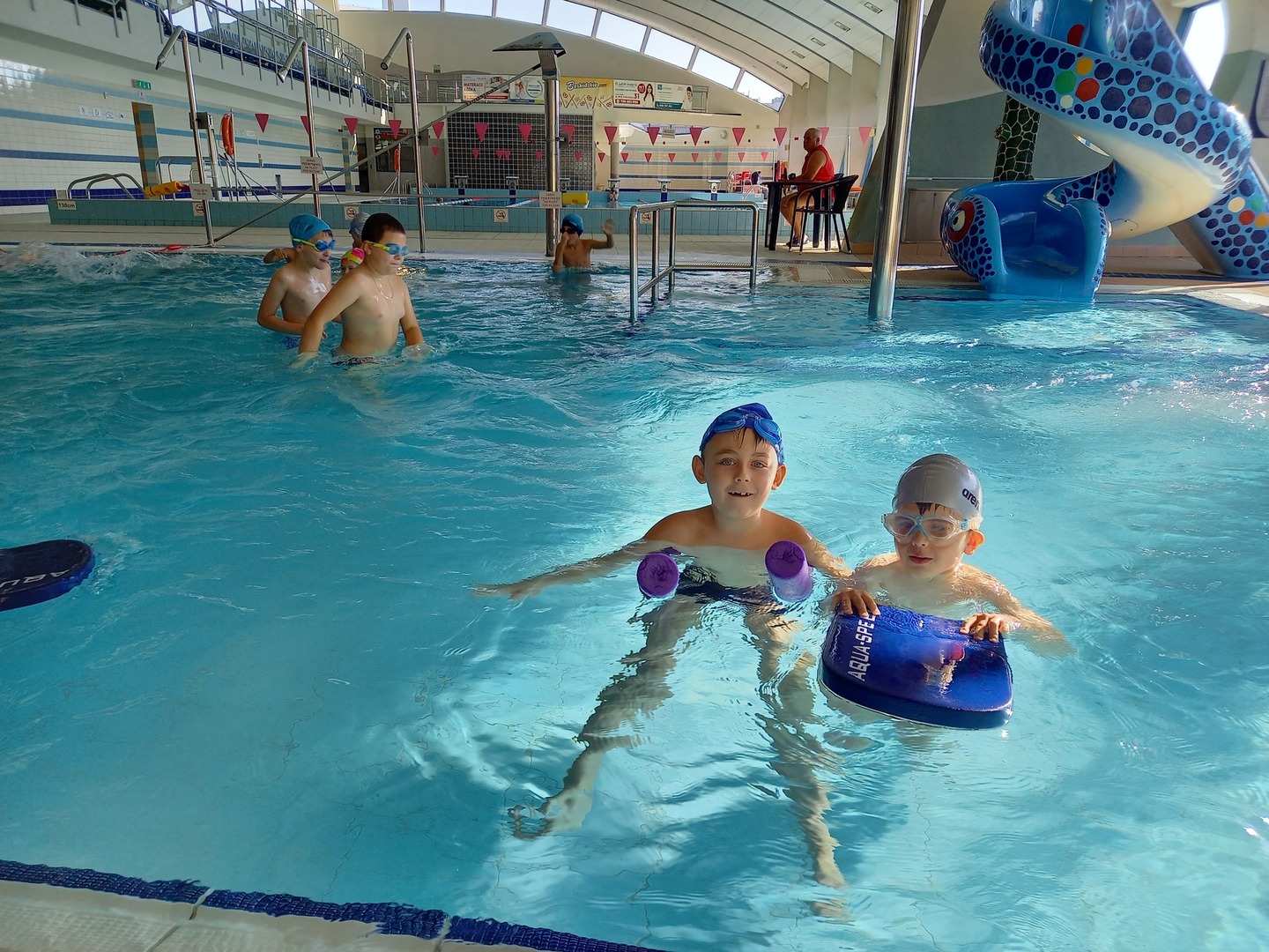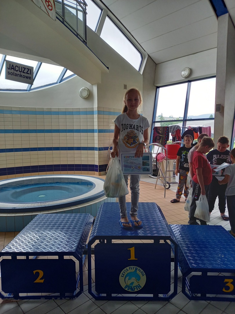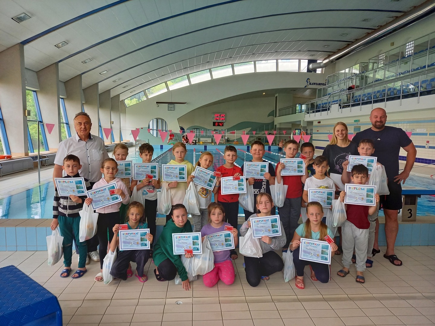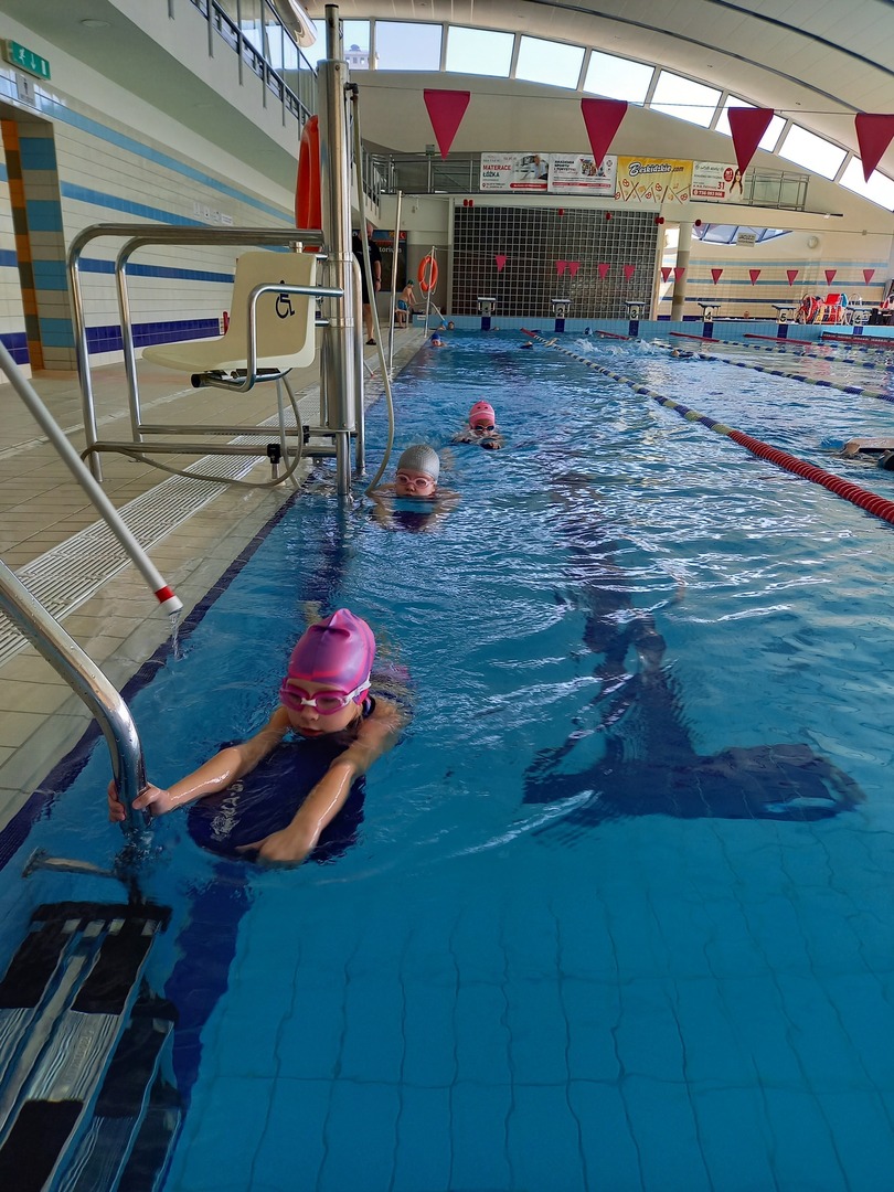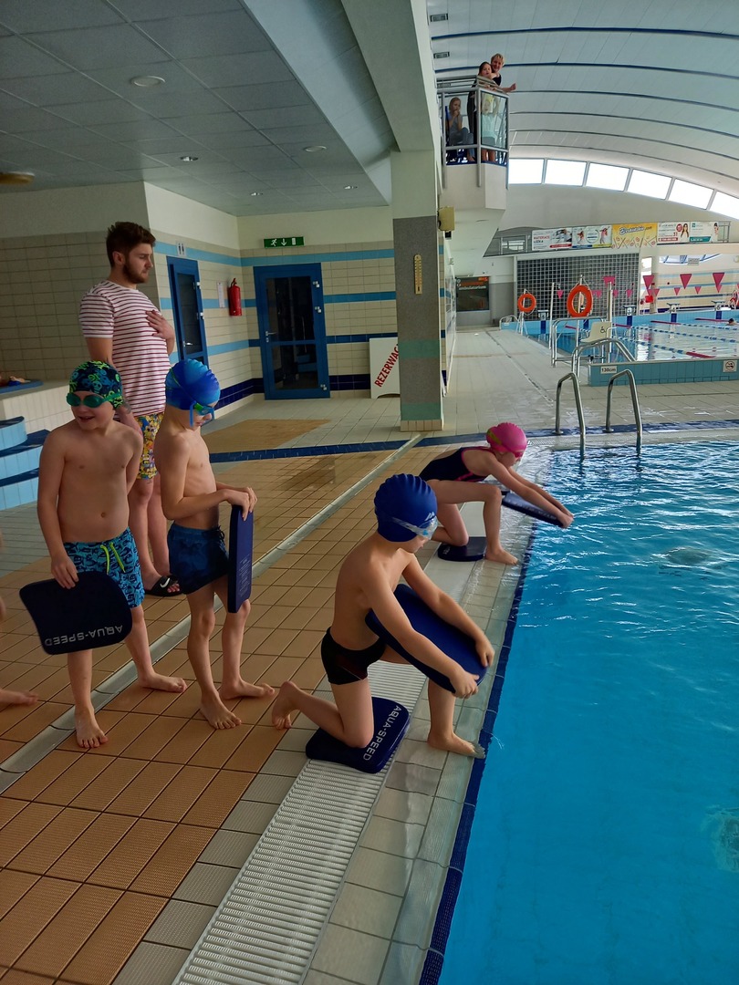 Klasa druga przez cały rok szkolny dwa razy w tygodniu jeździła do Wadowic na basen „Delfin” i brała udział w nauce pływania. Początki nie były proste. Woda dla niektórych okazała się dużym wyzwaniem. Instruktorzy, pani Monika i pan Krzysztof okazali się jednak wspaniałymi nauczycielami – strach okazał się niepotrzebny. Z czasem dzieciom szło coraz lepiej, z małego basenu wskoczyli na głęboką wodę i pływali jak ryby. Nauka zakończyła się egzaminem. Wszyscy którzy do niego podeszli zdali, aż 18 osób zdobyło kartę pływacką! Wszystkim uczniom gratulujemy!