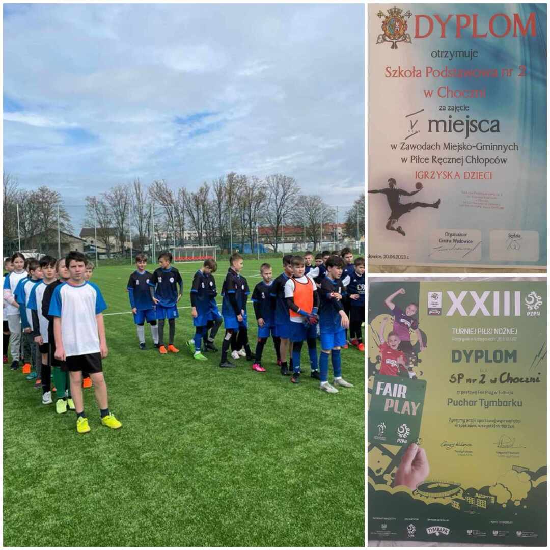 Rok szkolny 2022/2023 dobiegł końca, więc czas na podsumowania. Po czasie pandemii powoli wracamy do rozgrywek sportowych. W tym roku nasza szkoła wzięła udział w Gminnych Zawodach w piłce nożnej chłopców kl. IV - VI (zajęlismy 5 miejsce), w Gminnych Zawodach w piłce ręcznej kl. IV - VI (5 miejsce) oraz w turnieju piłki nożnej chłopców U 10 i U 12: Z podwórka na stadion - zawody o puchar Tymbarku. Brawo dla chłopaków za odwagę i determinacje....w przyszłym roku będzie jeszcze lepiej. Gratulacje!!!