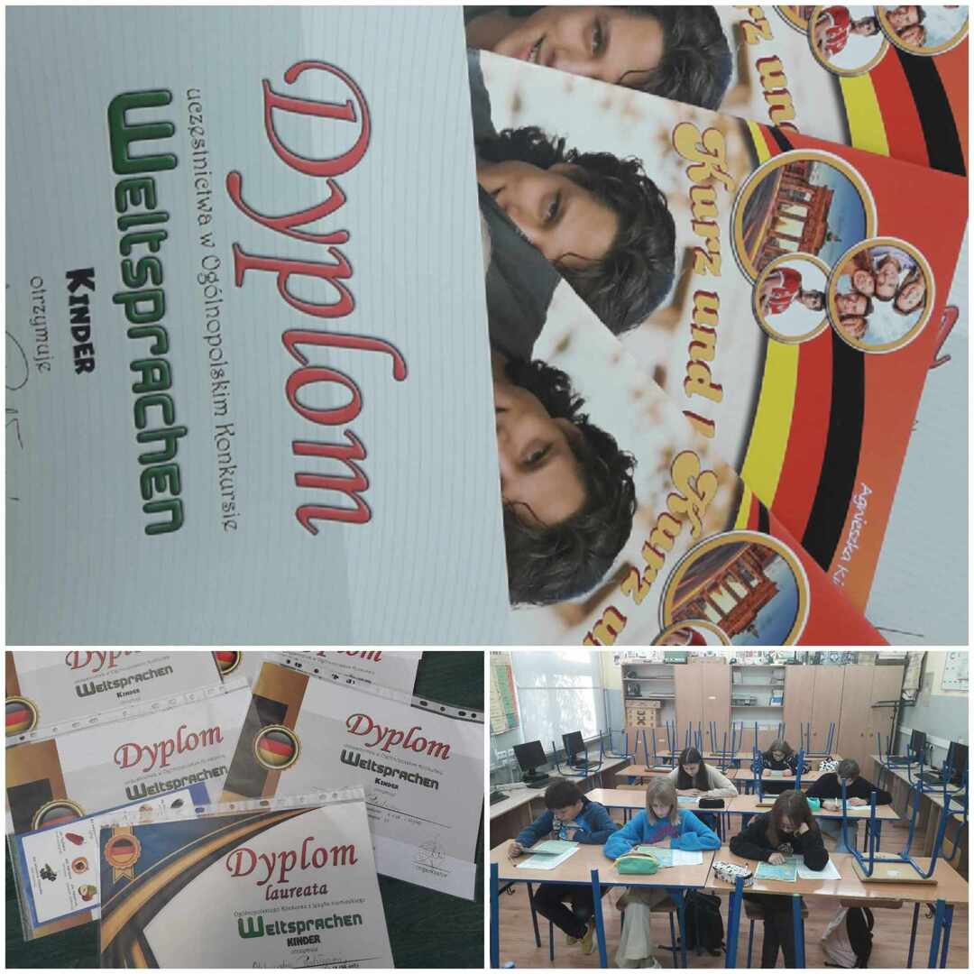 W tym roku szkolnym miłośnicy języka niemieckiego z klasy ósmej wzięli udział w 3 edycjach ogólnopolskiego konkursu języka niemieckiego Weltsprachen Kinder. Ośmiu śmiałków zmierzyło się z testami zawierającymi 18 pytań o różnym stopniu trudności. Gratuluję osiągniętych wysokich wyników. Już dziś zapraszam klasę siódmą na kolejne edycje konkursu. Gratulacje!!!