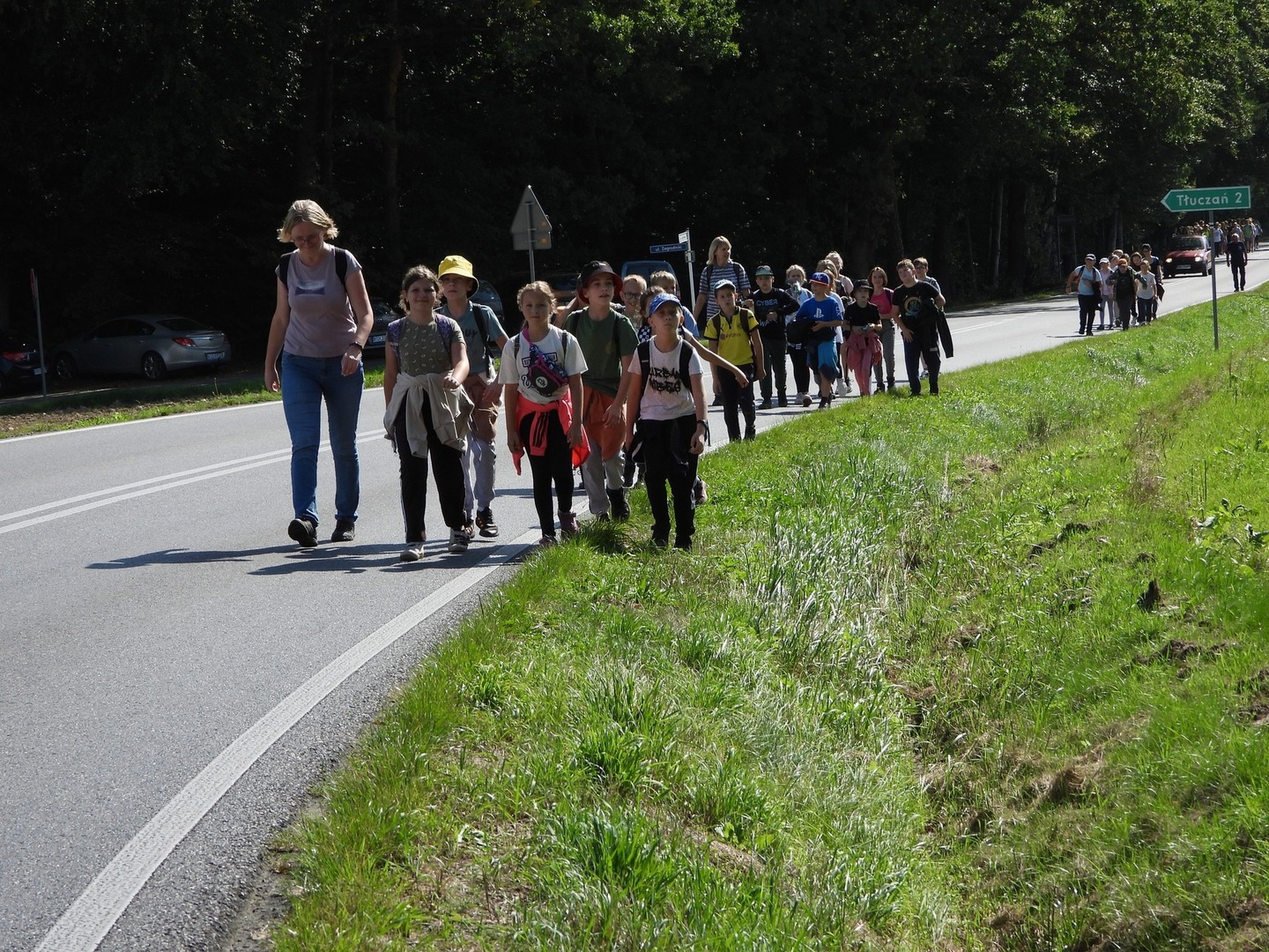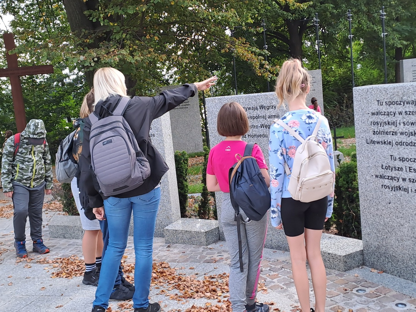 W piątek 15 września klasy IV i V wraz z opiekunami p. Renatą Ryś, p. Danutą Czaplą i p. Dorotą Wojewodzic wzięły udział w XXXIII Rajdzie Pamięci Lotników „HELL’S ANGEL” w Zygodowicach. Nasz rajd rozpoczęliśmy od cmentarza wojskowego w Wadowicach, na którym spoczywają żołnierze miejscowego garnizonu wojskowego z okresu zaboru austriackiego, jeńcy wojenni z wojny polsko-bolszewickiej 1919-1920, bohaterowie z czasu II wojny światowej i żołnierze Armii Czerwonej polegli w regionie wadowickim w styczniu 1945 r. Następnie swoje kroki skierowaliśmy w kierunku cmentarza żydowskiego, udało nam się wejść na jego teren i z bliska zobaczyć nagrobki, wykonane głównie z marmuru i piaskowca, które są ozdobione ornamentami i żydowskimi symbolami religijnymi. Dla wielu z nas był to pierwszy raz, gdy mogliśmy zobaczyć nagrobki z napisami w języku hebrajskim. Po krótkim pobycie na cmentarzach udaliśmy się w kierunku Zygodowic, aby pod pomnikiem złożyć kwiaty i oddać hołd 6 członkom załogi bombowca „Hell’s Angel”. Rajd odbywa się co roku w rocznicę bohaterskiej śmierci amerykańskich żołnierzy. Samolot, którym lecieli został trafiony przez obronę niemiecką, a maszyna eksplodowała nad Zygodowicami. W wyniku katastrofy zginął kapitan i 5 członków załogi. Na mecie rajdu zebrani uczestnicy (prawie 400 osób) wraz z chórem ze SP Witanowice odśpiewali pieśni patriotyczne. Było to przeżycie dla nas wszystkich.