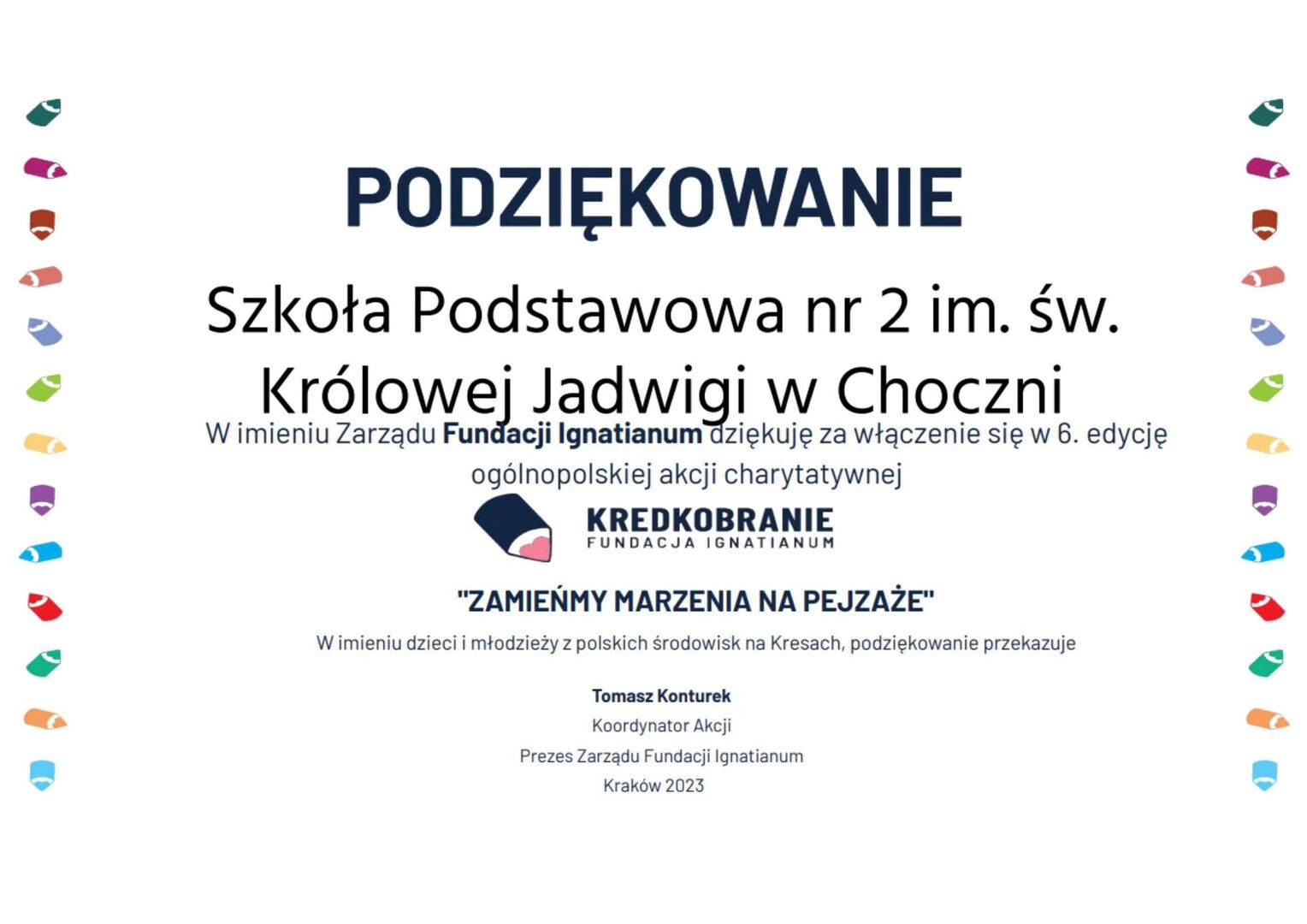 30 września zakończyła się na terenie naszej szkoły akcja zbierania darów dla dzieci na Kresach - Kredkobranie 2023. Wszystkim, którzy włączyli się do akcji bardzo serdecznie dziękujemy. Jesteście wspaniali ❤️❤️