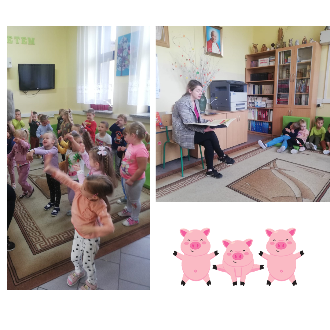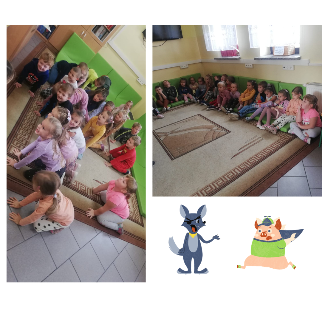W czwartek 19 października przedszkolaki z grupy „Wiewiórki” odwiedziły szkolną bibliotekę. Wysłuchały bajki pt. „Trzy świnki”. Później wspólnie odegrały scenki z przeczytanej opowieści, świetnie wcielając się w role świnek oraz groźnego wilka. Po przeczytaniu kolejnych bajek, m. in. o tęczy, wywiązała się ciekawa dyskusja o tym zjawisku pogodowym. Na koniec przedszkolaki zapoznały się zasadami wypożyczania książek i mogły pooglądać biblioteczny księgozbiór.