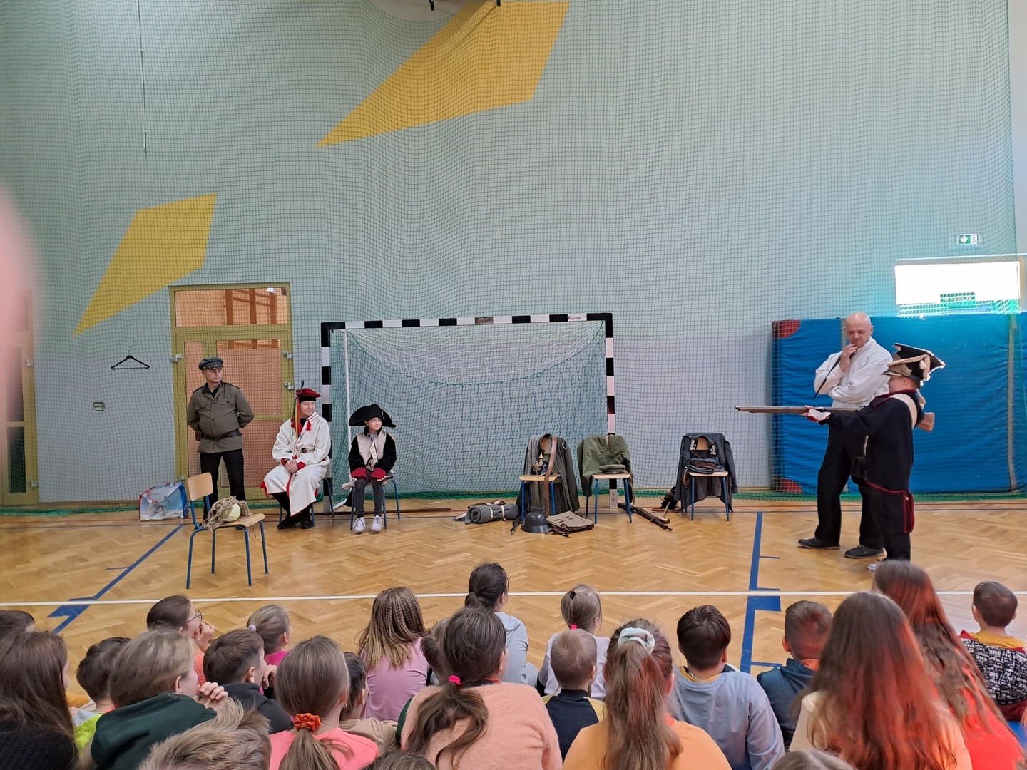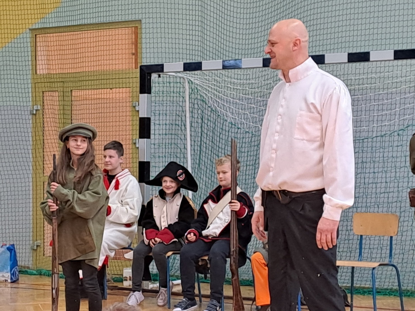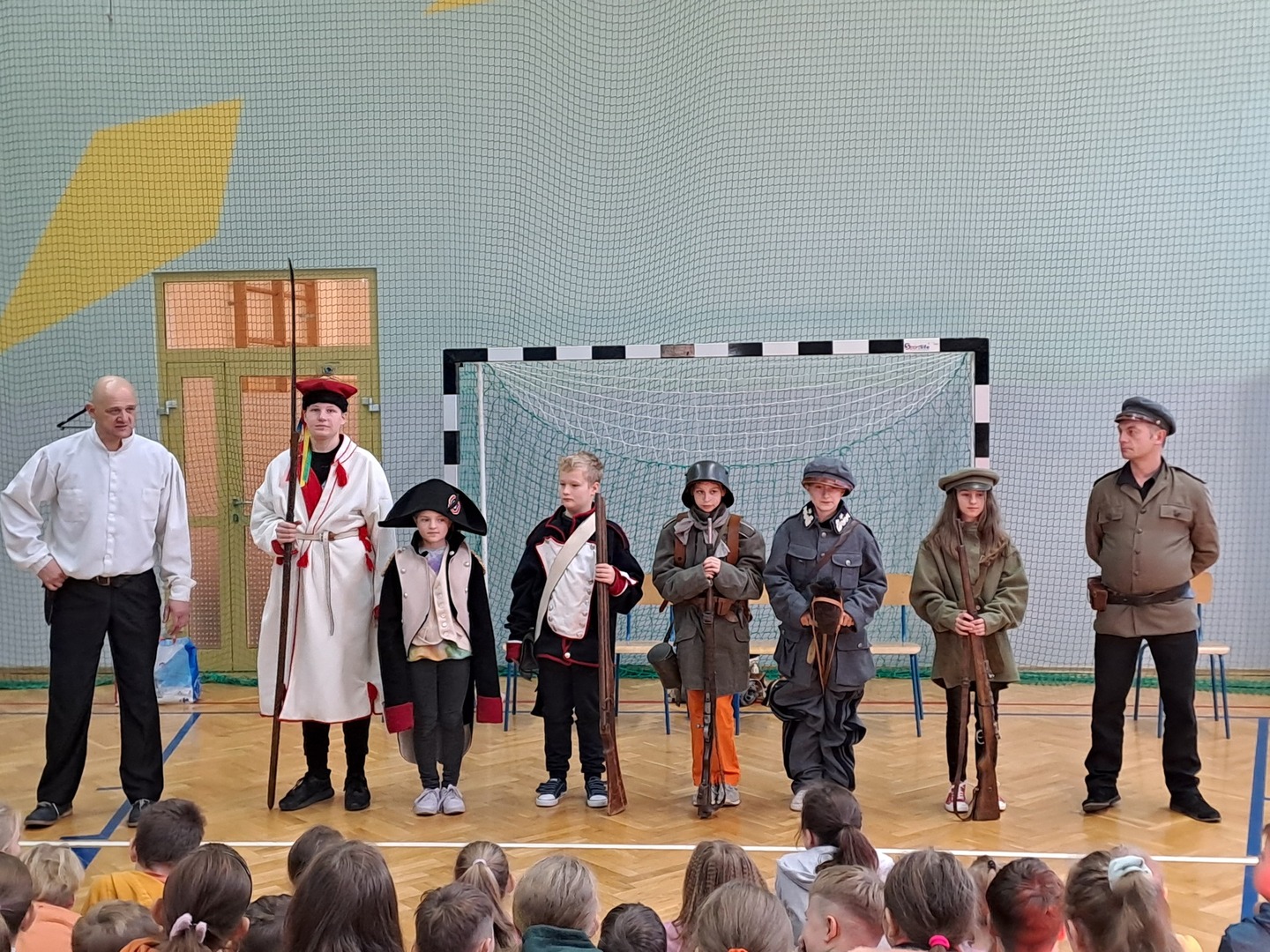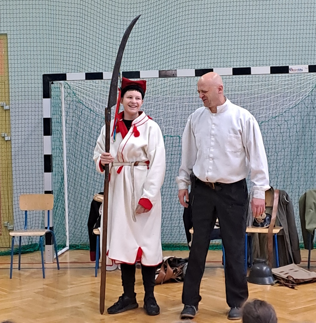 Z okazji nadchodzącego Narodowego Święta Niepodległości, dnia 9 listopada 2023 roku w naszej szkole odbyła się Żywa lekcjia historii pt. "Niepodległa". W czasie pokazu uczniowie poznali historię ziem polskich, czasy upadku państwa polskiego, zaborów i walk o naszą wolność, aż do czasu gdy po 123 latach niewoli odzyskaliśmy niepodległość. Uczniowie mogli obejrzeć i dotknąć replik broni, strojów jakich używali nasi przodkowie, brali udział w aranżowanych przez prowadzącego scenkach o dawnych czasach. Podczas tej niezwykłej lekcji był czas i na śmiech i na zabawę, ale też na powagę i chwilę zadumy nad przeszłością.
