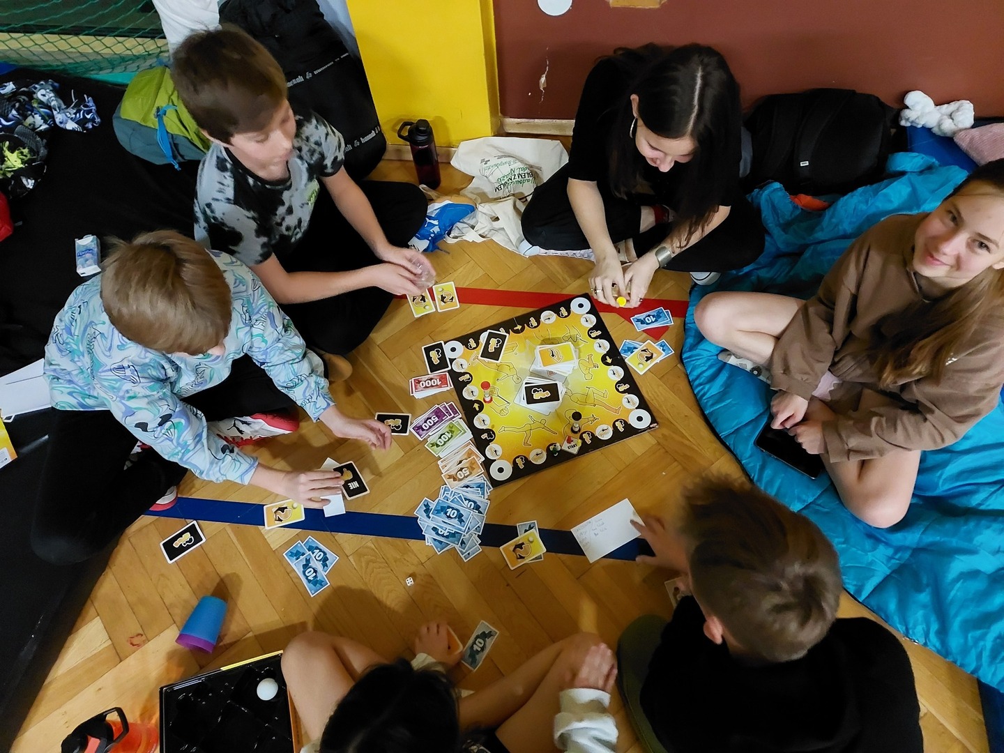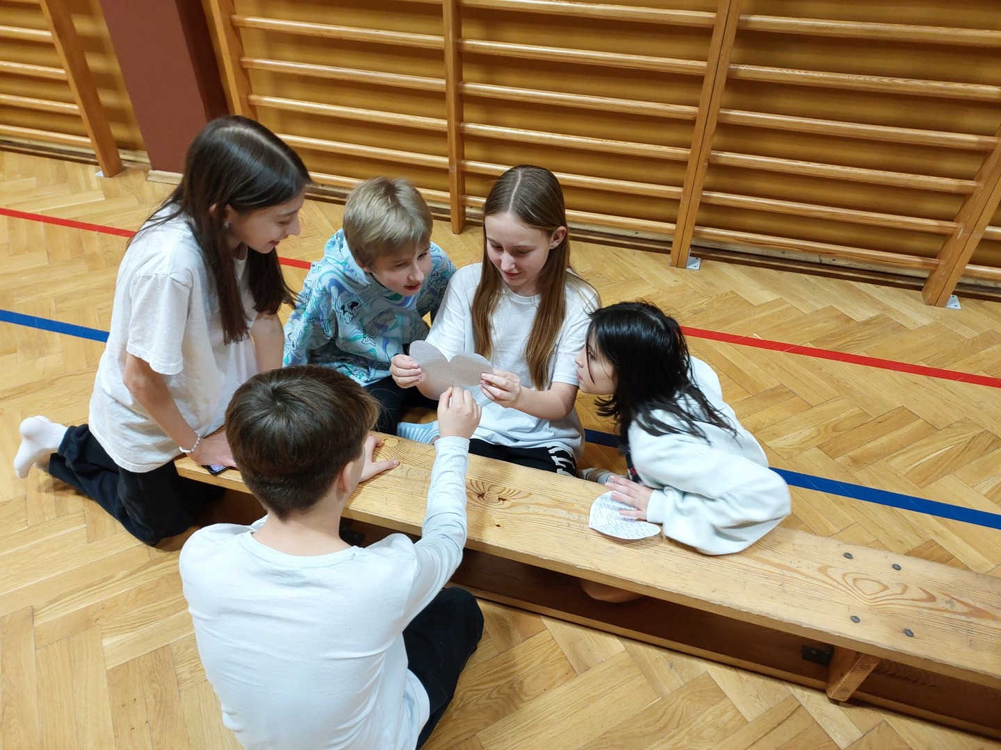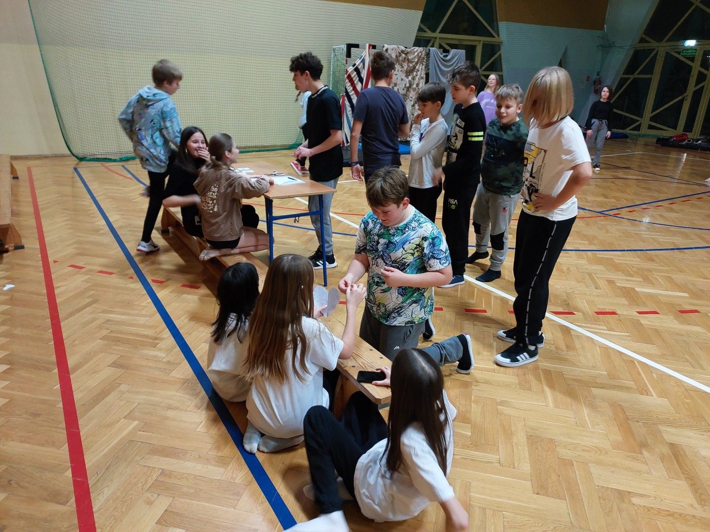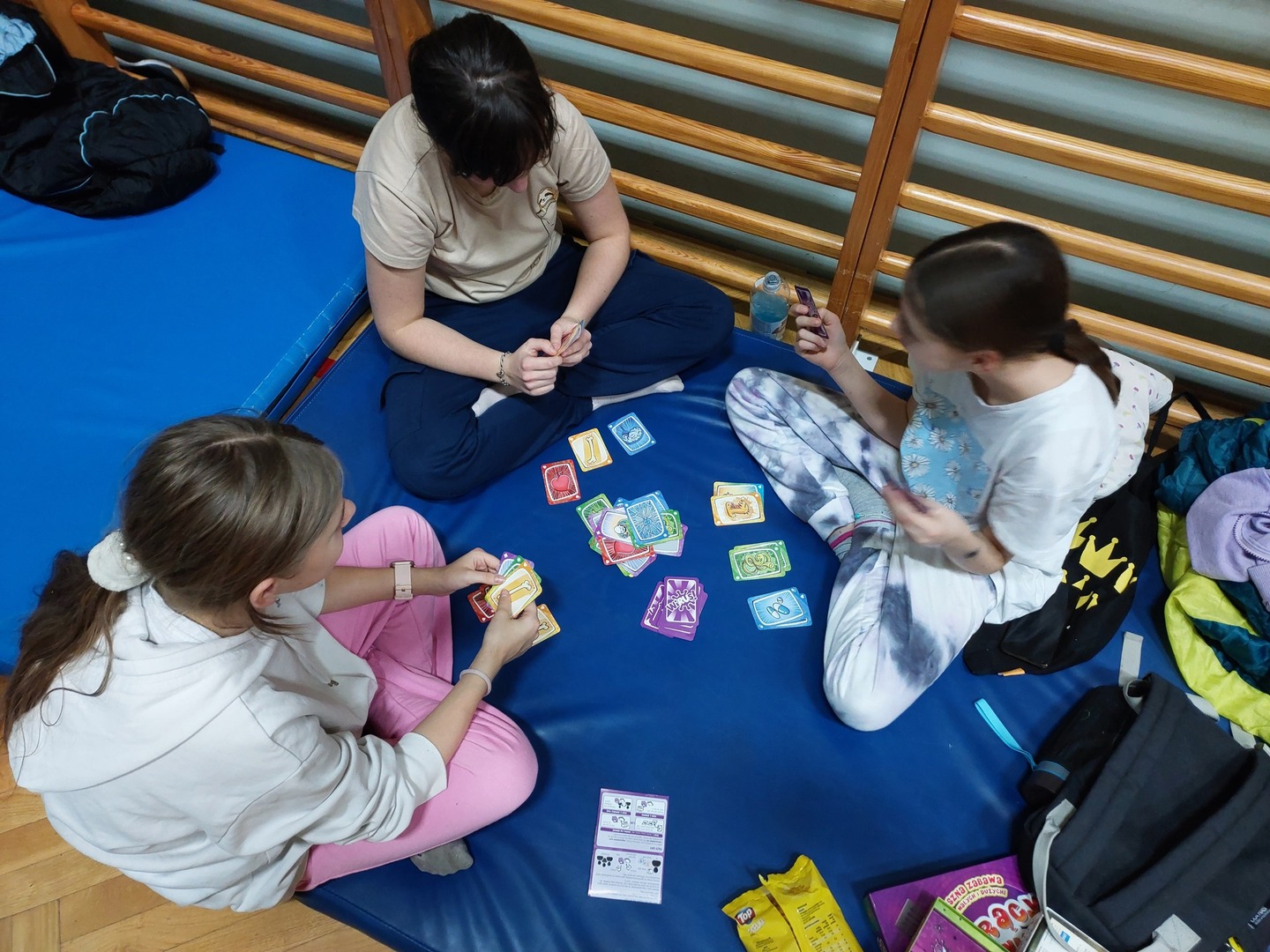 Klasy: piąta, szósta oraz siódma, pod opieką swoich wychowawców, nocowały w szkole z 24 na 25 listopada. To była dobra noc! Oglądaliśmy filmy, graliśmy w planszówki, w siatkę , w kosza. Nawet uczniowie z klasy szóstej przygotowali dla pozostałych dzieci andrzejkowe wróżby. Na kolację zamówiliśmy pizzę z zaprzyjaźnionego Green Gardenu. Piliśmy ciepłą herbatę, okryci swoimi śpiworami. Śmiechom i zabawom nie było końca... Dosłownie:). Noc przebiegła spokojnie, w przyjaznej atmosferze spędziliśmy ze sobą naprawdę super czas. Niewyspani ale szczęśliwi uczniowie rozeszli się rano w sobotę do swoich domów, a o poranku przywitał nas śnieg.