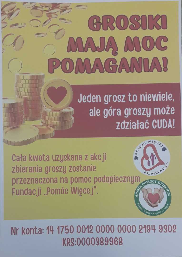 Zbliża się koniec roku więc czas na podsumowanie. Od września uczniowie naszej szkoły włączyli się do wielu akcji charytatywnych. We wrześniu zbierali przybory dla dzieci na Kresach w ramach akcji Kredkobranie. Od września do grudnia pomagaliśmy chorej p. Żanecie w ramach akcji "Słodkie piątki dla Pani Żanety" . Końcem listopada dołączyliśmy do kiermaszu że słodkościami dla chorego Bartusia. W grudniu to akcja Szlachetna Paczka i pomoc dla dwóch rodzin . Zbieraliśmy też nakrętki. Poszczególne klasy i grupy przedszkolne zbierały również grosiki. Łącznie zbieraliśmy ponad 37 kg grosiki. Wyniki są następujące: