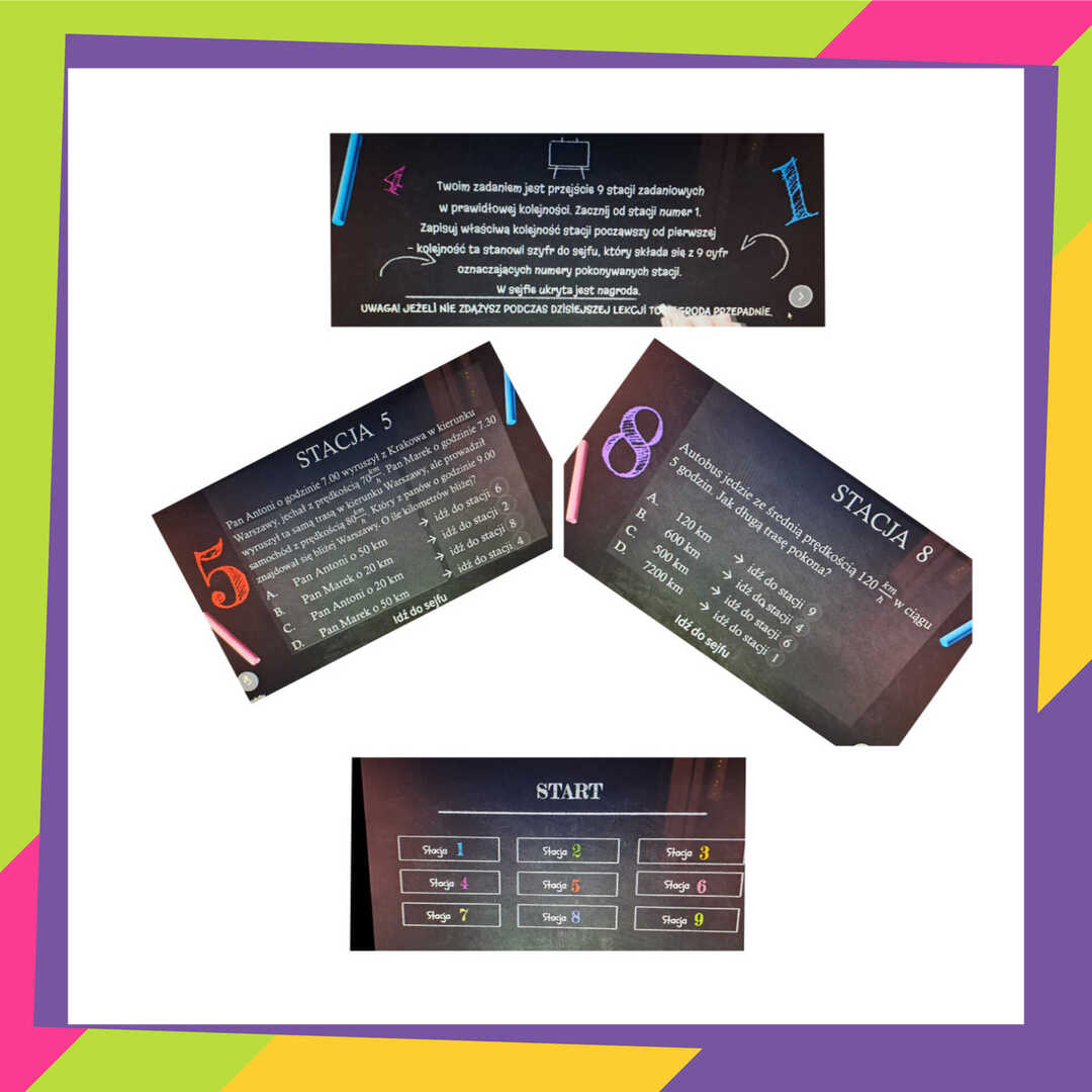 Stacje zadaniowe to jedna z ciekawszych metod aktywizujących, która polega na zmienności zadań, sposobu ich wykonania oraz na zmianie miejsca pracy dosłownie lub wirtualnie. Tym razem klasa VI wybrała się na wirtualny spacer. Uczniowie pracowali na przygotowanych wcześniej stanowiskach, zawierających zadania z działu „Droga, prędkość, czas”. Podczas takiej lekcji nauczyciel jest wyłącznie obserwatorem. To uczniowie tworzą tę lekcję! Szóstoklasiści z ogromną pasją i zaangażowaniem ćwiczyli kreatywne i logiczne myślenie, wytrwałość w rozwiązywaniu problemów, spostrzegawczość, analizowanie i wyciąganie wniosków oraz sprawność rachunkowa. Przy okazji rozwiązali wiele problemów z życia codziennego bo przecież matematyka jest wszędzie 🙂 Na najbardziej wytrwałych czekała na końcu ukryta w sejfie nagroda!