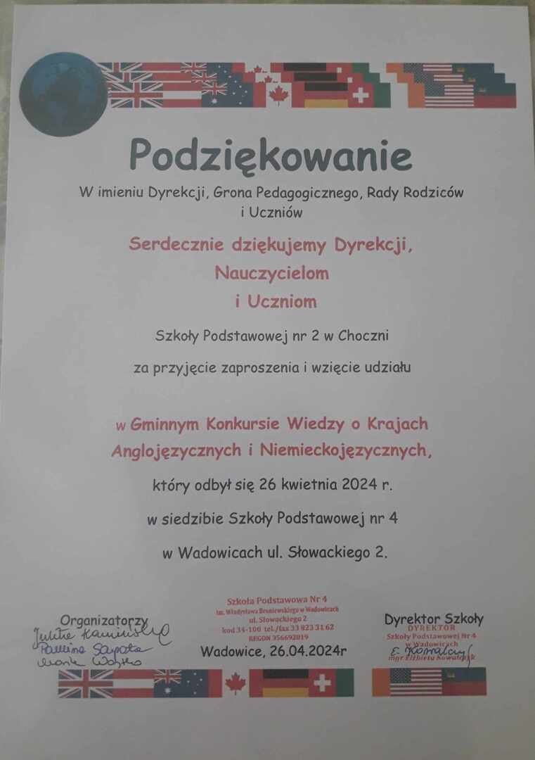 Gminny Konkurs Wiedzy o Krajach Anglojęzycznych i Niemieckojęzycznych