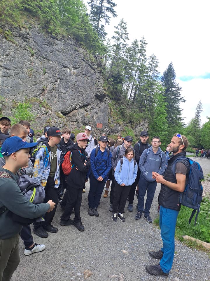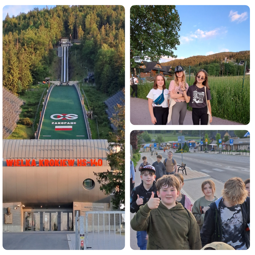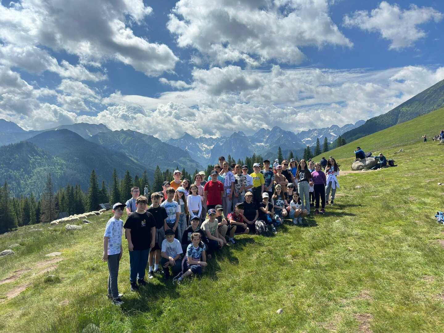 W dniach 5-6 czerwca klasy V, VI oraz VII wraz z wychowawczyniami Panią Renatą Ryś, Małgorzatą Wendą, Agnieszką Jusińską oraz opiekunami Panią Anną Wolanin i Księdzem Adamem uczestniczyły w wycieczce do Zakopanego. W pierwszym dniu przewodnik przeprowadził nas przez urokliwą Dolinę Kościeliską. Zapoznał nas z jej historią, zwrócił uwagę na faunę i florę typową dla tego miejsca. Poznaliśmy zasady bezpiecznego zachowania w górach, zapamiętaliśmy ważne alarmowe numery telefonów. Wiemy też jak nadać sygnał pomocy do helikoptera, który krąży nad naszymi głowami. Po krótkim odpoczynku w schronisku udaliśmy się nad wyjątkowo urokilwe miejsce - Staw Smreczyński. Znad Stawu podziwialiśmy przepiękny widok w stronę głównej grani Tatr. W drodze powrotnej zakupiliśmy w bacówce pamiątkę z wyprawy - świeżutkie oscypki 😊 Trochę już zmęczeni ale w doskonałych humorach wróciliśmy na pyszny obiad do naszego pensjonatu "Nad Potokiem". Tu szybko odzyskaliśmy siły i wybraliśmy się na wieczorne zwiedzanie Zakopanego. Kiedy krokomierze wskazywały ponad 30 000 kroków zakończyliśmy spacer pod Dużą Krokwią. Po powrocie na miejsce odpoczynku był jeszcze czas na rozgrywki sportowe czy rozmowy przy herbacie.