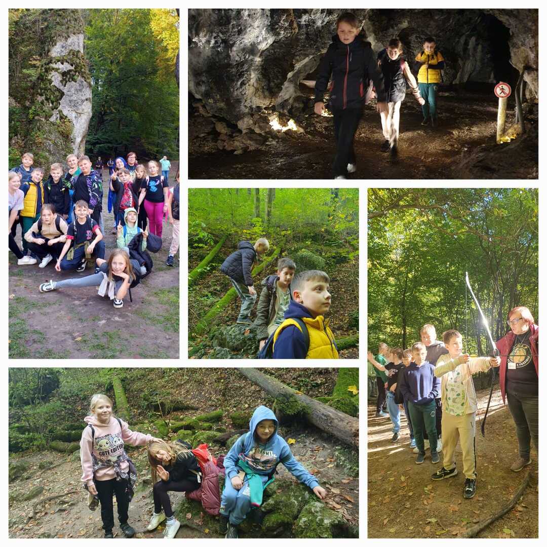 Uczniowie klasy IV spędzili piękny, słoneczny dzień w Ojcowie. Tego dnia wędrowali, jedli kiełbaski i strzelali z prawdziwego łuku! Profilaktycy, przewodnicy Archezji - Fundacji Wspomagającej Wychowanie - w profesjonalny sposób, pełen humoru i zaciekawienia przedstawiali uczniom historyczno-geograficzne wiadomości dotyczące Ojcowa i Doliny Prądnika. Ruiny zamku, baszta oraz Jaskinia Łokietka to miejsca, które dzieci zobaczyły i zapoznały się z ich historią. Przygotowane przez Archezję zajęcia ukierunkowane były również m. in. na wzmacnianie czynników chroniących dzieci i młodzież przed różnymi zagrożeniami, które niesie życia. To był wartościowy czas!