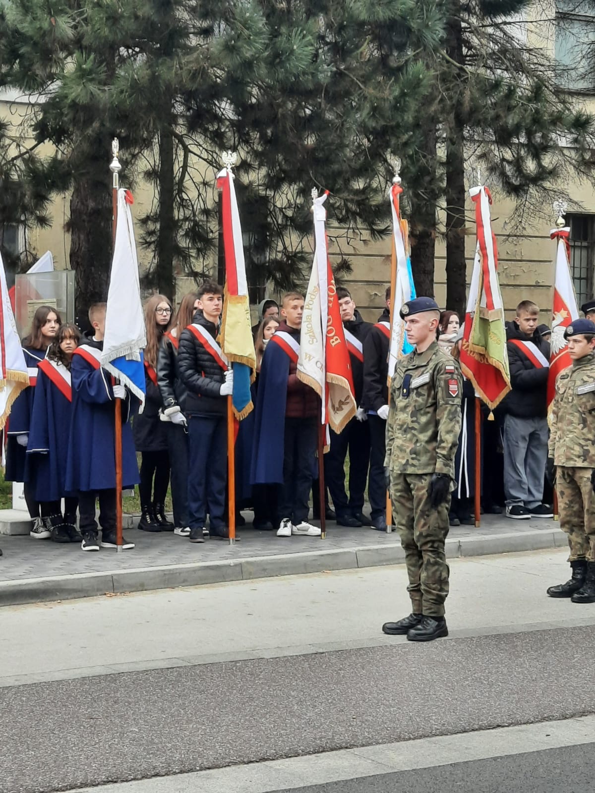 Po godzinie 11. rozpoczął się uroczysty przemarsz ulicami miasta pod pomnik 12. Pułku Piechoty Ziemi Wadowickiej przy ul. Lwowskiej. Tutaj wadowiczanie, przedstawiciele władz miasta, jednostek, szkół i mieszkańcy złożyli kwiaty. Pochód otworzyła Orkiestra Dęta w Choczni.