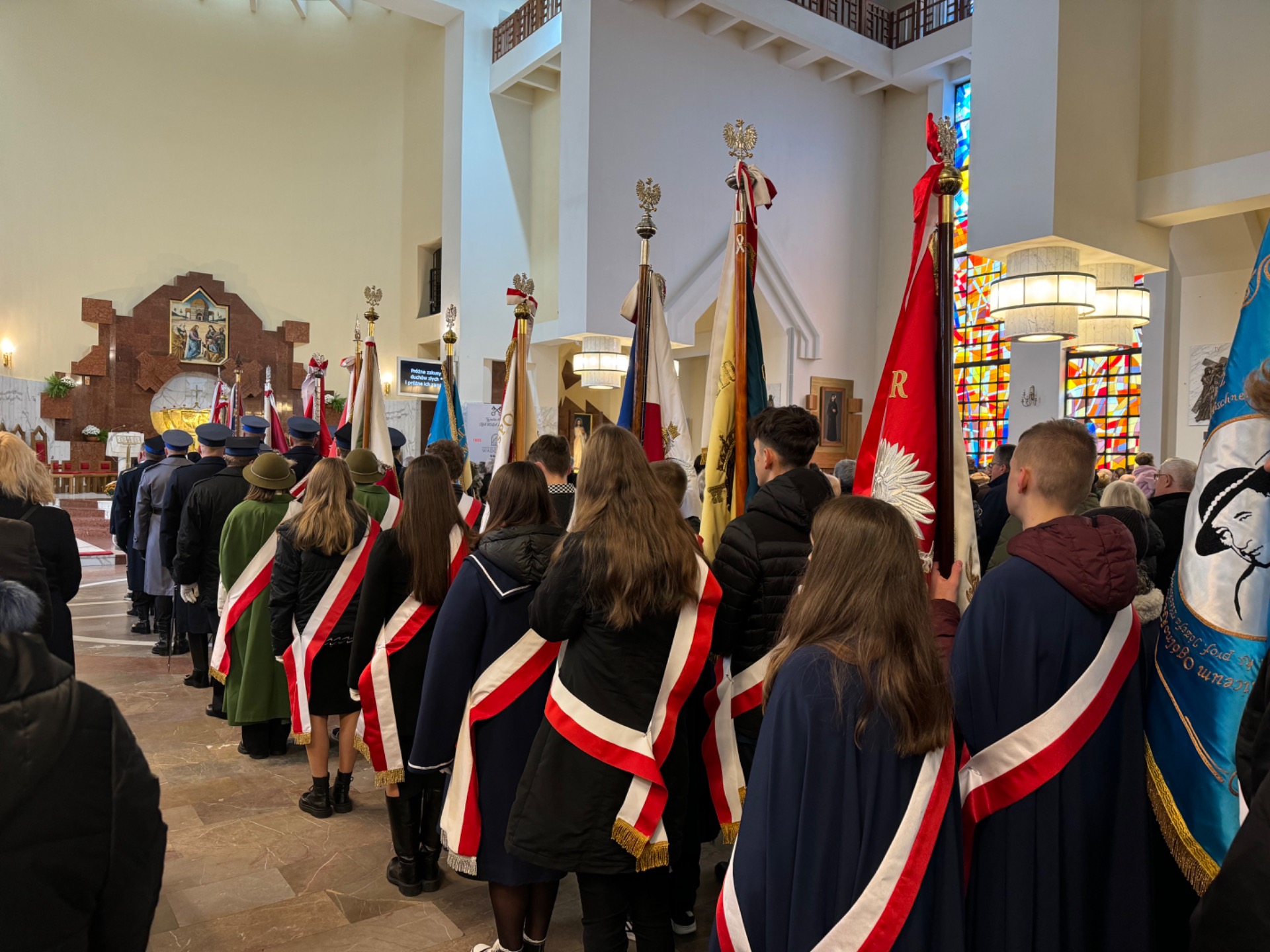 Msza święta odprawiona została w kościele Świętego Piotra Apostoła o godz. 10. Po niej mogliśmy zobaczyć inscenizację słowno-muzyczną pt.: „Miejcie odwagę być wolni” w wykonaniu uczniów klas trzecich ze Szkoły Podstawowej nr 2 w Wadowicach.