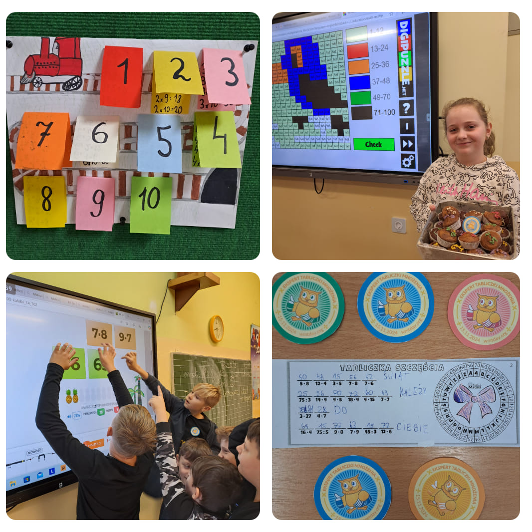 W klasach IV-VIII na zajęciach matematyki graliśmy w karty Grabowskiwgo, odkrywaliśmy dobre życzenia rozwiązując Tabliczkę Szczęścia, kodowaliśmy wykorzystując edukacyjne DigiPuzzle a na platformie Matzoo poszukiwaliśmy prawidłowych wyników naszego mnożenia i dzielenia. Klasa V przygotowała słodki poczęstunek w formie muffinek z tabliczką mnożenia