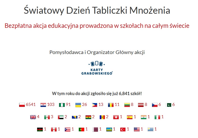 Organizatorem Głównym ŚDTM jest Wydawnictwo Karty Grabowskiego z Poznania. Wydawnictwo promuje zabawową formę nauczania-uczenia się matematyki. Przez wiele lat pod jego patronatem organizowane były Mistrzostwa Polski w Tabliczce Mnożenia. Od 2011 roku przeprowadzany jest Światowy Dzień Tabliczki Mnożenia. Pomysłodawcą akcji Światowy Dzień Tabliczki Mnożenia jest Andrzej Grabowski, założyciel Wydawnictwa Karty Grabowskiego. Wielki pasjonat niecodziennego nauczania-uczenia się matematyki. Autor kart Grabowskiego „Tabliczka mnożenia”, „Dodawanie i odejmowanie” oraz „Gry logiczne (3 kolory)” .