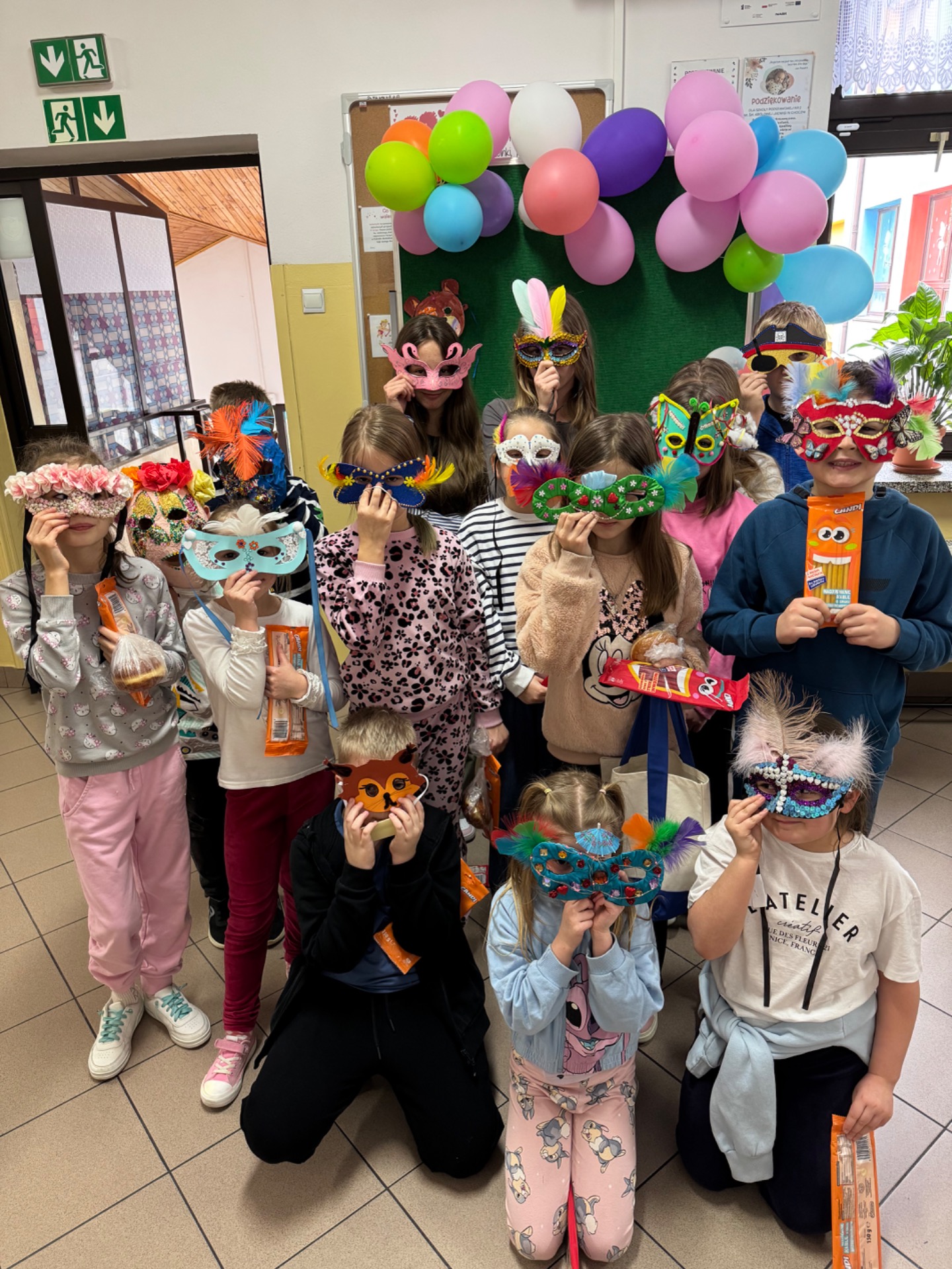27 lutego został rozstrzygnięty konkurs, organizowany przez Samorząd Uczniowski , na najpiękniejsza maskę karnawałową. Było kolorowo i pięknie. Każdy uczestnik został nagrodzony drobnym smakołykiem. Zwyciężyła Amelka Kruczek z klasy trzeciej zdobywając nagrodę główną. Gratulujemy pomysłowości🙂