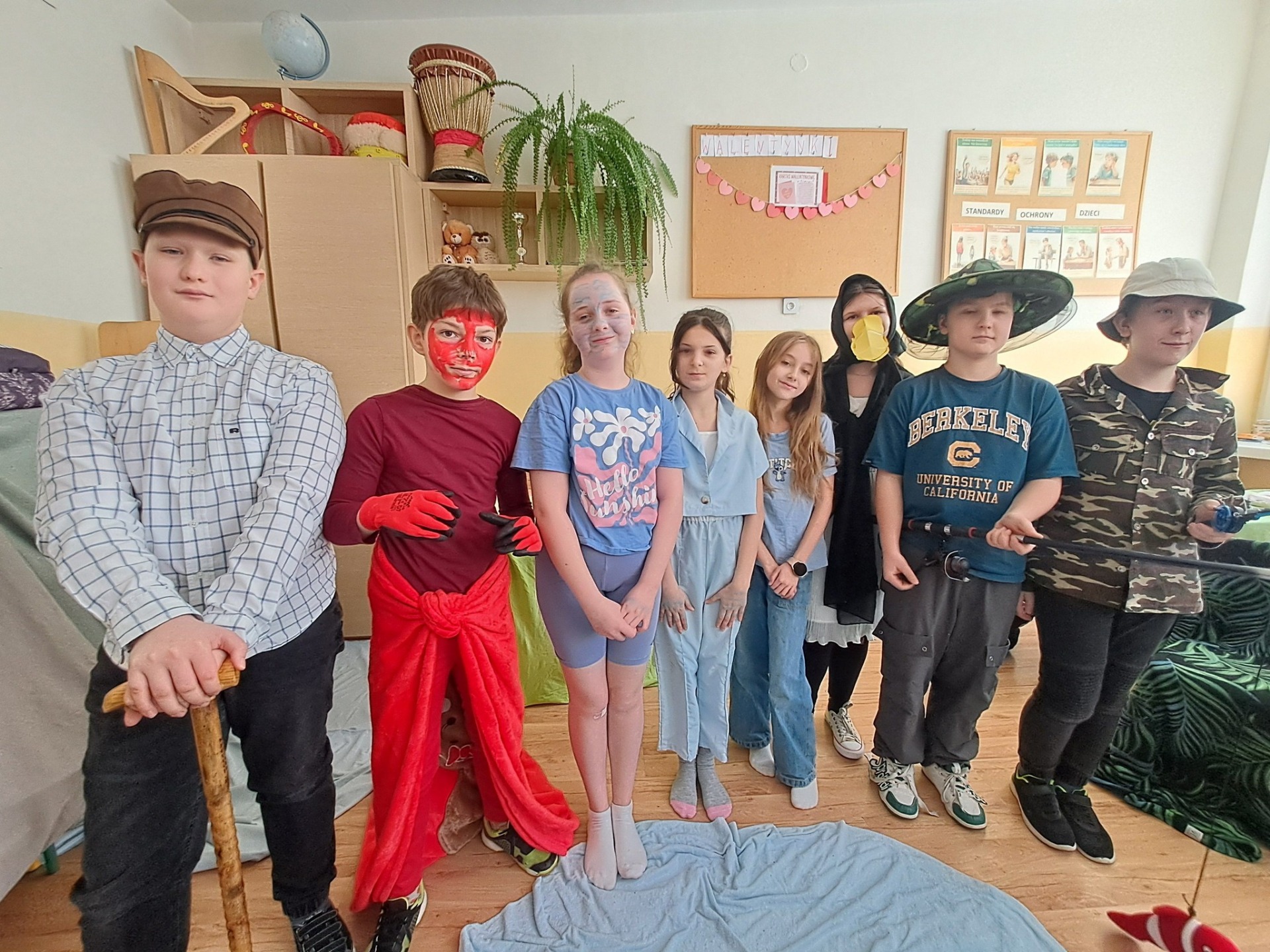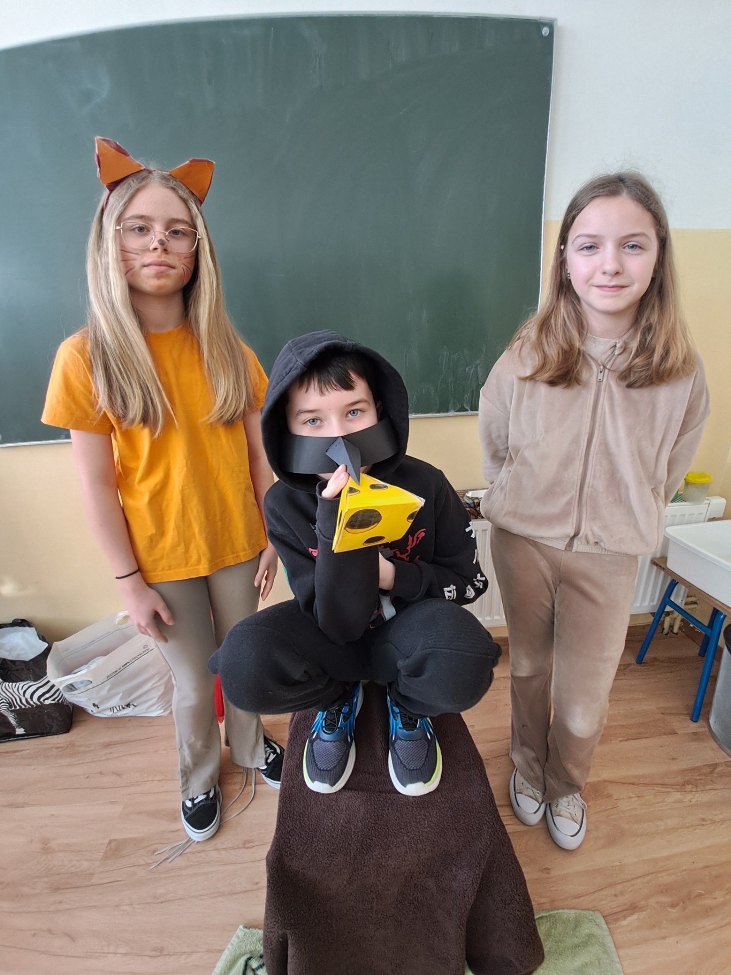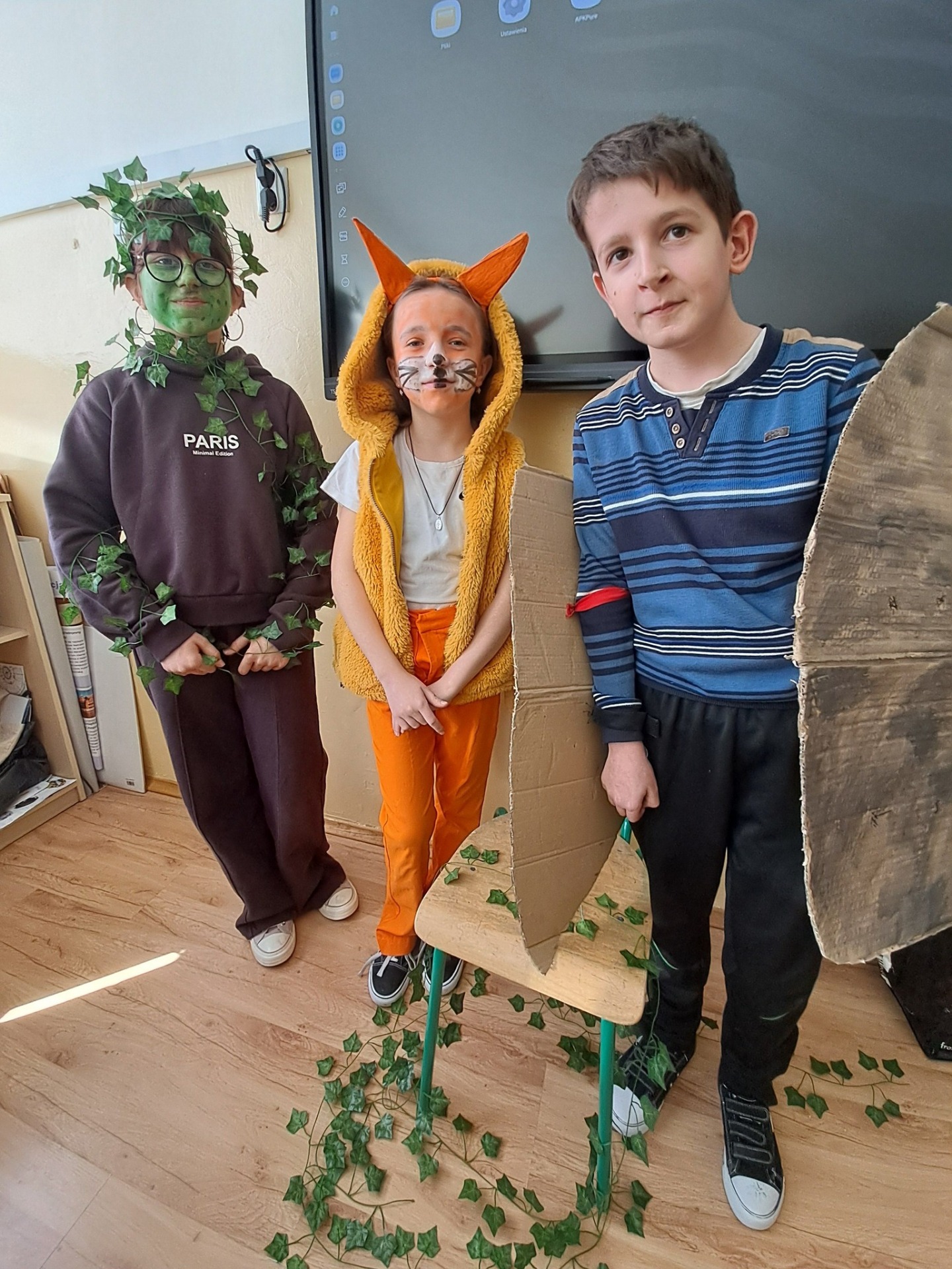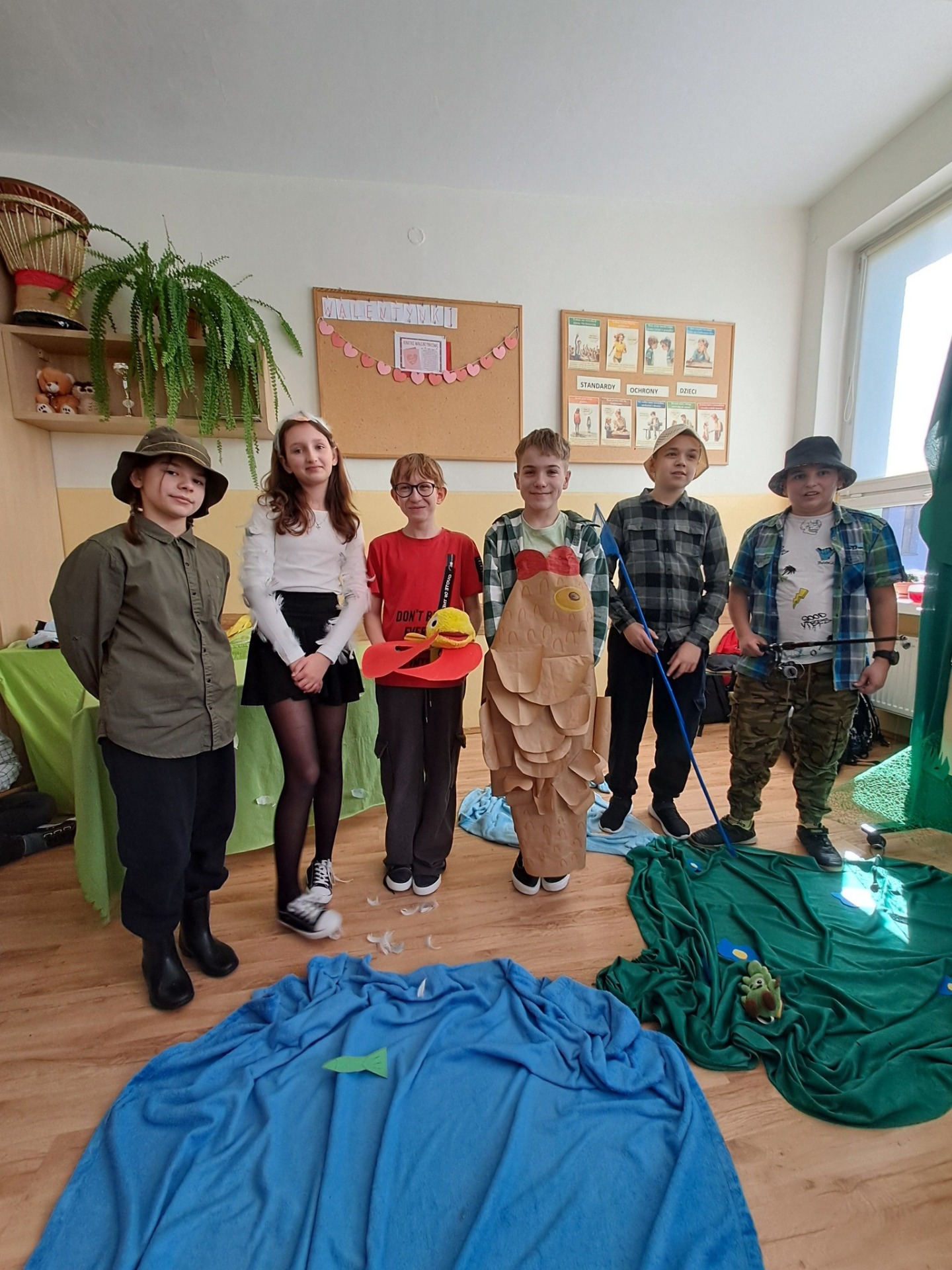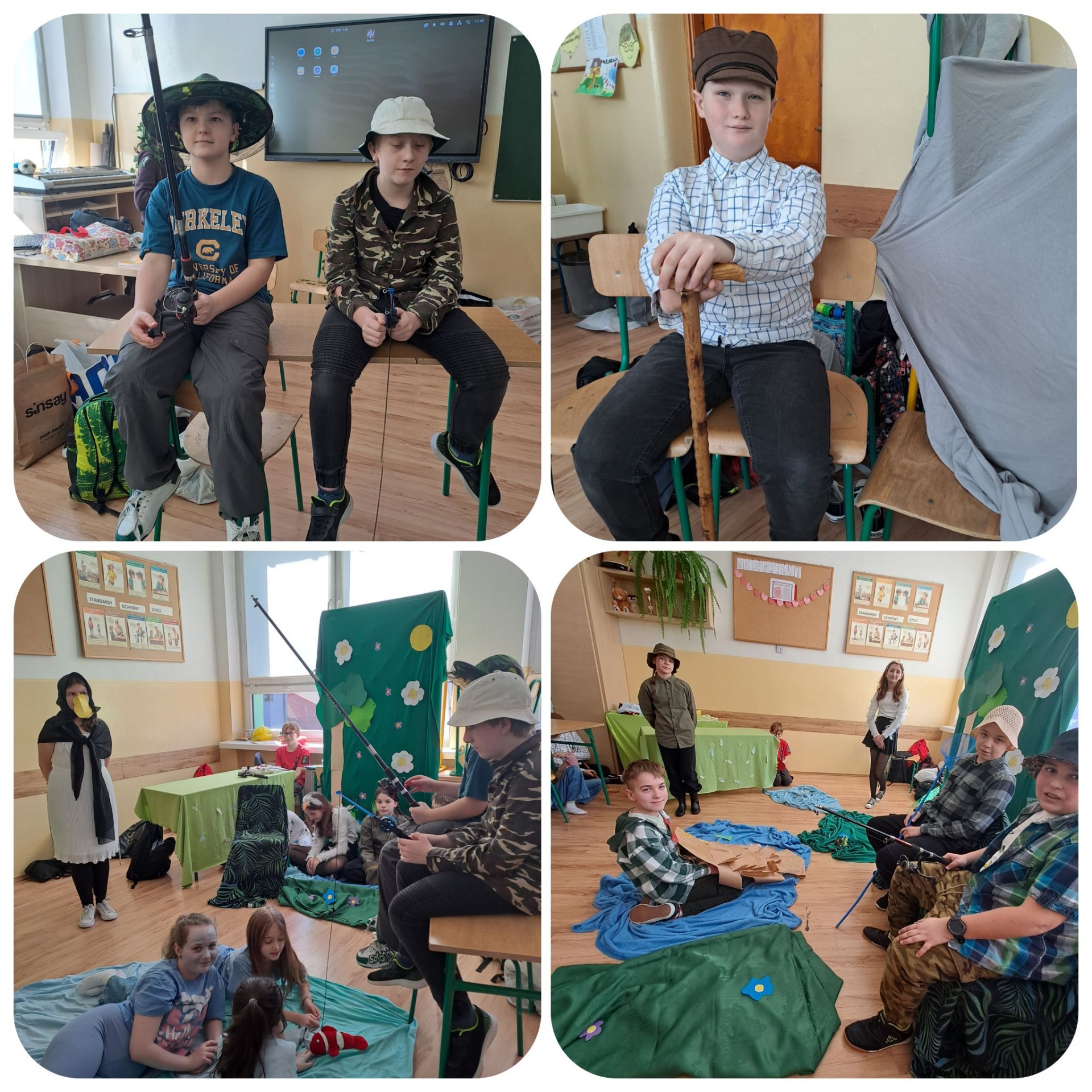 Za nami kolejne przedstawienie na lekcji języka polskiego. Tym razem w klasie piątej zainscenizowaliśmy bajki Ignacego Krasickiego "Czapla, ryby i rak" oraz " Kruk i lis". Zaprezentowały się cztery grupy. Wszystkie fantastycznie. Należy docenić pomysłowe przebrania i ciekawą scenografię. Recytacja również bardzo dobra. Takie lekcje języka polskiego oraz prezentowane podczas nich utwory na dłużej pozostają uczniom w pamięci. Oby jak najdłużej nie zabrakło dzieciom zapału i chęci do takiej pracy.