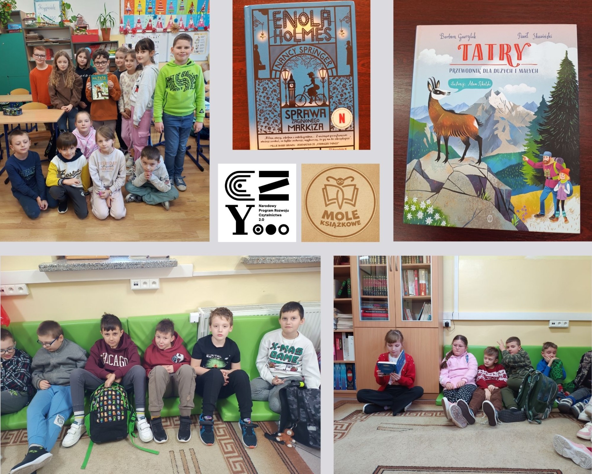 W styczniu w ramach projektu "Mole książkowe" pierwszoklasiści zapoznali się z barwnymi ciekawostkami z książki pt. "Tatry" B. Gawryluk i P. Skawińskiego. Natomiast uczniowie klasy II dowiedzieli się o trudnych, wojennych losach bohatera lektury "Mój tato szczęściarz" Joanny Papuzińskiej. Klasa III przeniosła się do XIX- wiecznego Londynu, próbując odkryć zagadkę zaginionego markiza z serii książek o Enoli Holmes autorstwa Nany Springer.