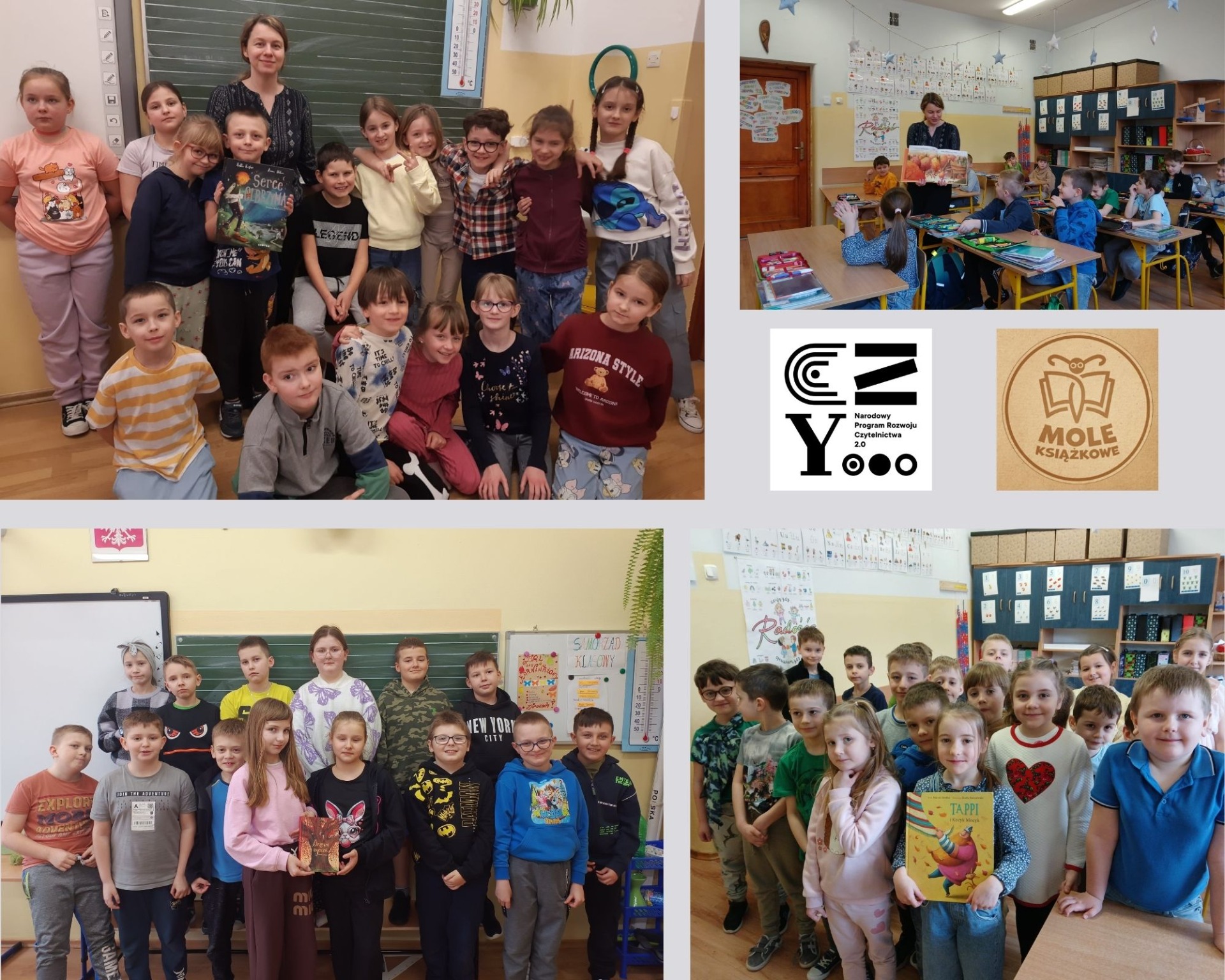 W lutym w ramach projektu "Mole książkowe" pierwszoklasiści zapoznali się z przygodami pewnego Wikinga z książki pt. "Tappi i Kocyk Mocyk" M. Mortki. Uczniowie klasy II wysłuchali wzruszającej opowieści pt. "Serce Olbrzyma" H. Hughes. Z kolei klasa III poznała historię bardzo starego Dębu, który przemówił do nas w książce pt. "Drzewo Życzeń" K. A. Applegate.